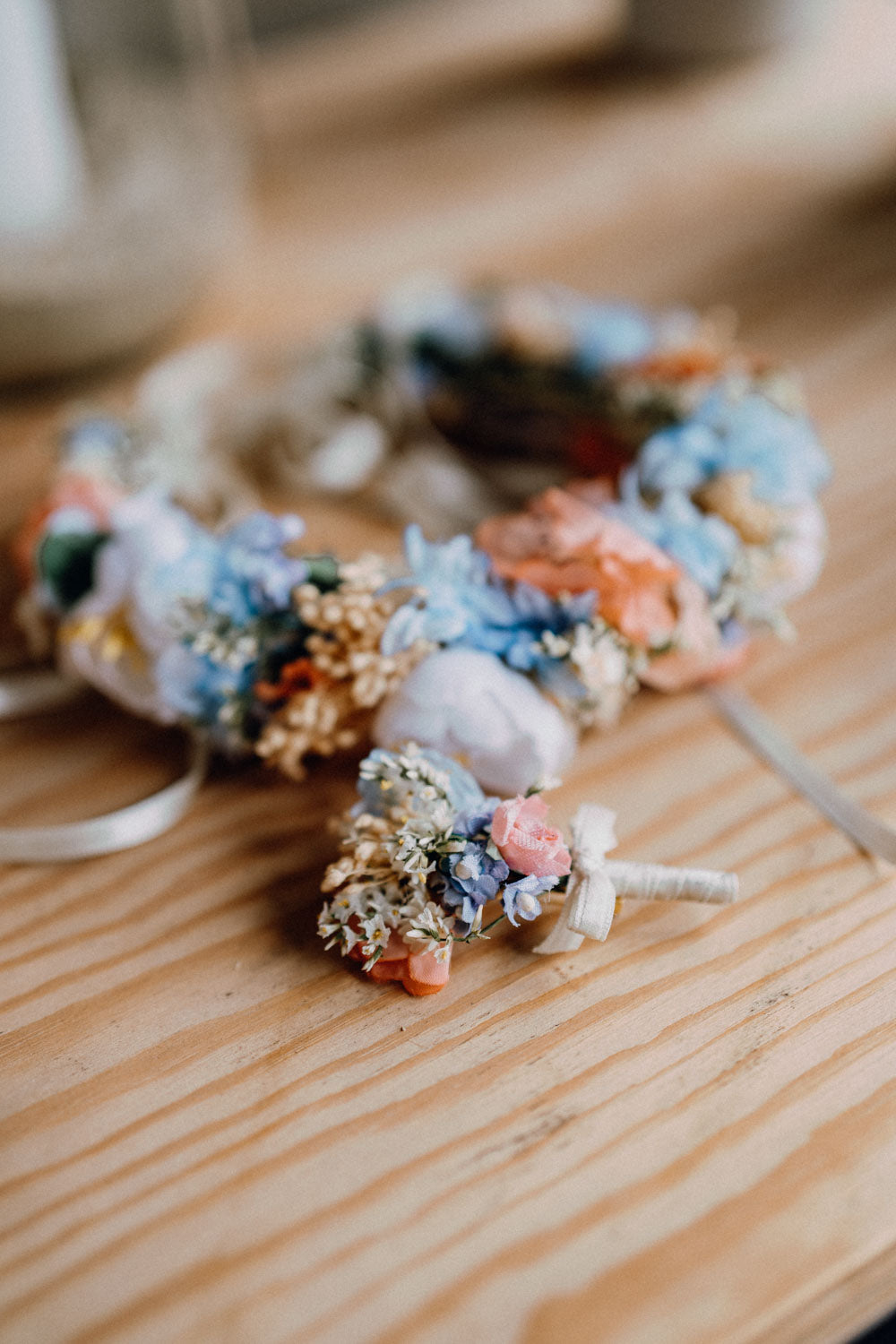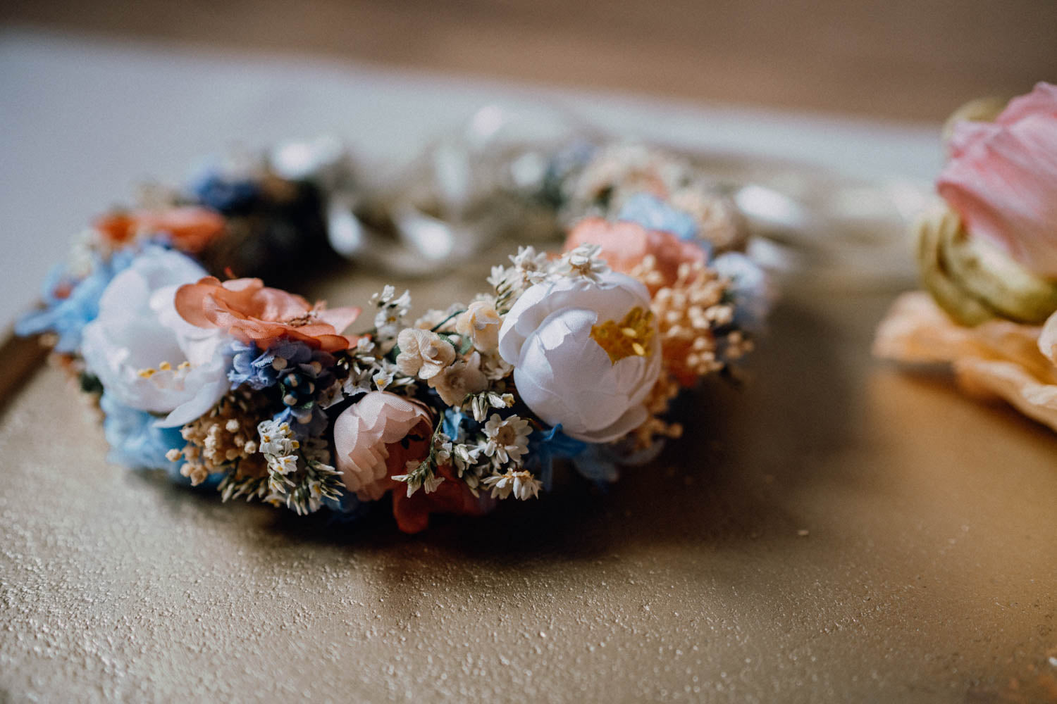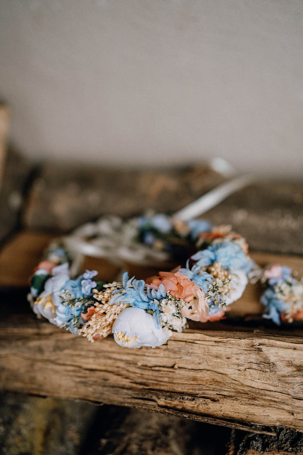 Alena ist das perfekte Statement-Piece für Bohemian-Brides. Handgemacht in Wien aus edlen Vintage Seidenblumen und hält so ein Leben lang.