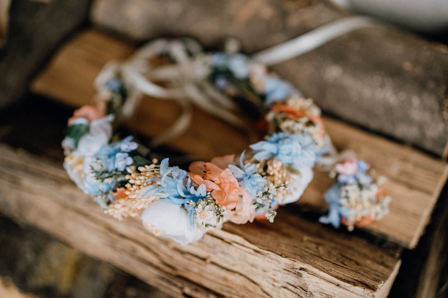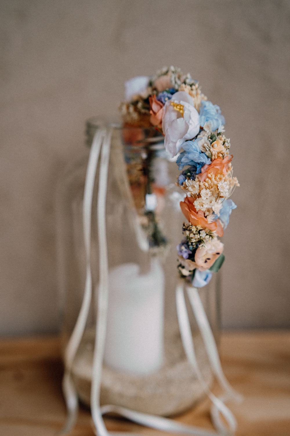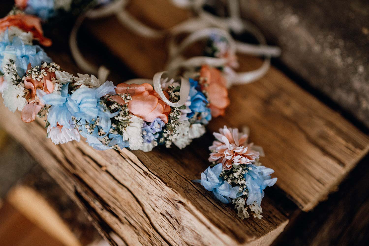 Alena ist das perfekte Statement-Piece für Bohemian-Brides. Handgemacht in Wien aus edlen Vintage Seidenblumen und hält so ein Leben lang.