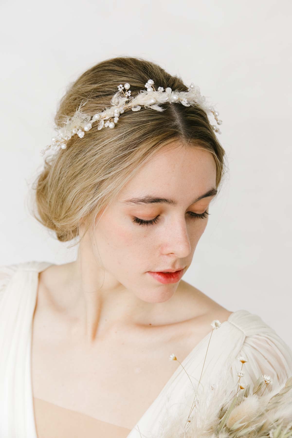 Beachte, dass unsere Designs aus hochwertigen Materialien gefertigt werden. Jedes Stück wird in unserem Wiener Atelier mit Blumen-Raritäten aus den 50ern bis 90ern sowie Trockenblumen, Perlen und Steinen per Hand gefertigt. Daher behandle dein Stück bitte mit Liebe, lege das Design nicht über länge Zeit in die Sonne und schütze es vor Nässe. So hält dein Unikat ein Leben lang und überdauert Generationen.