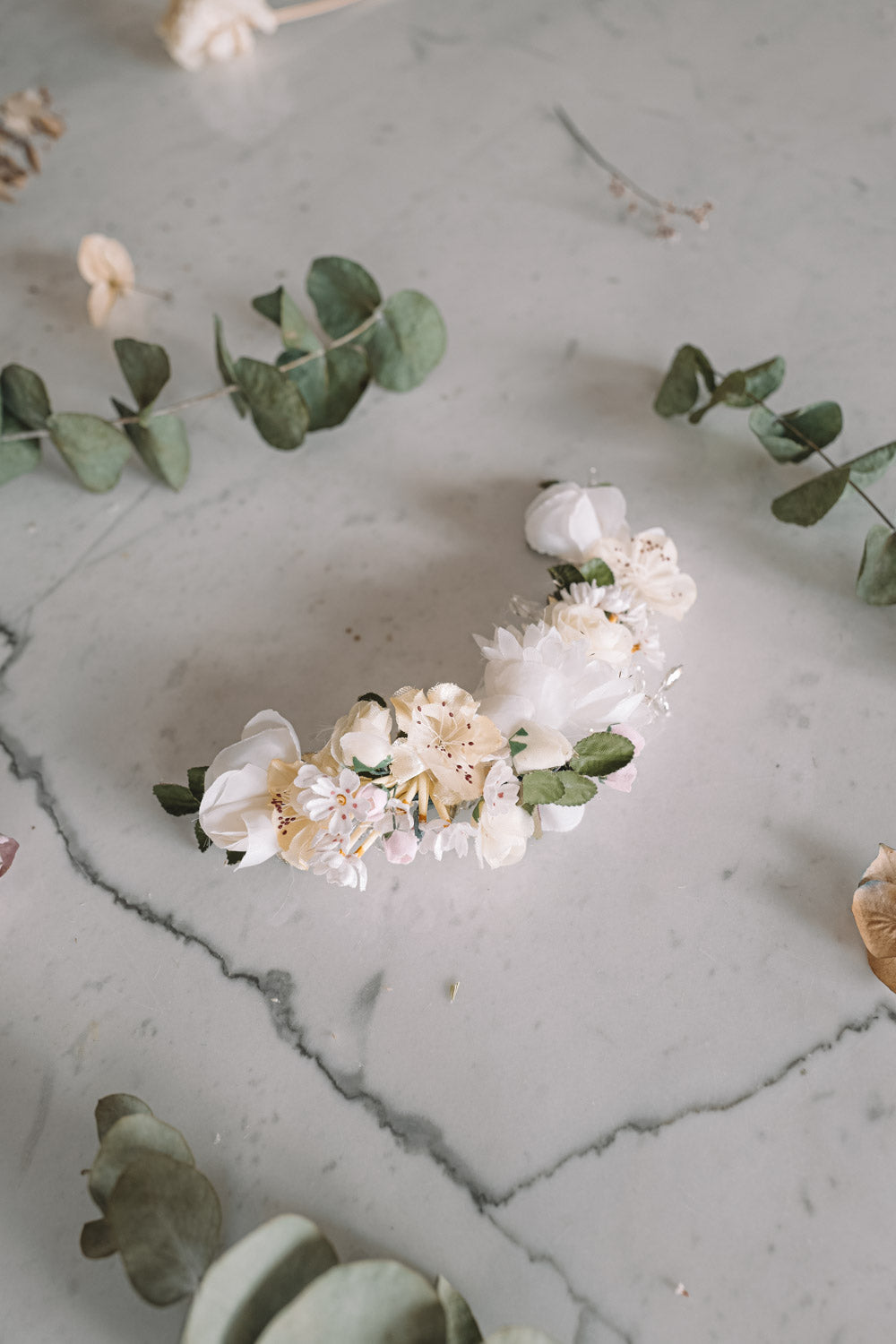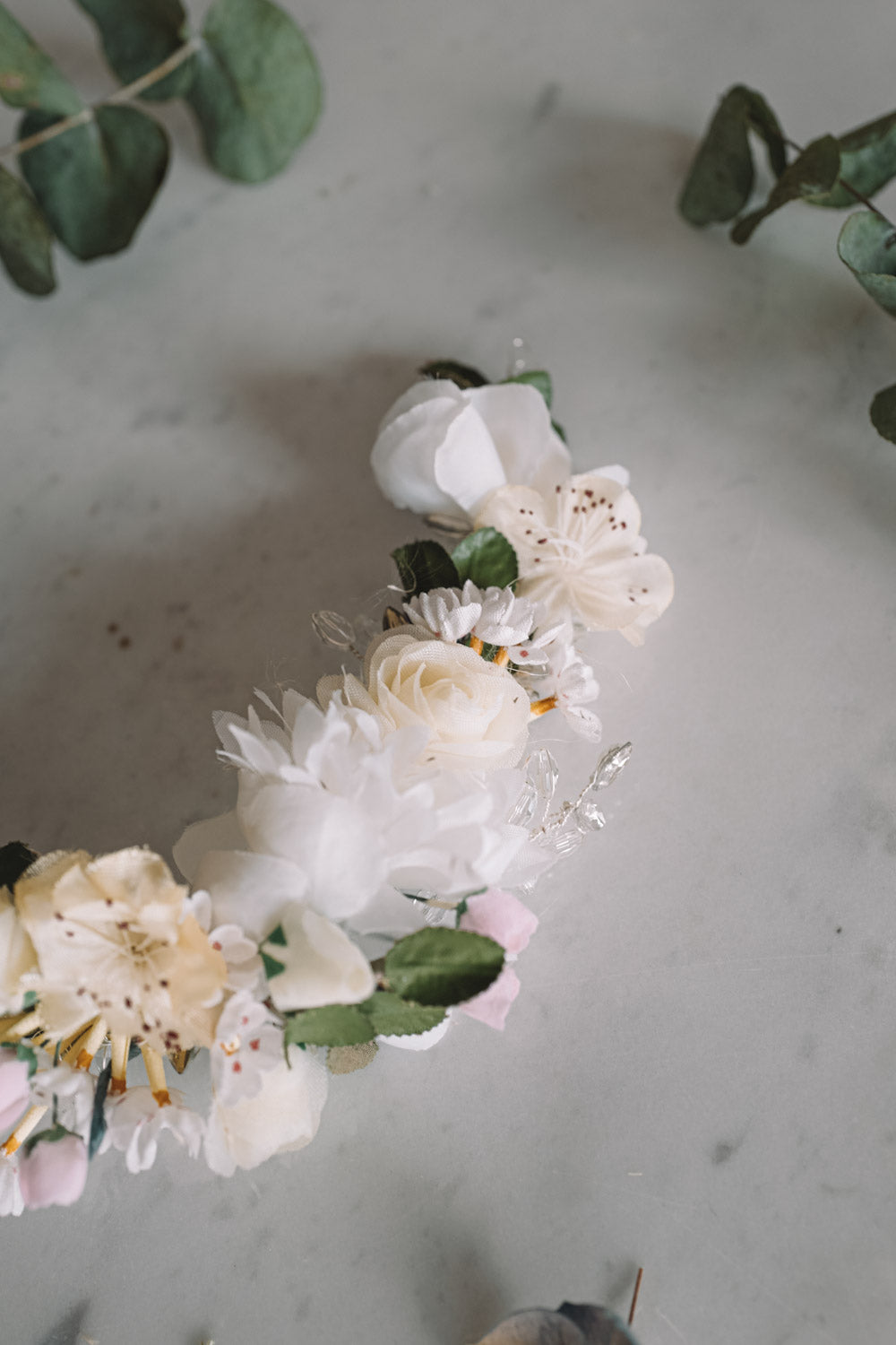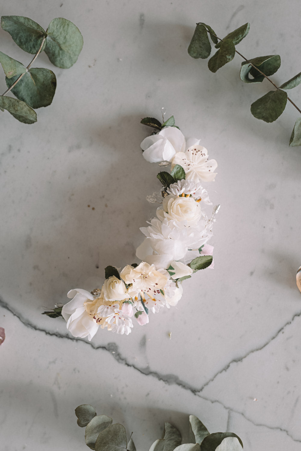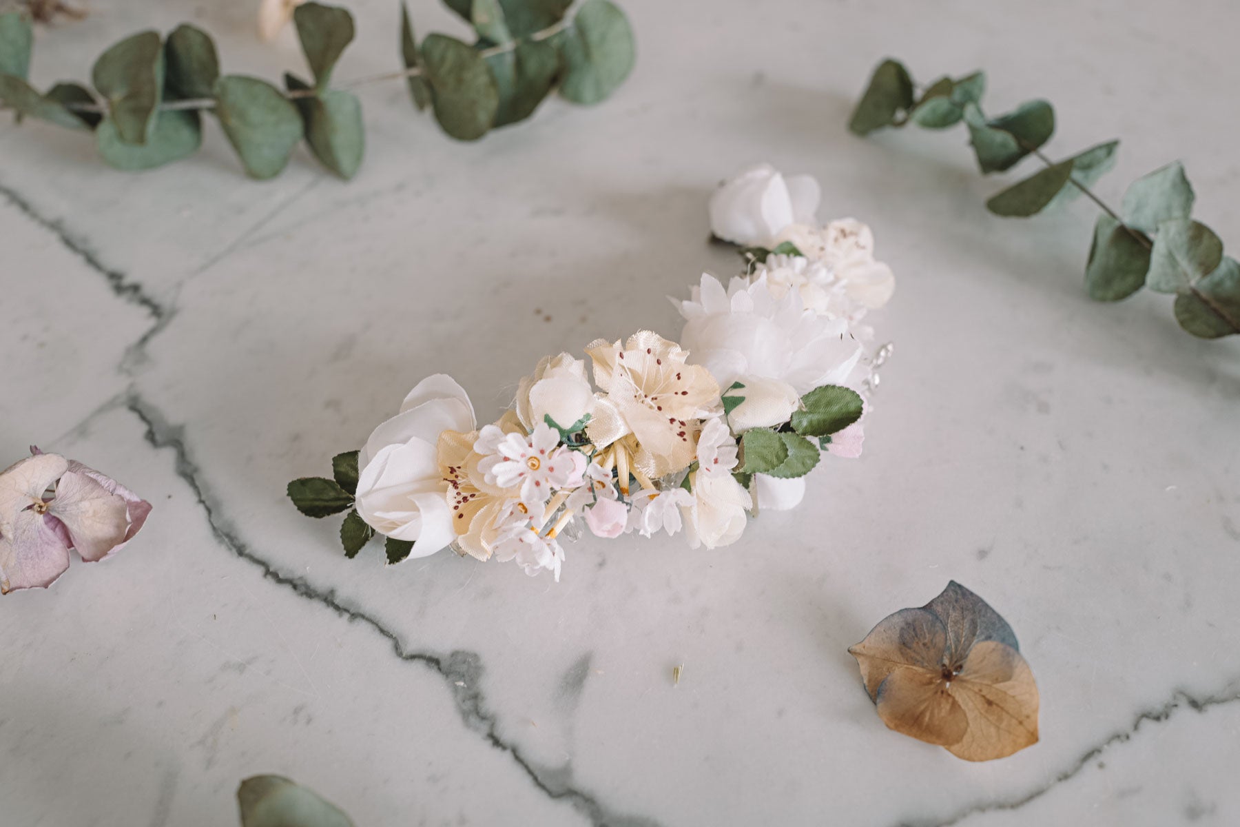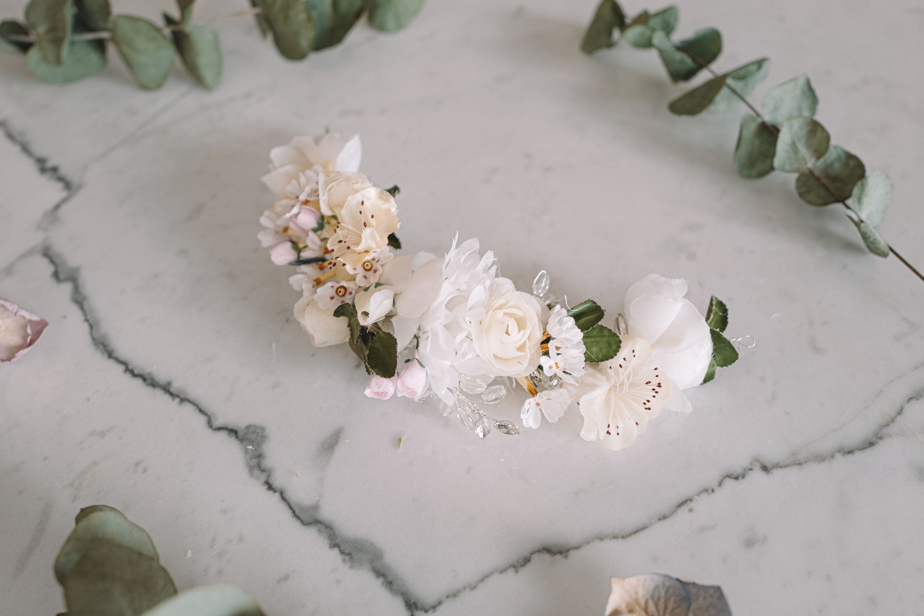 Amalia ist das zartes Headpiece für romantische Brides. Trage es mit oder ohne Bänder im Haar. Handgemacht in Wien aus edlen Vintage Seidenblumen & Steinen - so hält es ein Leben lang.