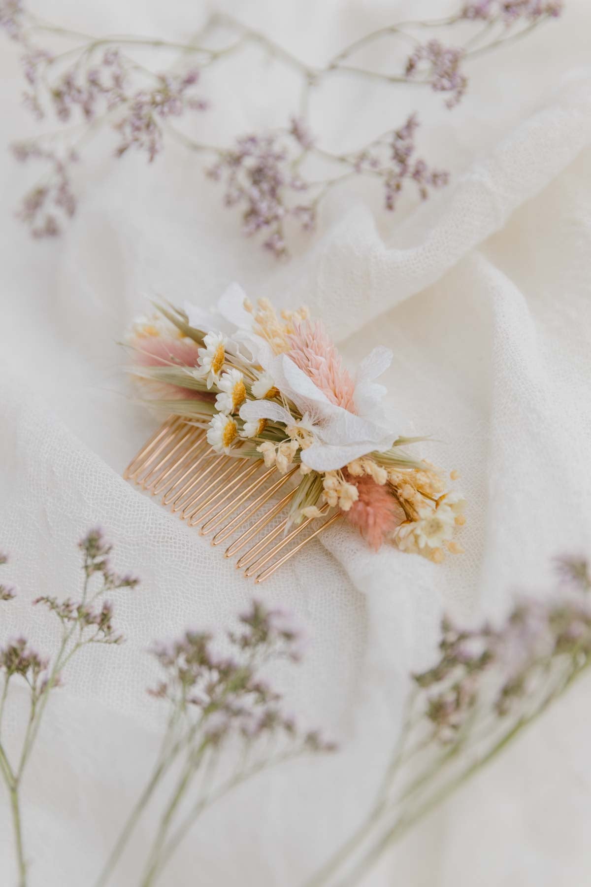 Beachte, dass unsere Designs aus hochwertigen Materialien gefertigt werden. Jedes Stück wird in unserem Wiener Atelier mit Blumen-Raritäten aus den 50ern bis 90ern sowie Trockenblumen, Perlen und Steinen per Hand gefertigt. Daher behandle dein Stück bitte mit Liebe, lege das Design nicht über länge Zeit in die Sonne und schütze es vor Nässe. So hält dein Unikat ein Leben lang und überdauert Generationen.