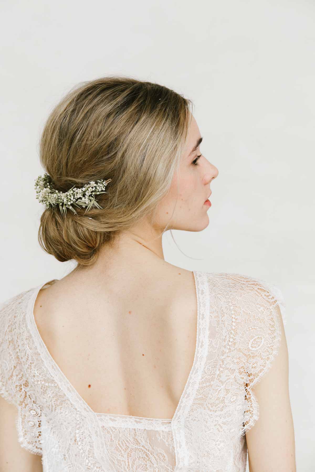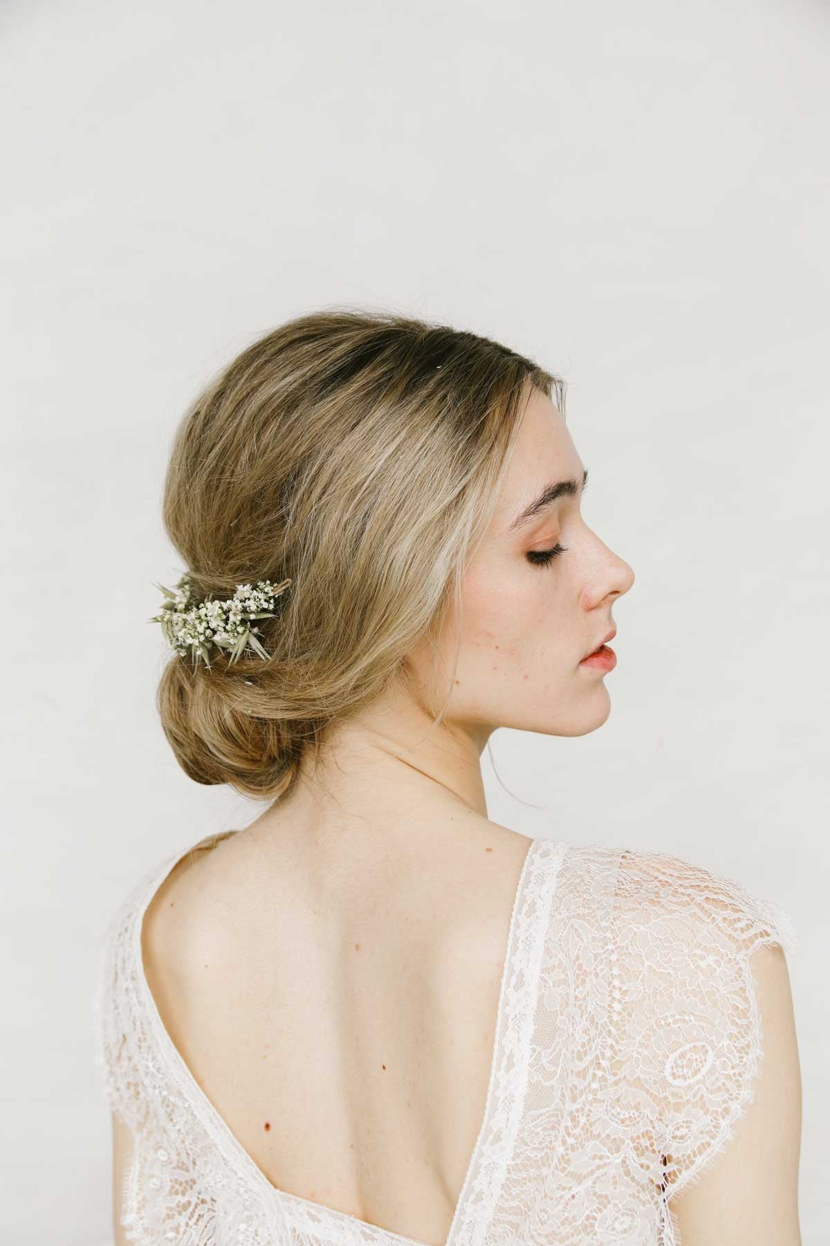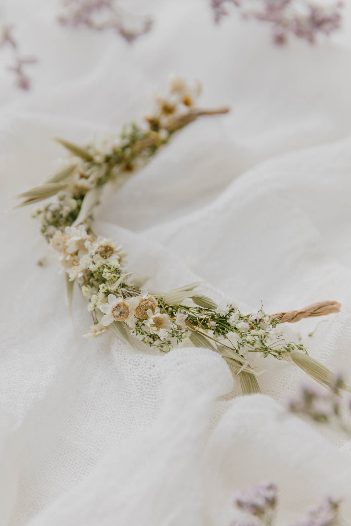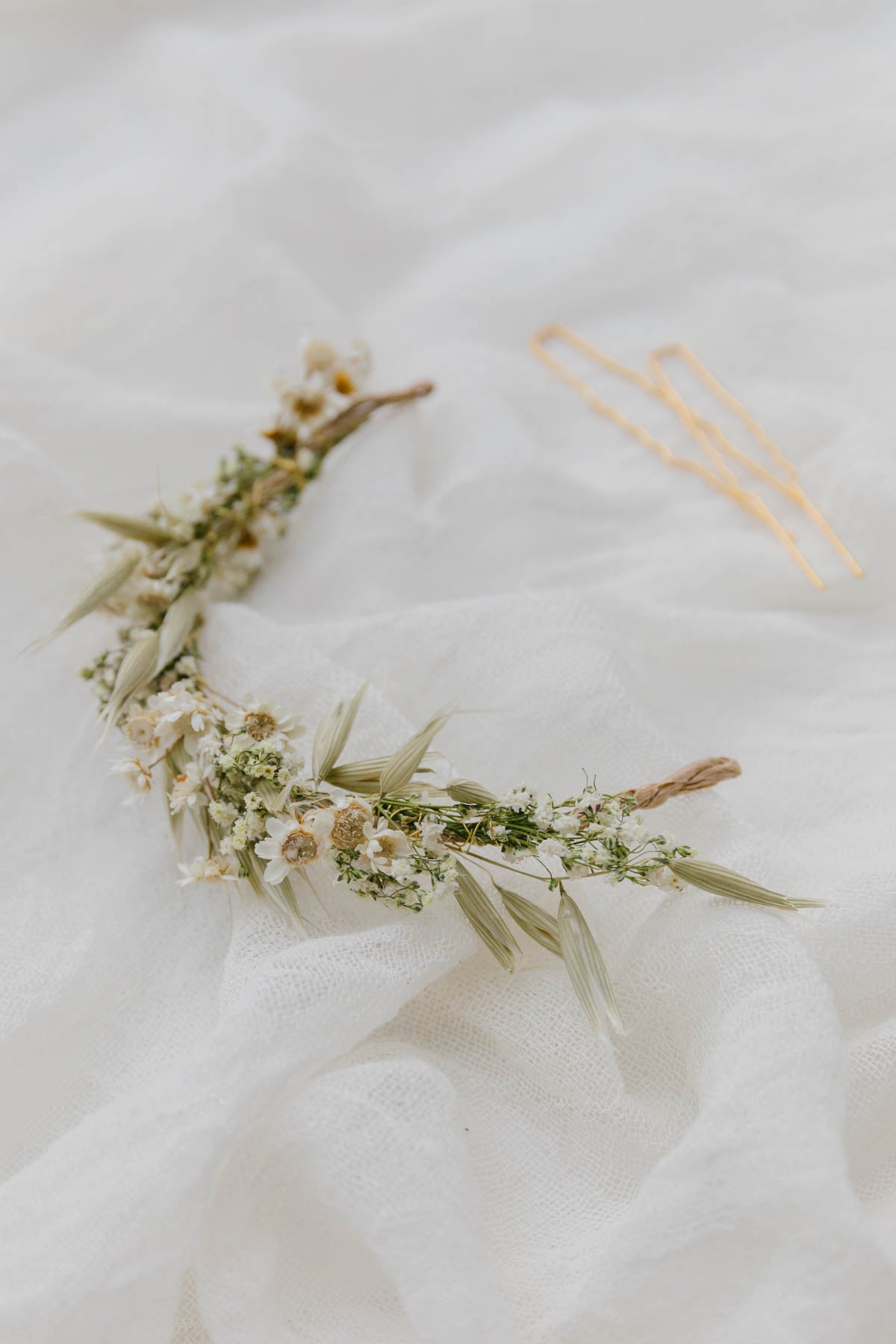 Aurora ist eine zarte, handgemachte Haarnadel für den romantischen Bohemian-Bridal-Look. Handgemacht in Wien aus edlen Trockenblumen und konservierten Blüten sowie Perlchen. So hält dein handgemachtes Bridal-Headpiece ein Leben lang.