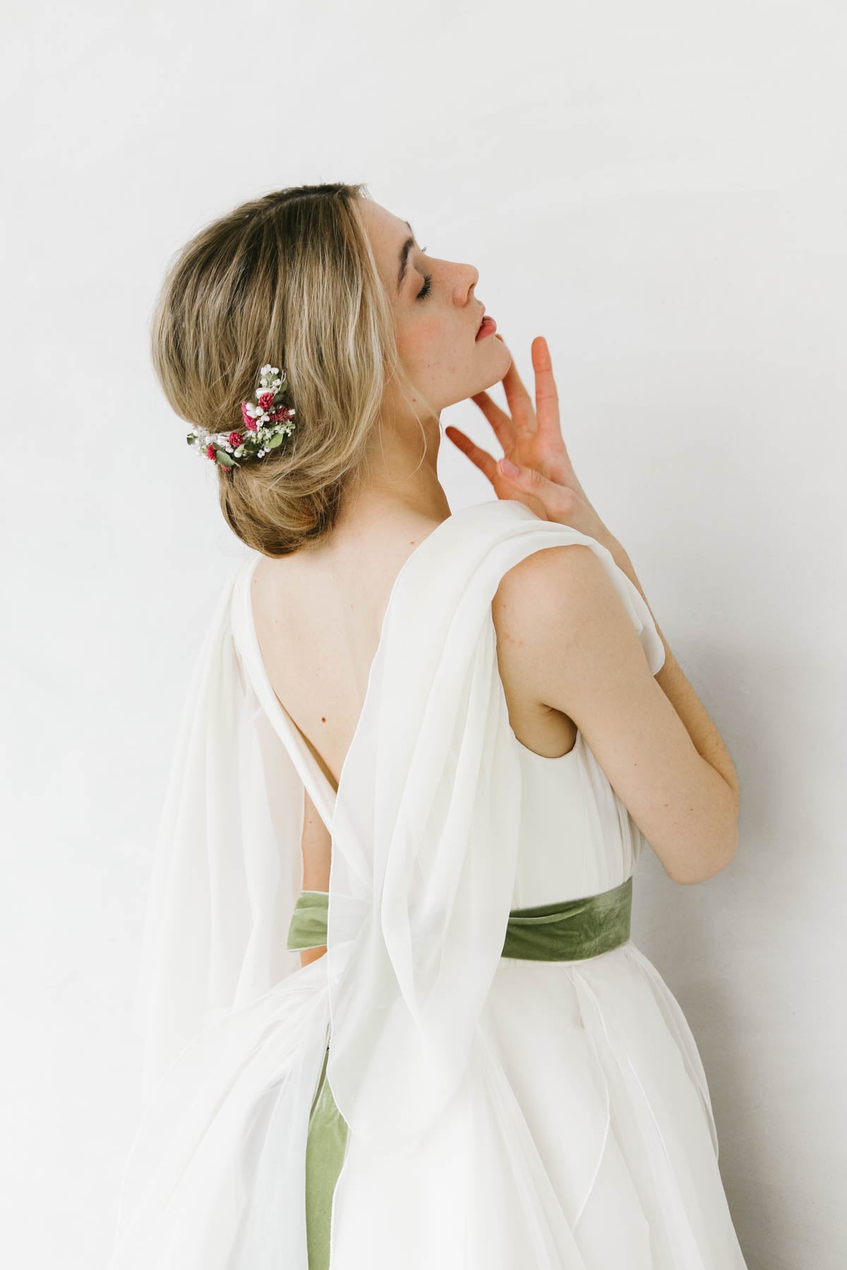 Beachte, dass unsere Designs aus hochwertigen Materialien gefertigt werden. Jedes Stück wird in unserem Wiener Atelier mit Blumen-Raritäten aus den 50ern bis 90ern sowie Trockenblumen, Perlen und Steinen per Hand gefertigt. Daher behandle dein Stück bitte mit Liebe, lege das Design nicht über länge Zeit in die Sonne und schütze es vor Nässe. So hält dein Unikat ein Leben lang und überdauert Generationen.