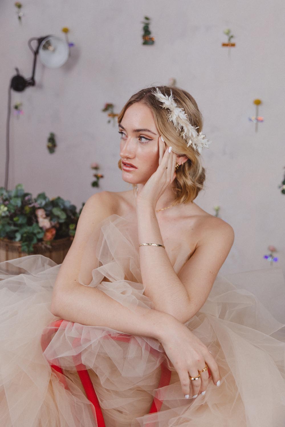 Carine ist das zartes Headpiece für romantische Brides. Trage es mit oder ohne Bänder im Haar. Handgemacht in Wien aus edlen Dried Flowers, Perlen und Steinen - so hält es ein Leben lang.