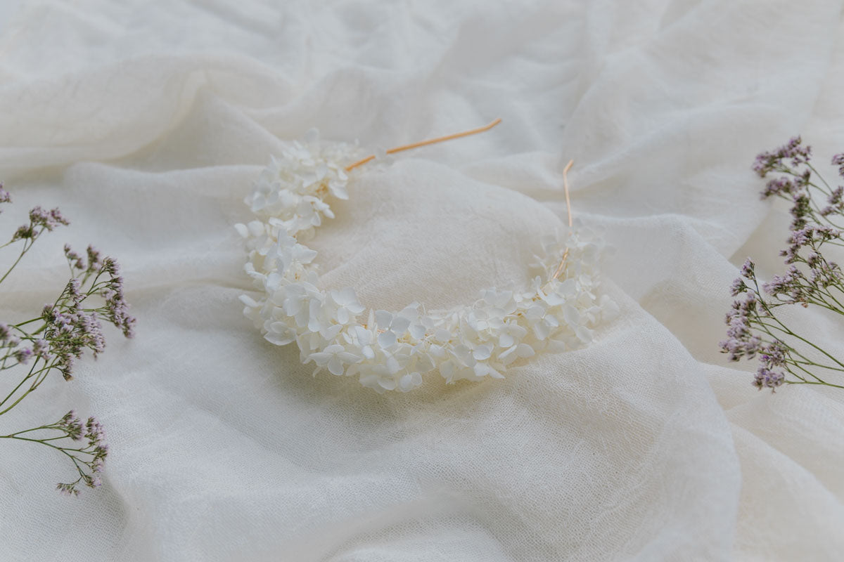 Unsere Blumenkronen sind biegsam und können so jeder Kopfform angepasst werden.