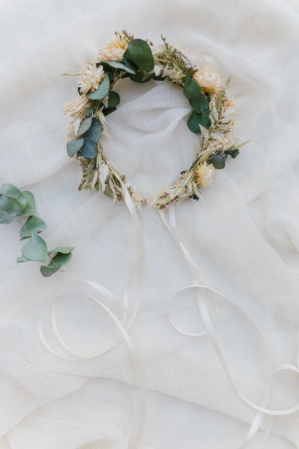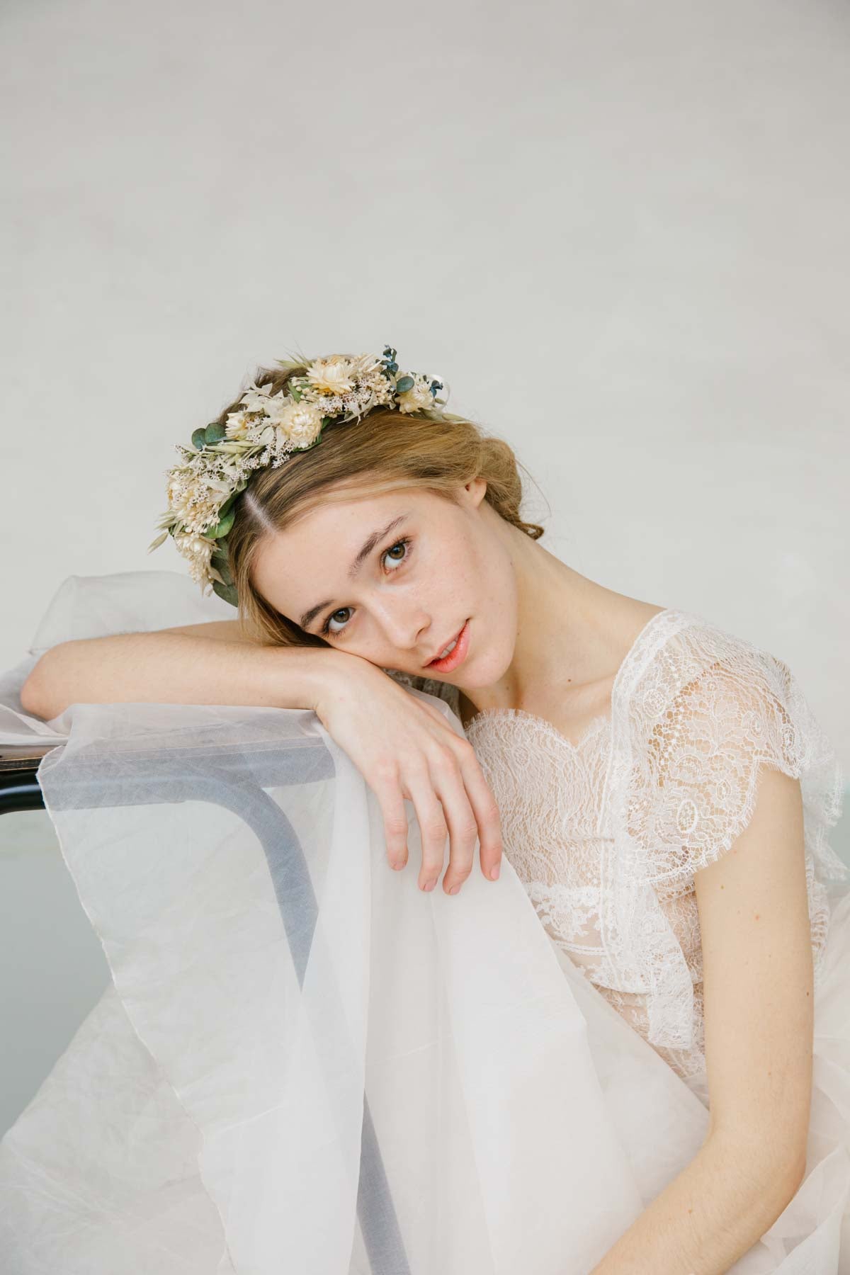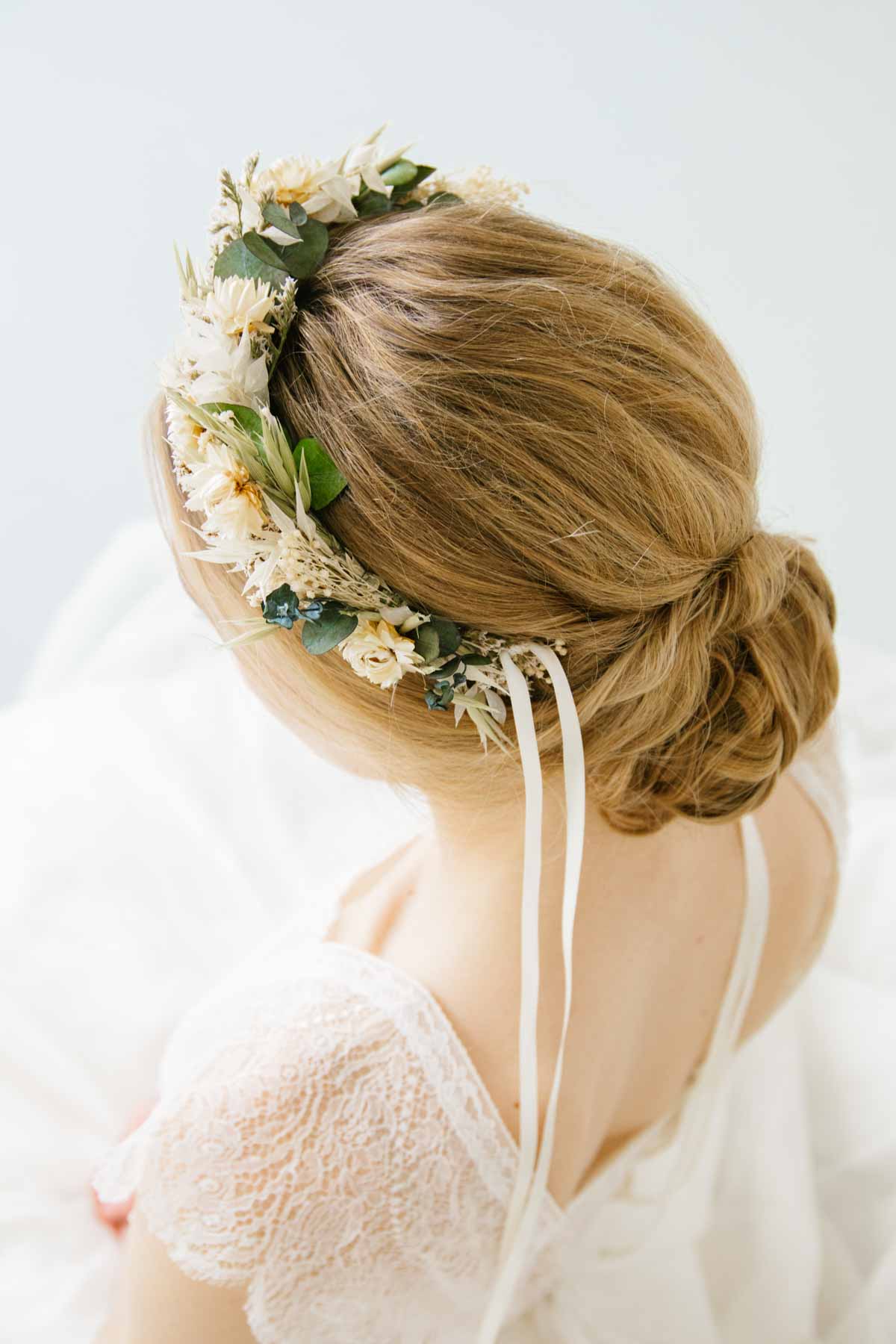Unsere Blumenkronen sind biegsam und können so jeder Kopfform angepasst werden.