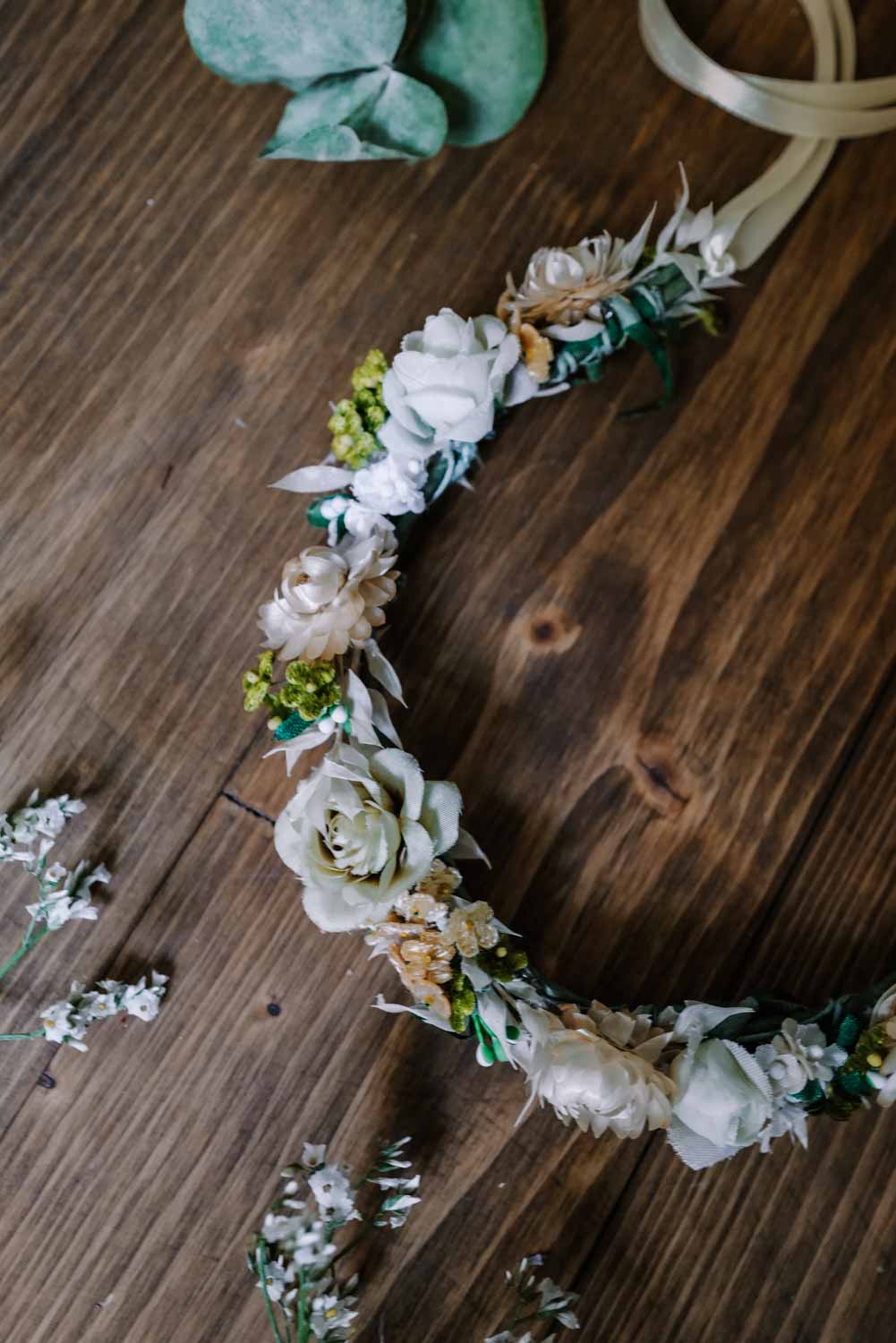 Unsere Blumenkronen sind biegsam und können so jeder Kopfform angepasst werden.