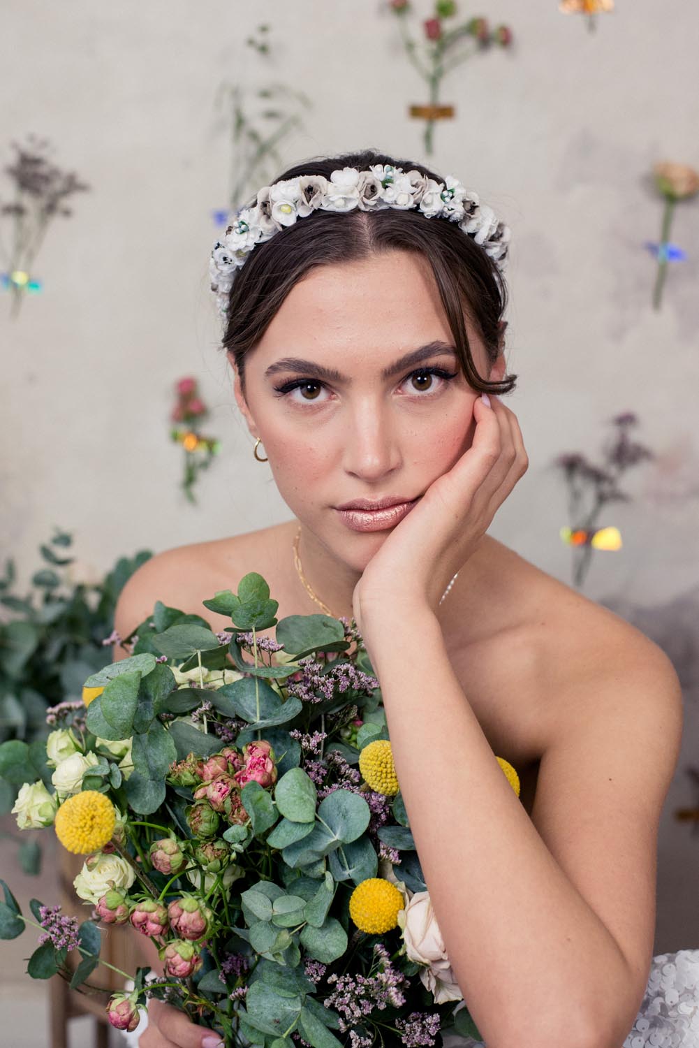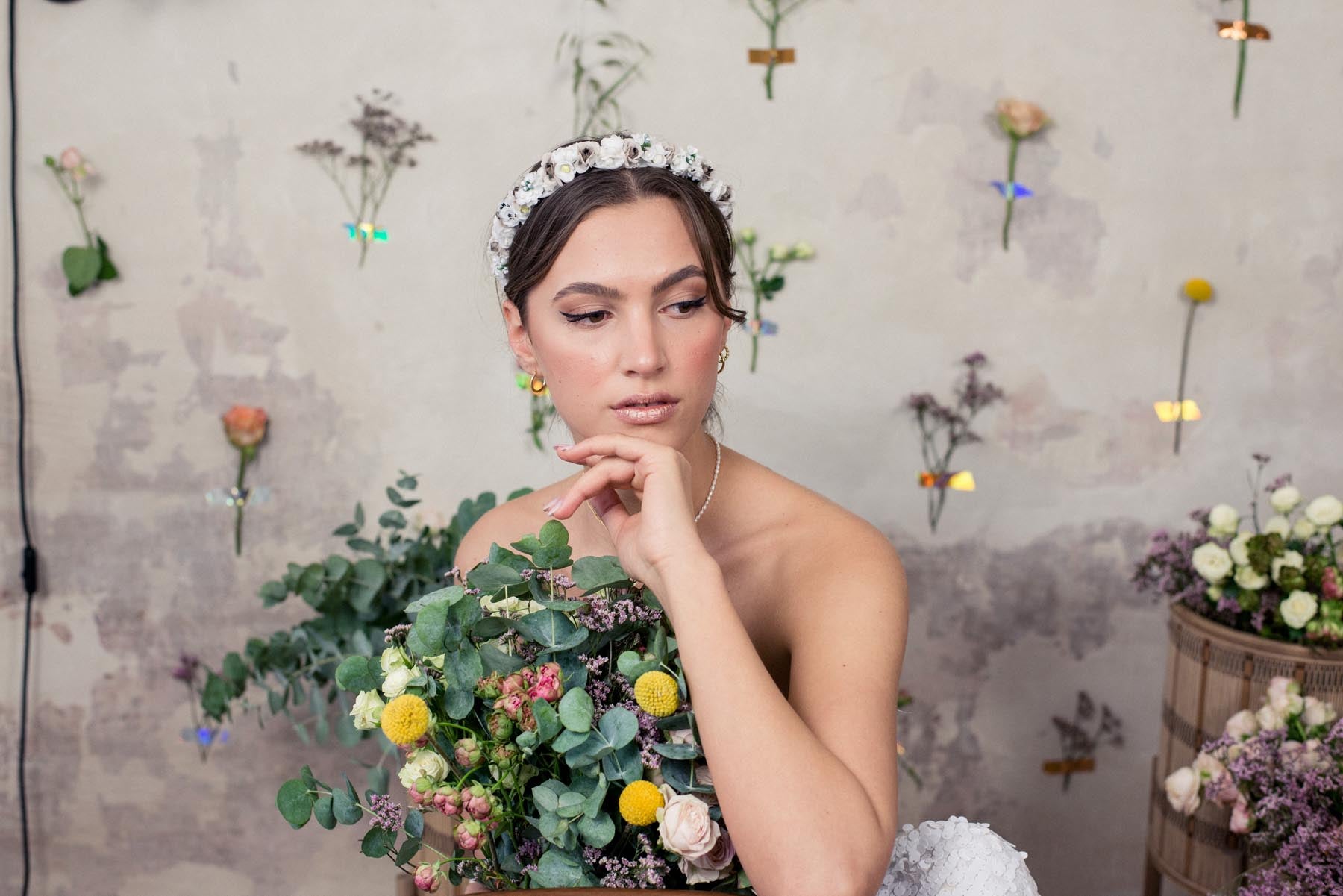 Flowercrown Calla ist eine romantische Blumenkrone für die Ewigkeit die niemals verblüht. Handgemacht in Wien aus Vintage Seidenblumen - vergoldet - im Wiener Atelier von We Are Flowergirls.