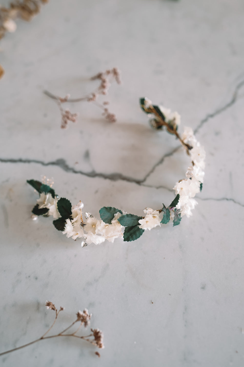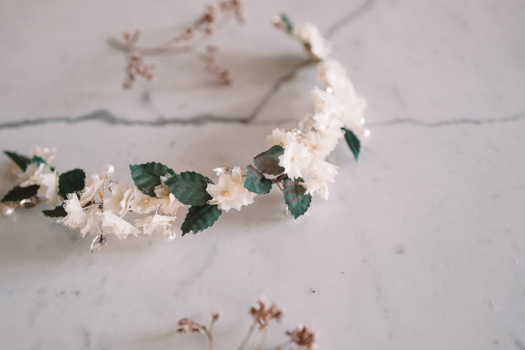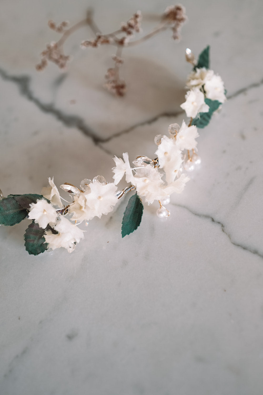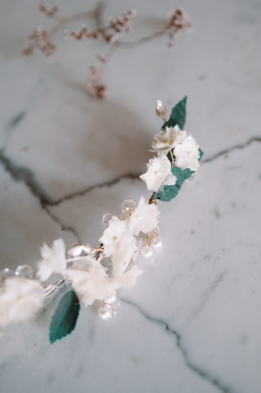 Therese ist ein zartes Headpiece für romantische Brides & Bridesmaids. Trage es mit oder ohne Bänder im Haar. Handgemacht in Wien aus edlen Vintage Seidenblumen, Perlen und Steinen - so hält es ein Leben lang.