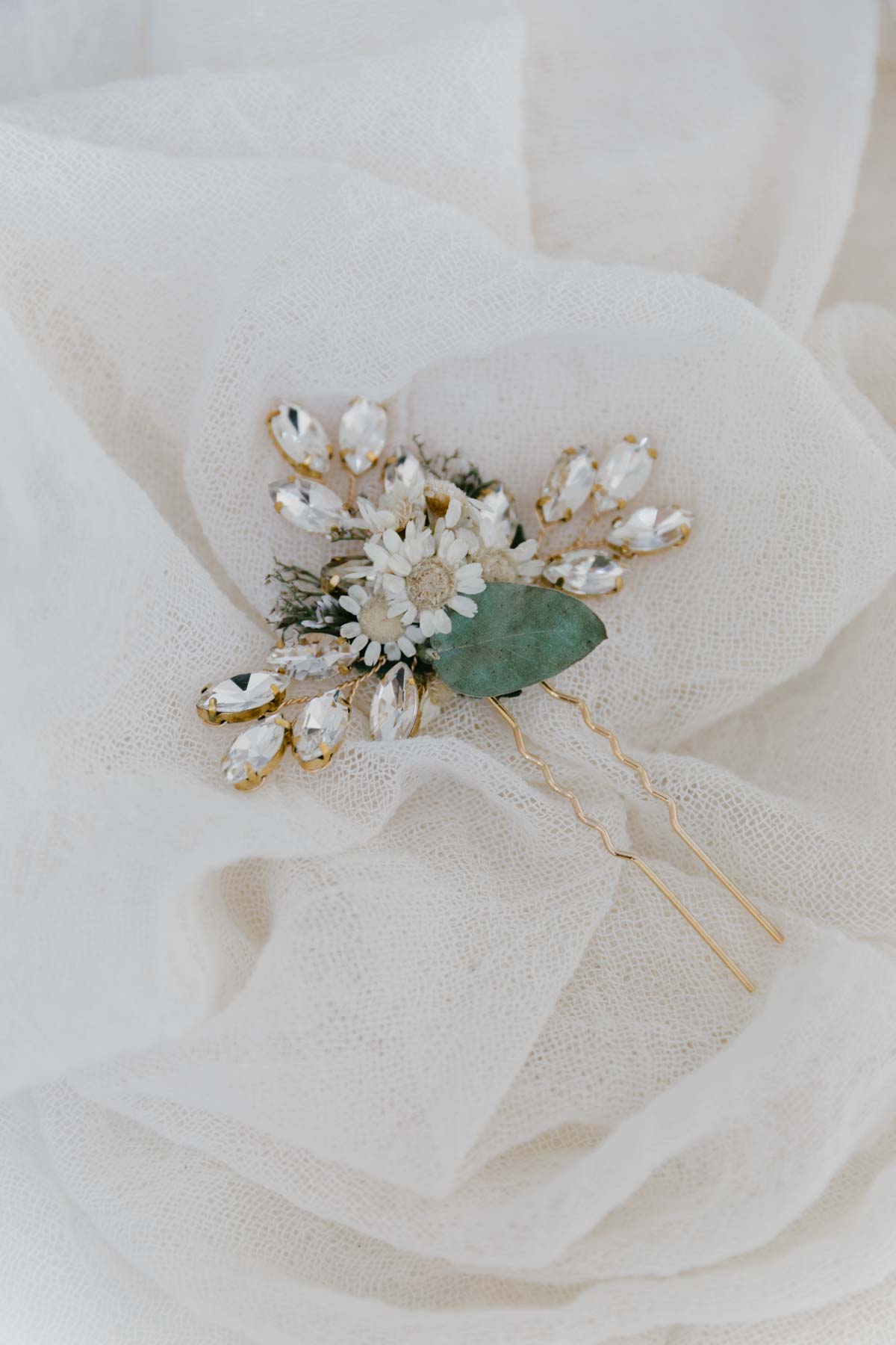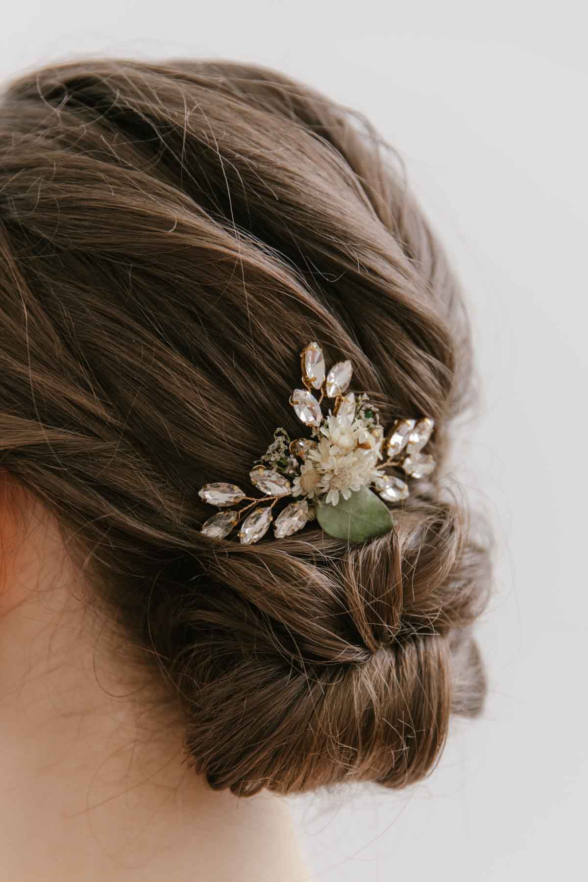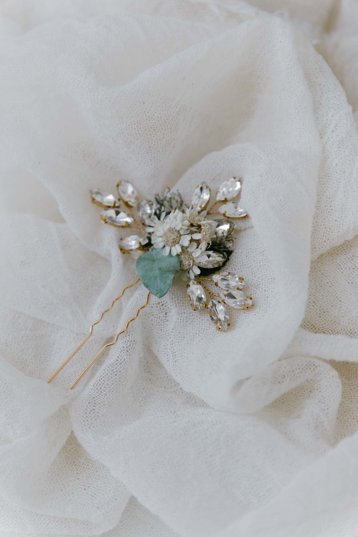 • aus hochwertig getrockneten & konservierten Blumen sowie Vintage Seidenblumen