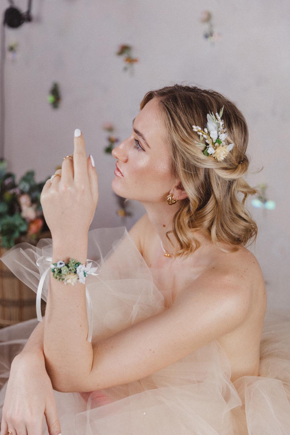 Beachte, dass unsere Designs aus hochwertigen Materialien gefertigt werden. Jedes Stück wird in unserem Wiener Atelier mit Blumen-Raritäten aus den 50ern bis 90ern sowie Trockenblumen, Perlen und Steinen per Hand gefertigt. Daher behandle dein Stück bitte mit Liebe, lege das Design nicht über länge Zeit in die Sonne und schütze es vor Nässe. So hält dein Unikat ein Leben lang und überdauert Generationen.