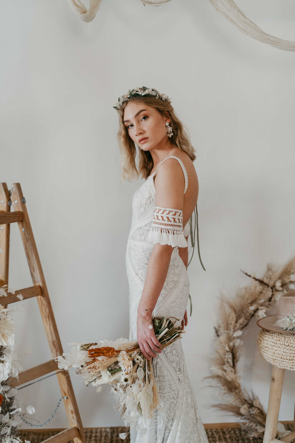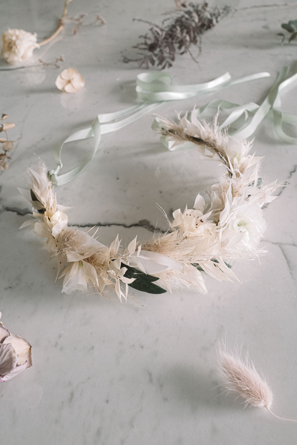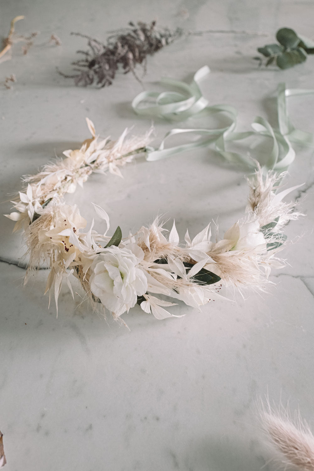 Khali ist das perfekte Statement-Piece für Bohemian-Brides. Handgemacht in Wien aus edlen Vintage Seidenblumen und Dried Flowers und hält so ein Leben lang.
