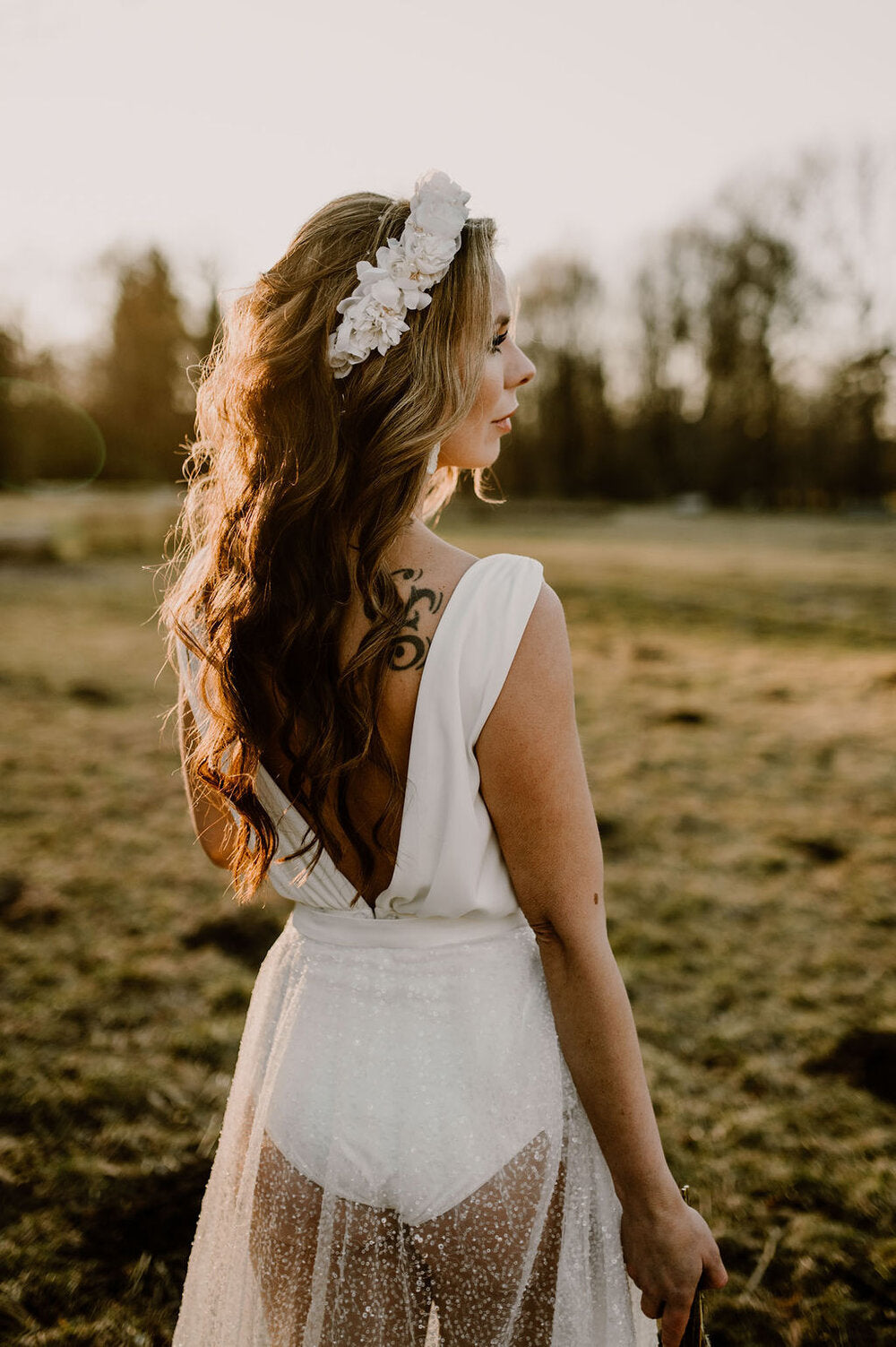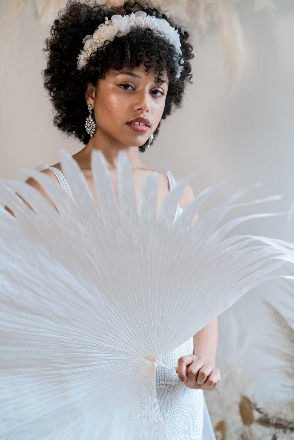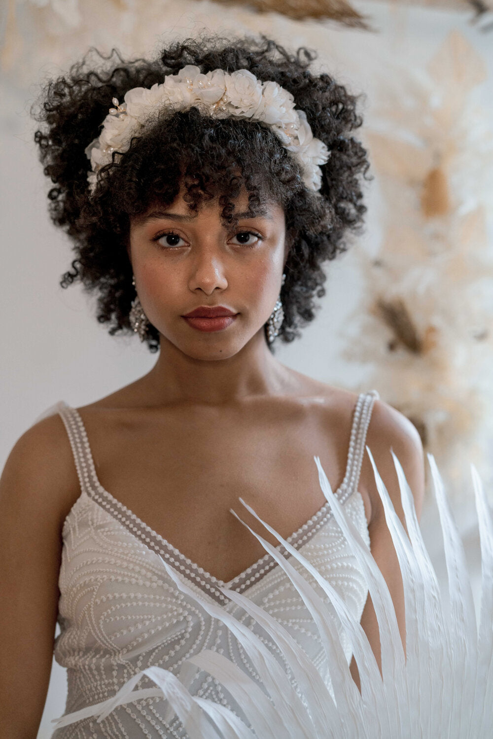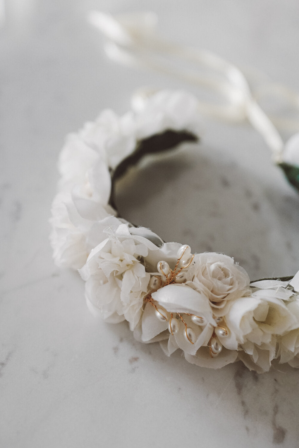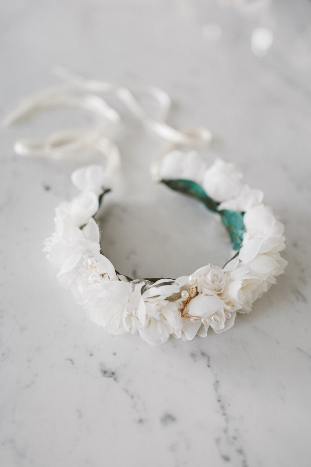 Unsere Blumenkronen sind biegsam und können so jeder Kopfform angepasst werden.