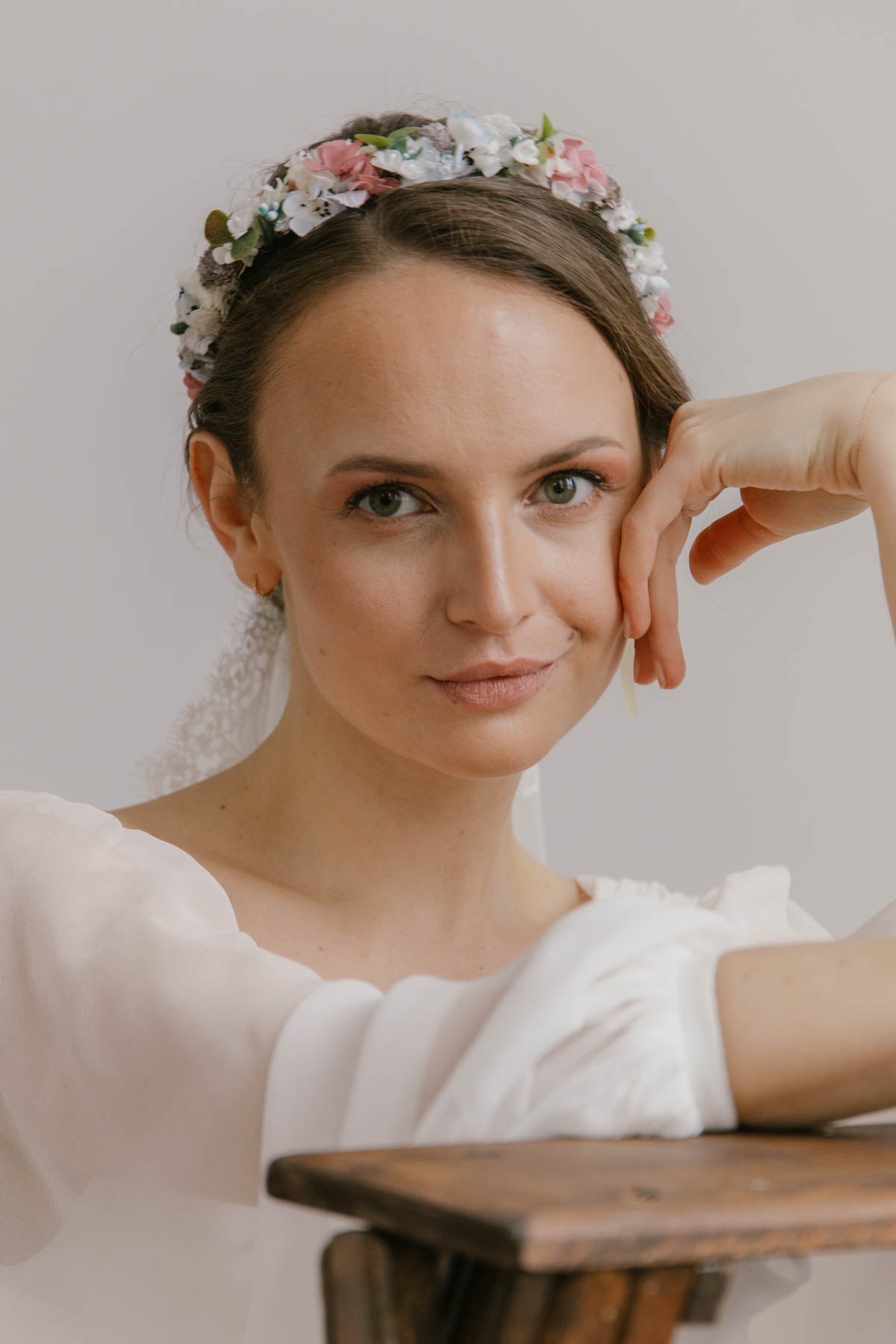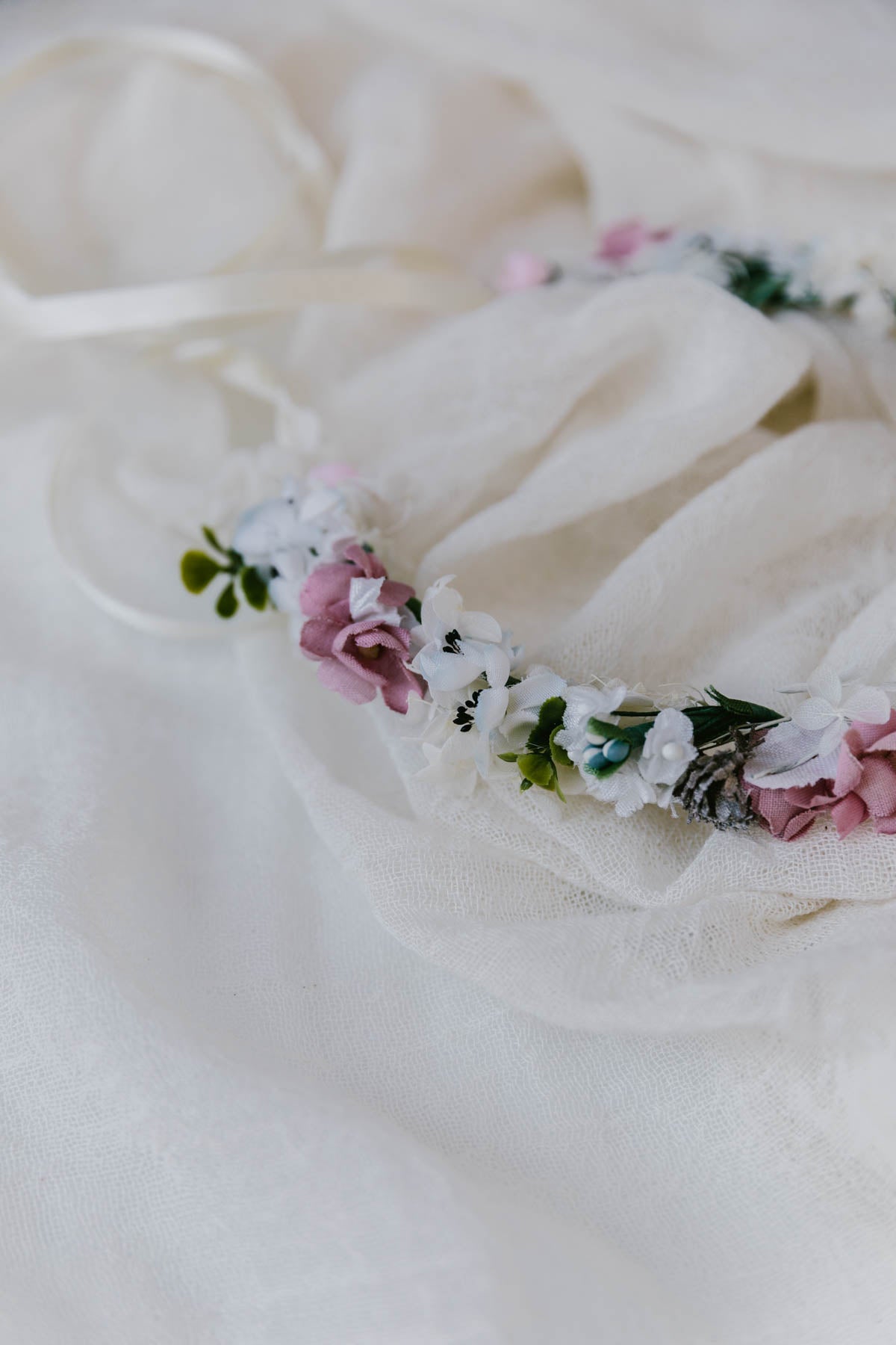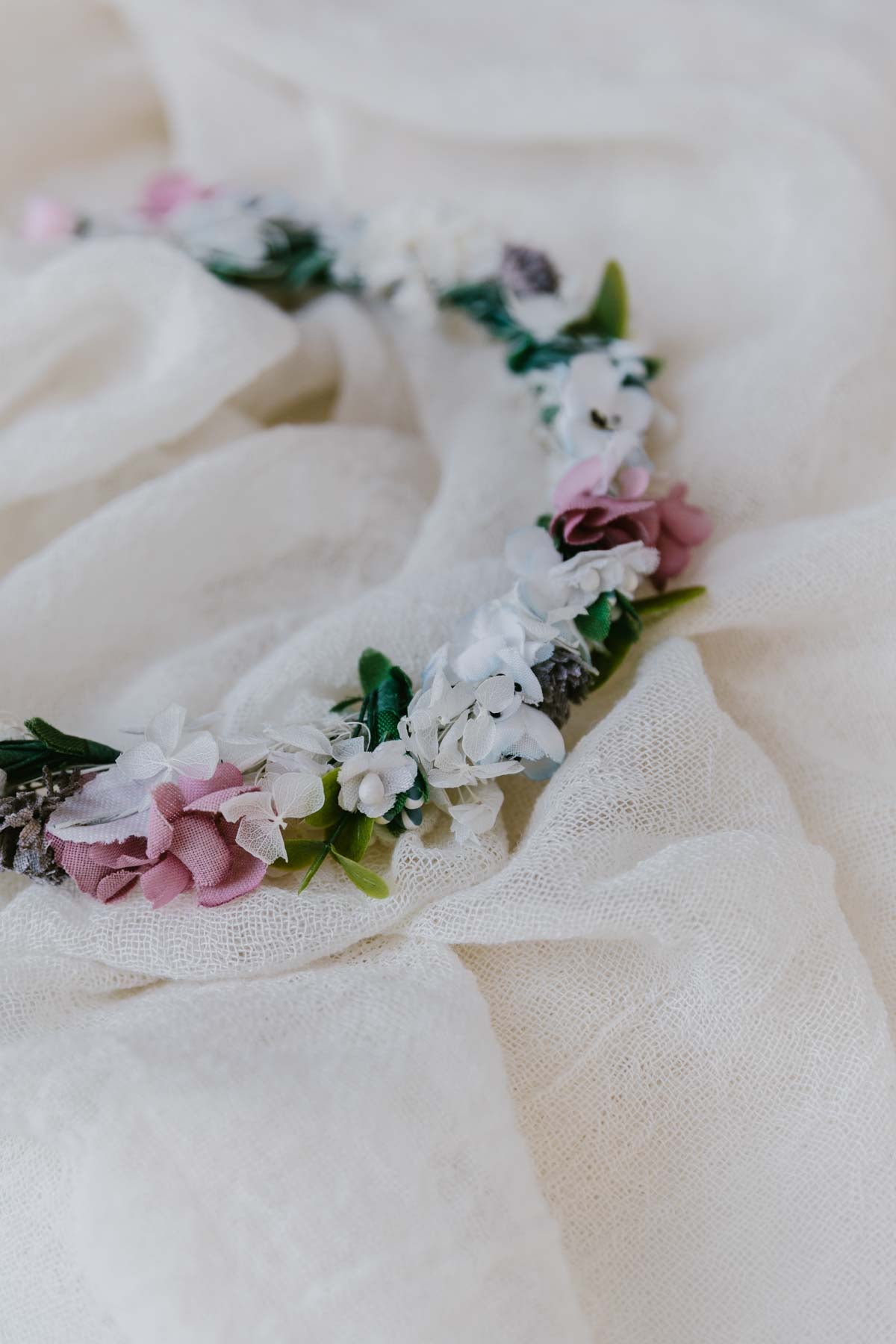 • aus hochwertig getrockneten & konservierten Blumen sowie Vintage Seidenblumen