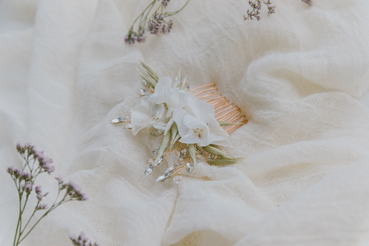 Beachte, dass unsere Designs aus hochwertigen Materialien gefertigt werden. Jedes Stück wird in unserem Wiener Atelier mit Blumen-Raritäten aus den 50ern bis 90ern sowie Trockenblumen, Perlen und Steinen per Hand gefertigt. Daher behandle dein Stück bitte mit Liebe, lege das Design nicht über länge Zeit in die Sonne und schütze es vor Nässe. So hält dein Unikat ein Leben lang und überdauert Generationen.