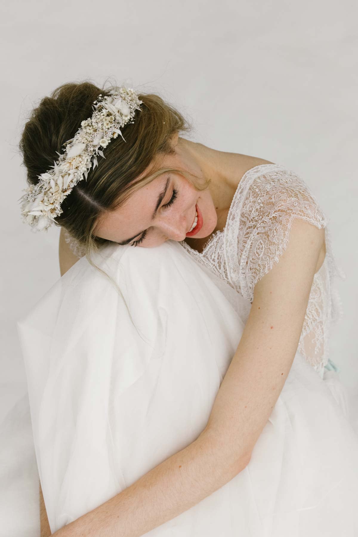Unsere Blumenkronen sind biegsam und können so jeder Kopfform angepasst werden.