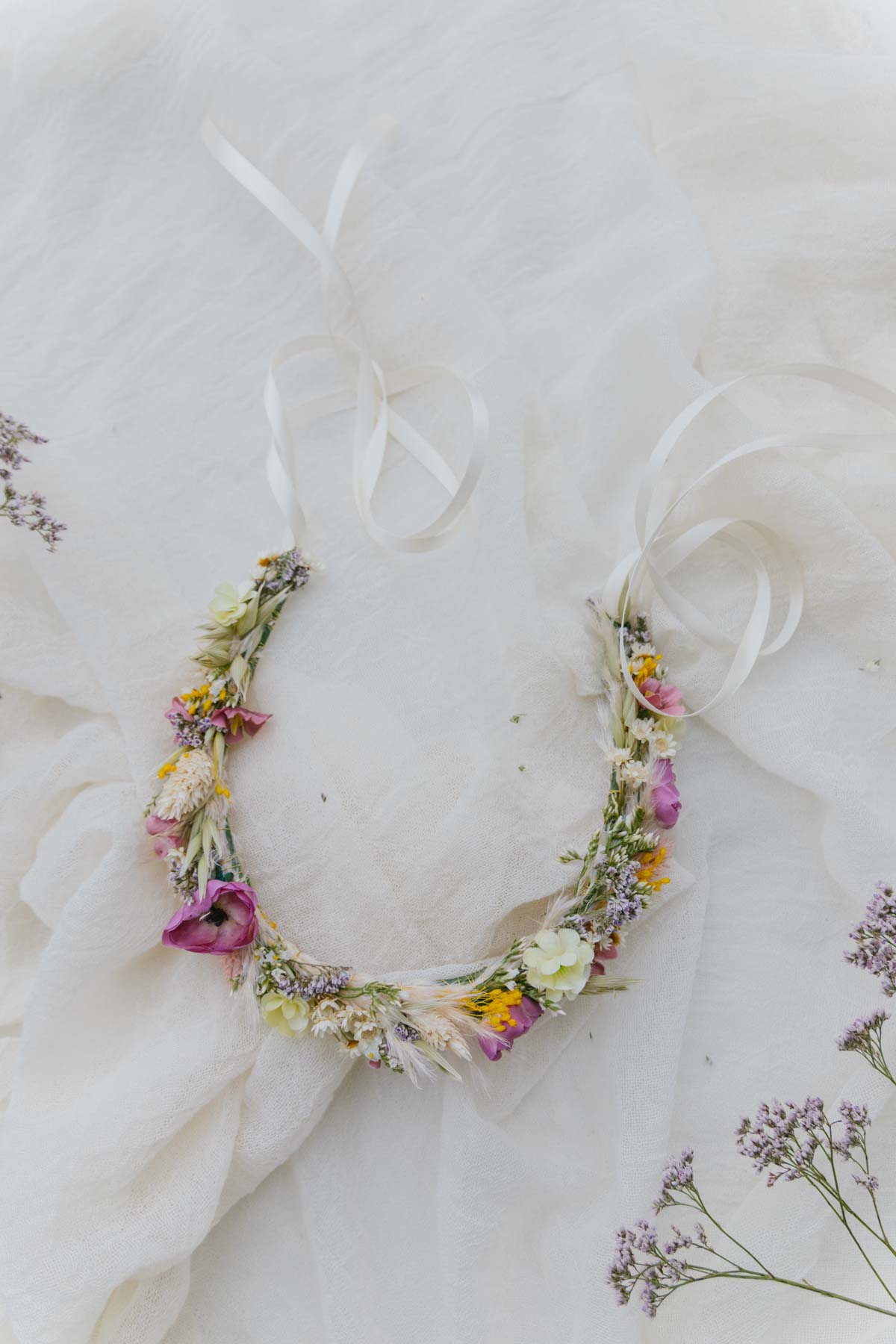 Unsere Blumenkronen sind biegsam und können so jeder Kopfform angepasst werden.