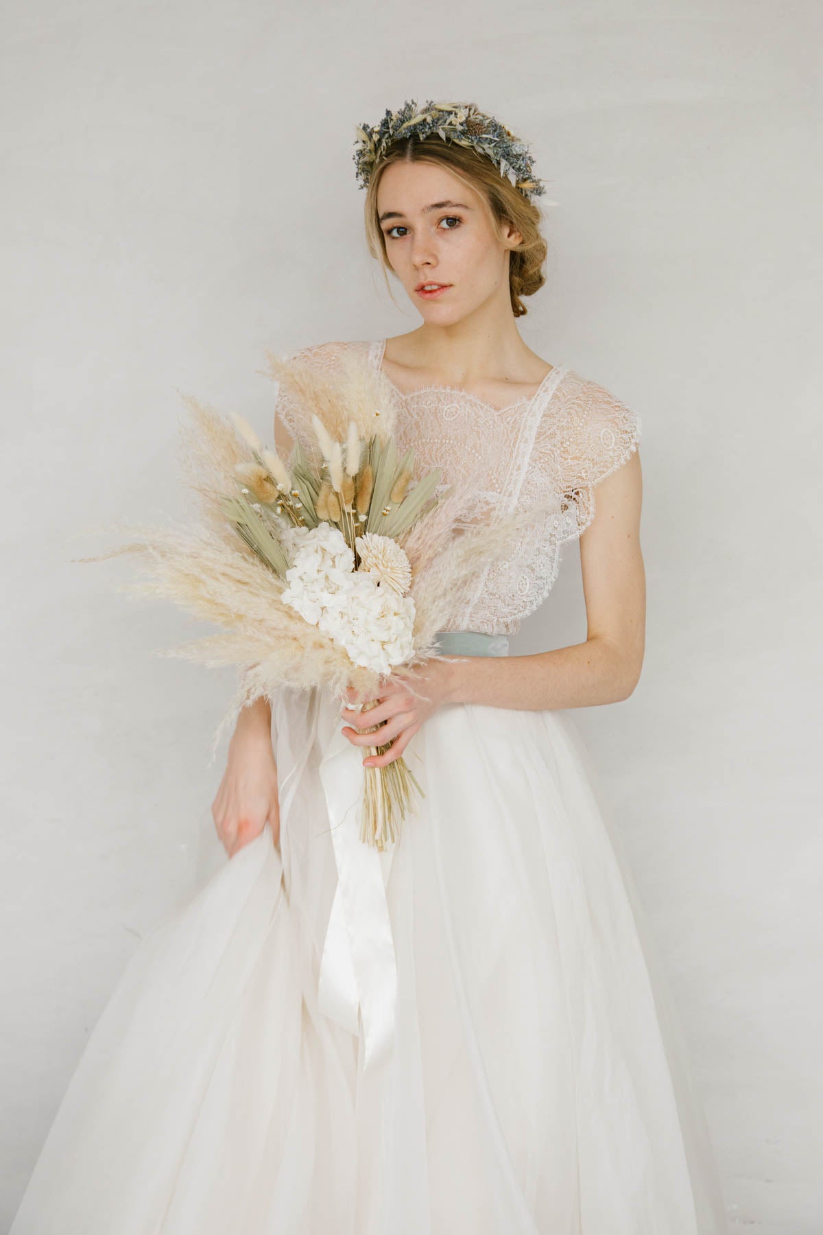 Beachte, dass unsere Designs aus hochwertigen Materialien gefertigt werden. Jedes Stück wird in unserem Wiener Atelier mit Blumen-Raritäten aus den 50ern bis 90ern sowie Trockenblumen, Perlen und Steinen per Hand gefertigt. Daher behandle dein Stück bitte mit Liebe, lege das Design nicht über länge Zeit in die Sonne und schütze es vor Nässe. So hält dein Unikat ein Leben lang und überdauert Generationen.