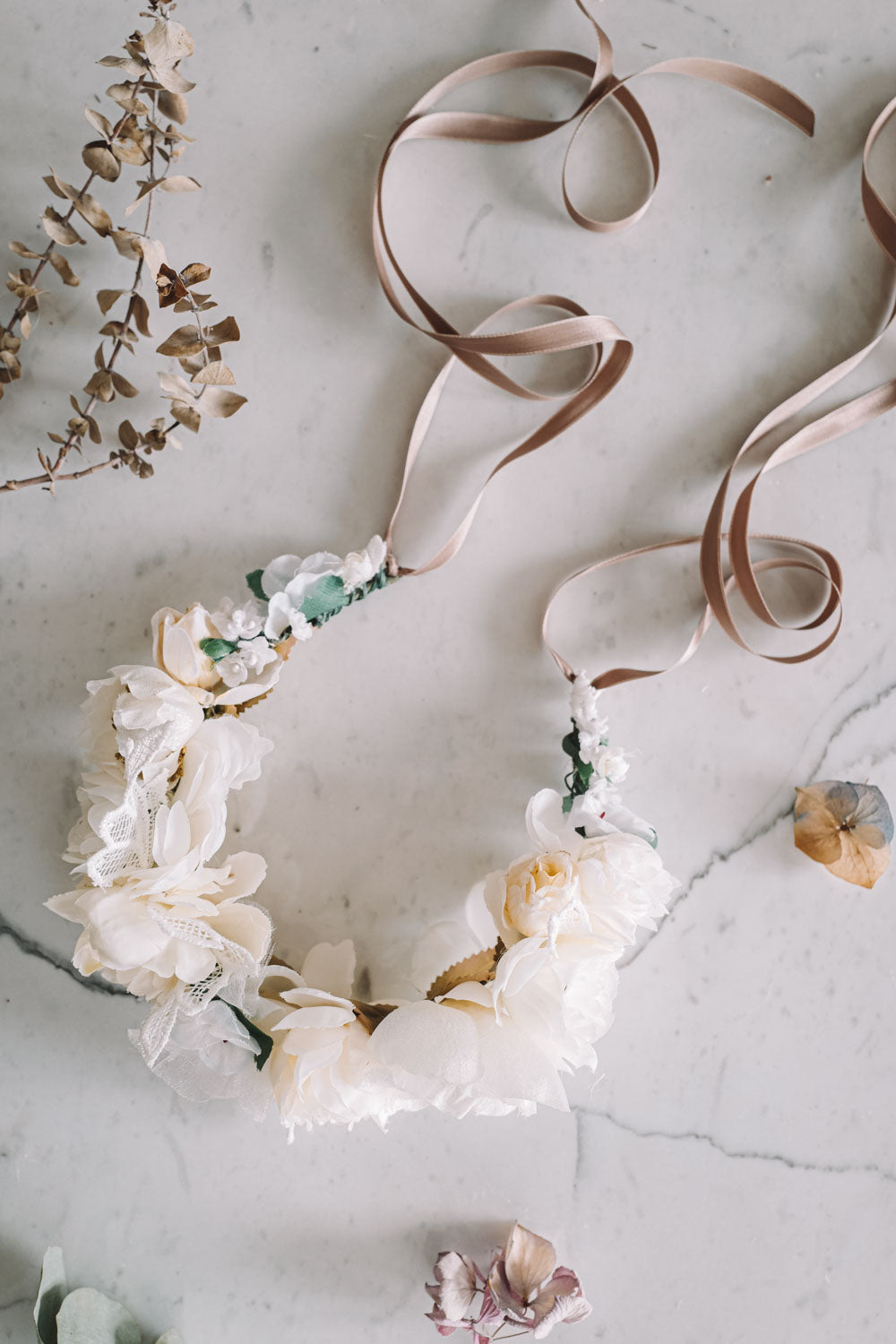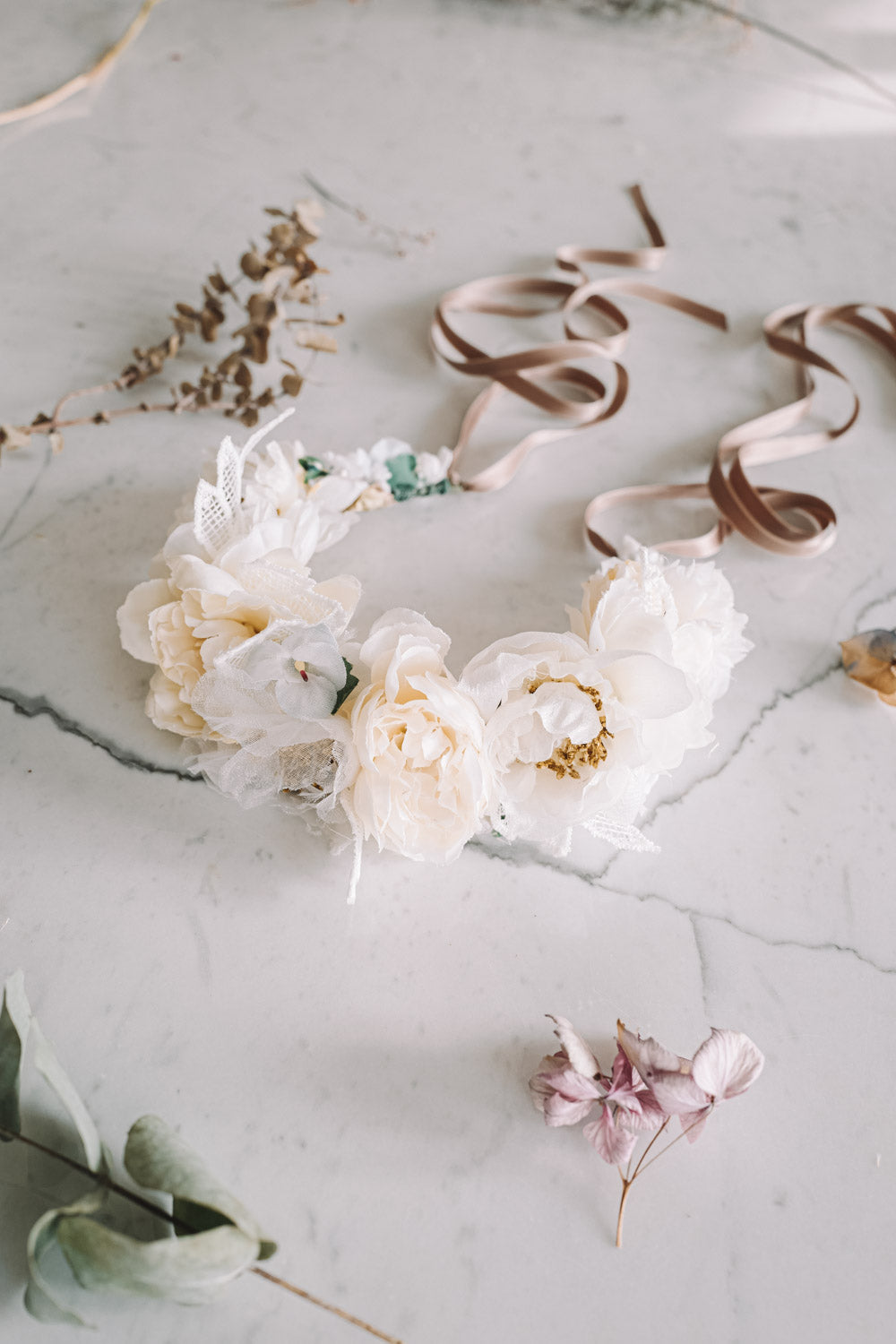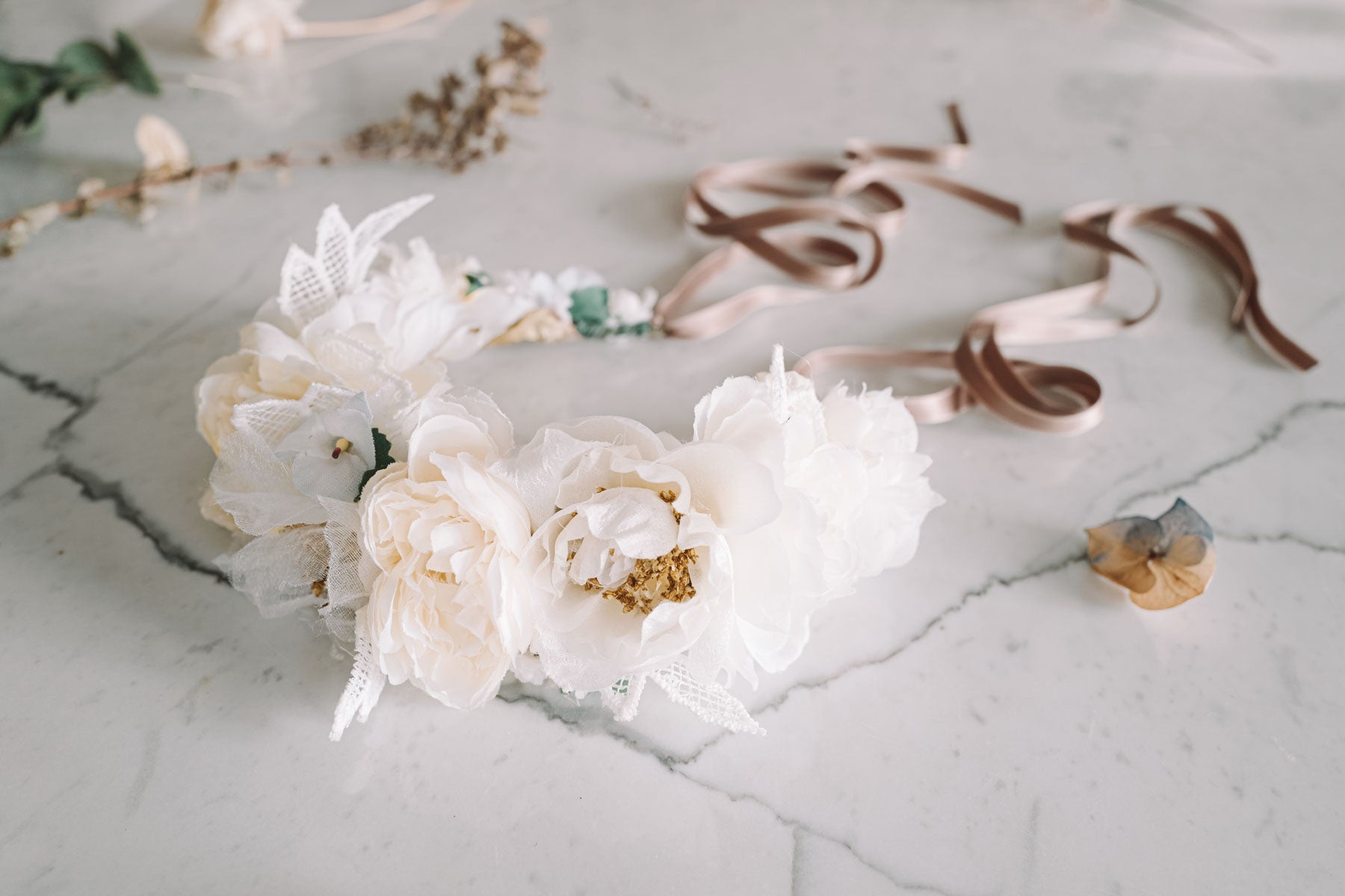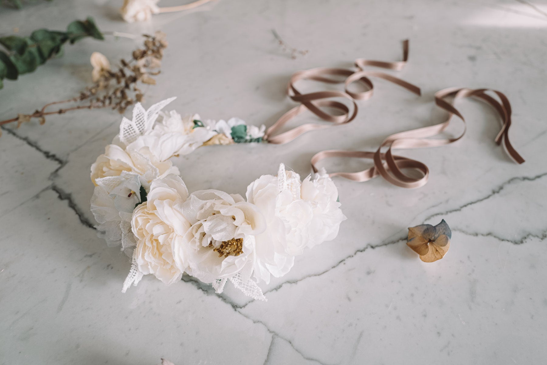 Sarah ist das perfekte Statement-Piece für den romantischen Bridal- oder Trachten-Look. Handgemacht in Wien aus edlen Vintage Seidenblumen und Dried Flowers und hält so ein Leben lang.