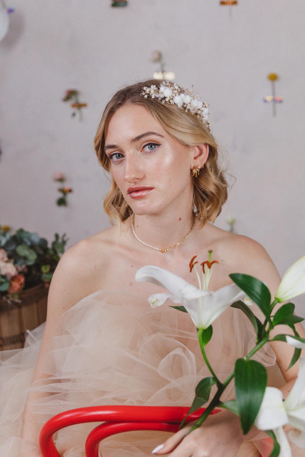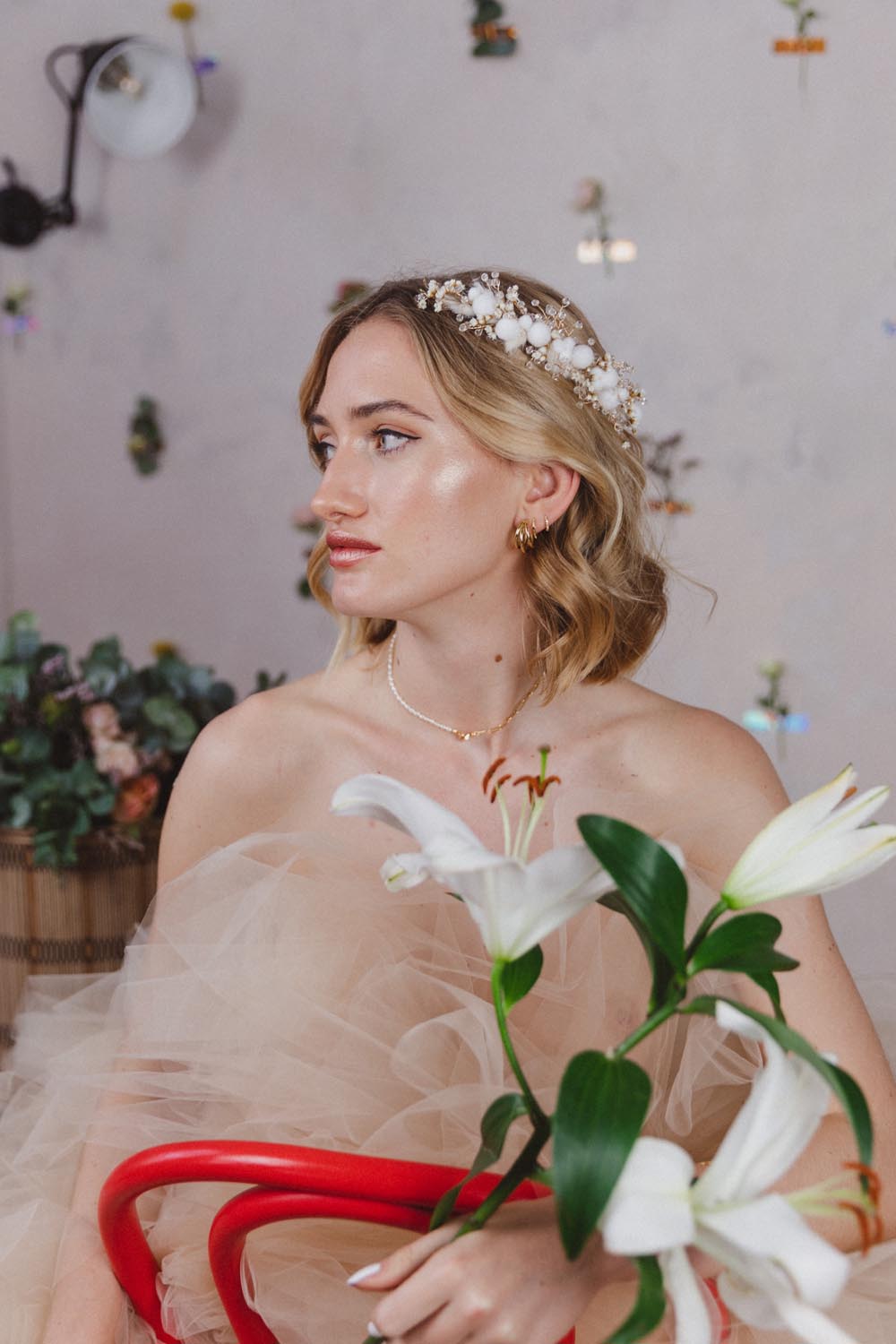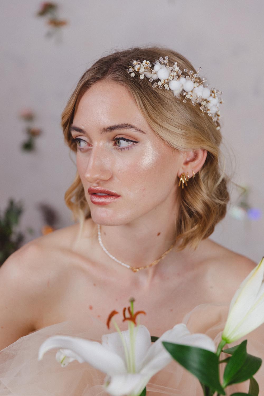 Snowwhite ist ein zartes Headpiece für romantische Brides. Trage es mit oder ohne Bänder im Haar oder auch als Gürtel oder Kette um den Hals. Handgemacht in Wien aus edlen Vintage Seidenblumen, Perlen, PomPoms und Steinen - so hält es ein Leben lang.