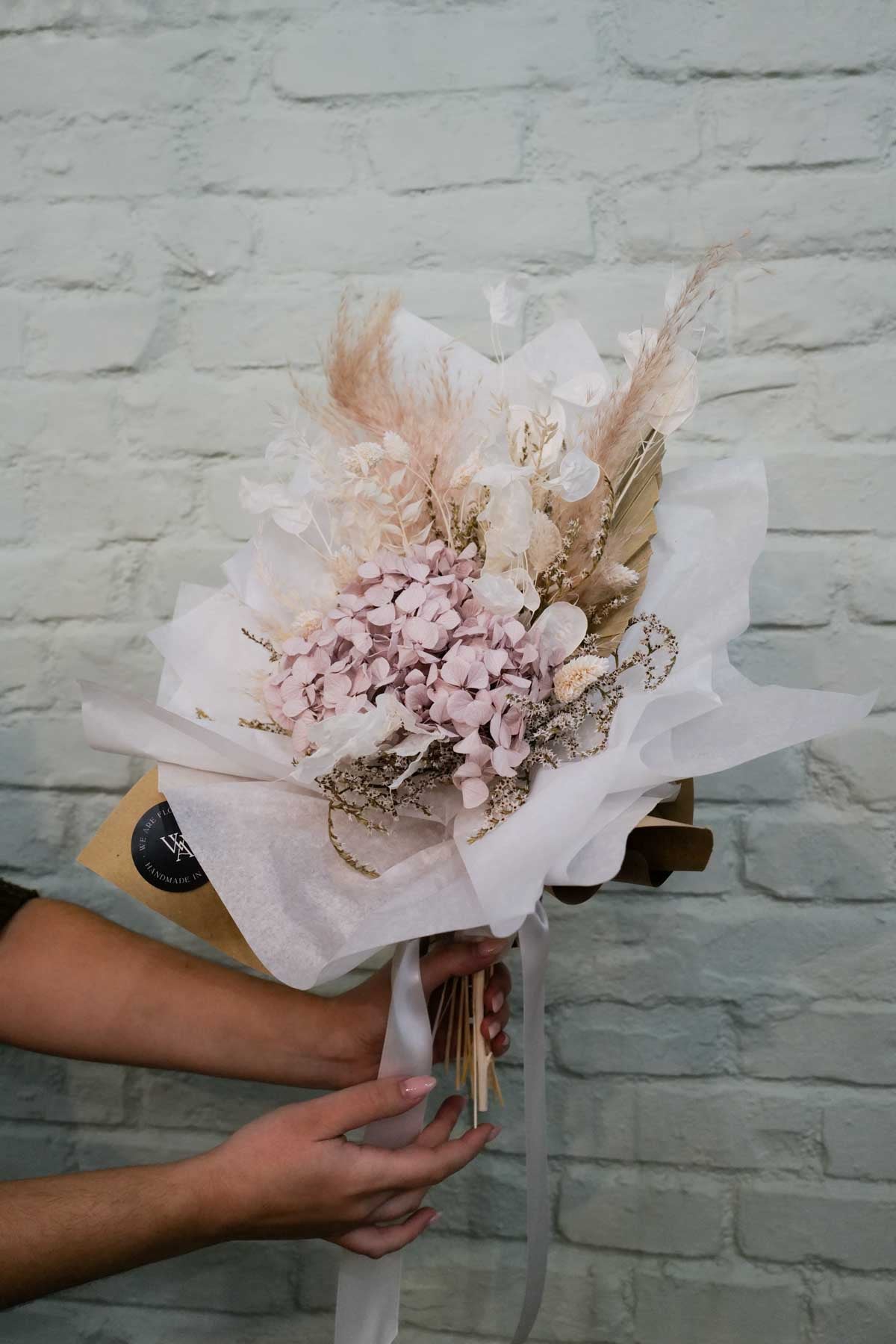Unsere Trockenblumensträuße werden von uns aus hochwertig getrockneten und konservierten Dried Flowers gebunden und halten ein Leben lang. Sie sind die pflegeleichteste Dekoration für Zuhause und ein traumhaftes Geschenk wenn es mal einen Tick anders sein soll als ein klassischer Blumenstrauss.