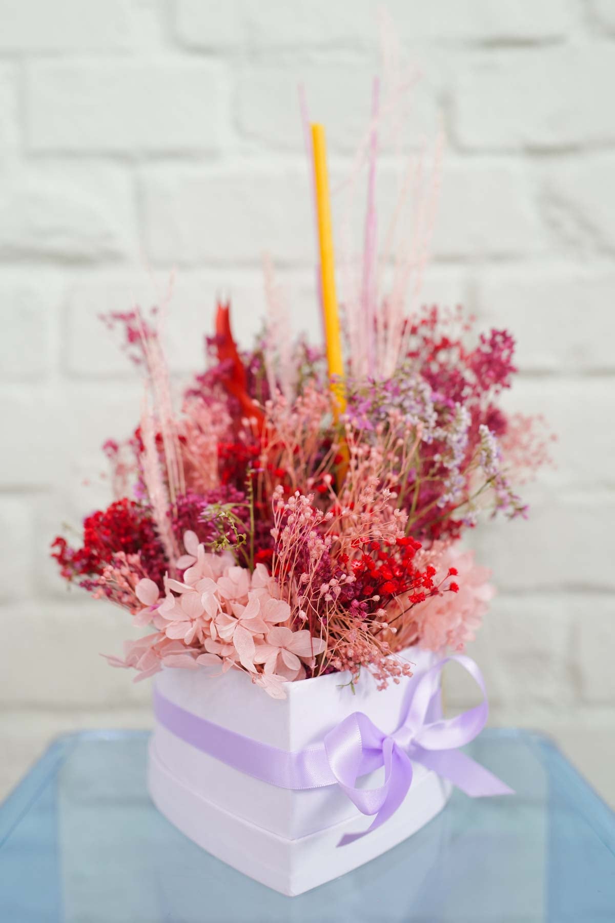 Unsere Dried Flower Boxen sind das perfekte Mitbringsel zum Geburtstag, Geschenk zum Valentinstag oder Home-Deko für dein eigenes Zuhause. Sie kommen mit einer langen Kerze. Unsere Blumenboxen werden von uns aus hochwertig getrockneten und konservierten Dried Flowers gefertigt und halten ein Leben lang. Sie sind die pflegeleichteste Dekoration für Zuhause und ein traumhaftes Geschenk wenn es mal einen Tick anders sein soll als ein klassischer Blumenstrauss.