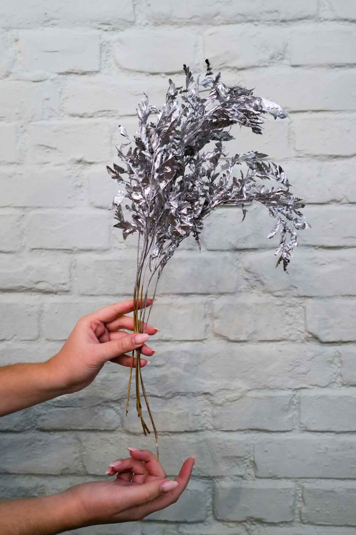 Ein Bund getrockneter, silbener Farn für die Dekoration in der Vase. Hält viele Jahre.