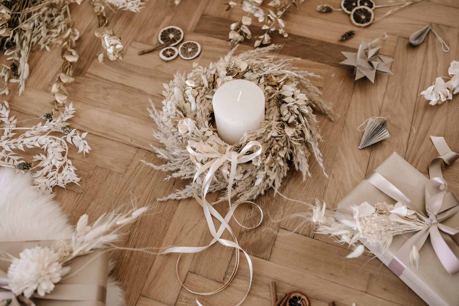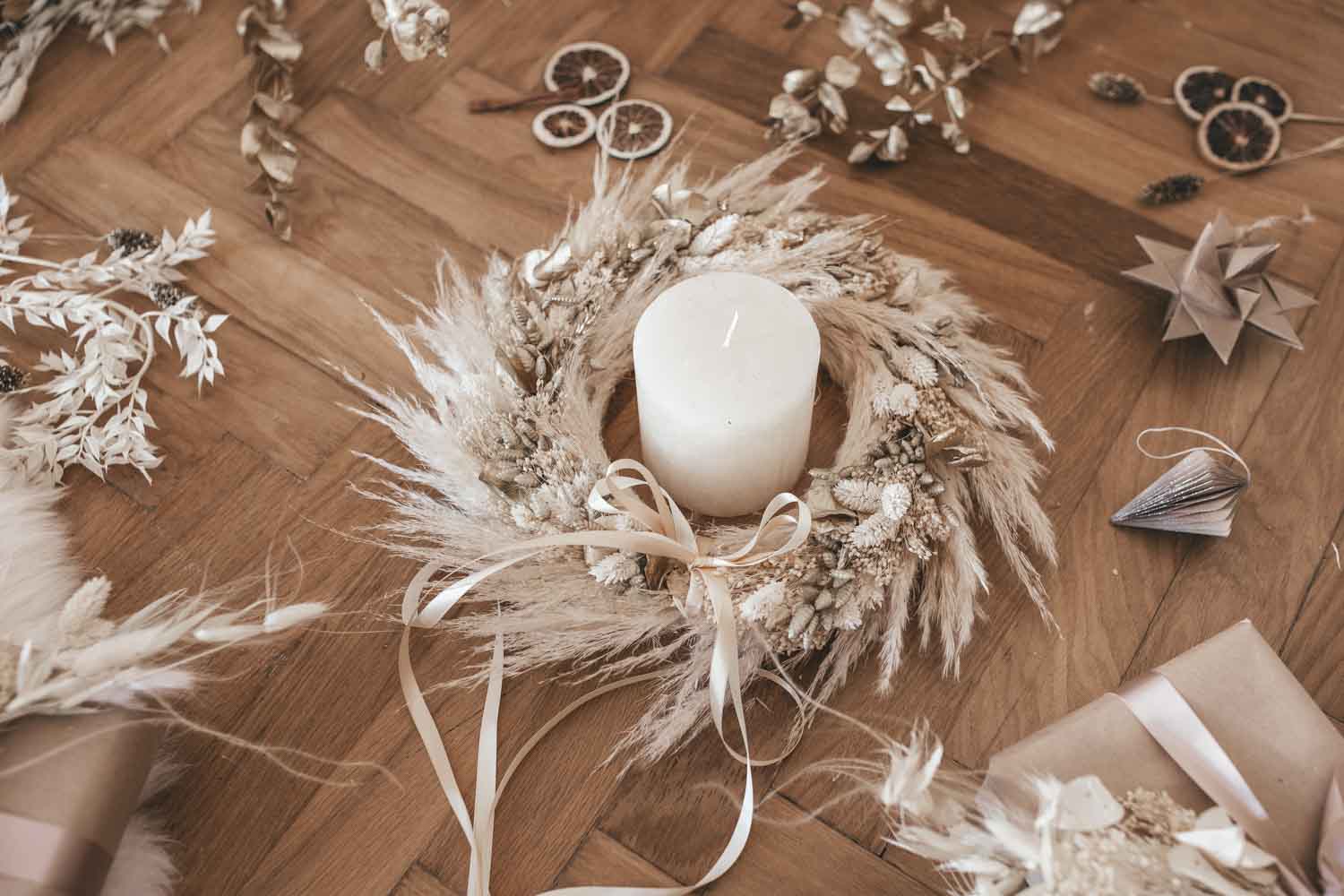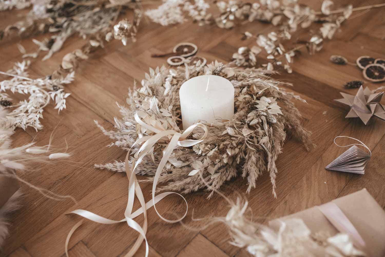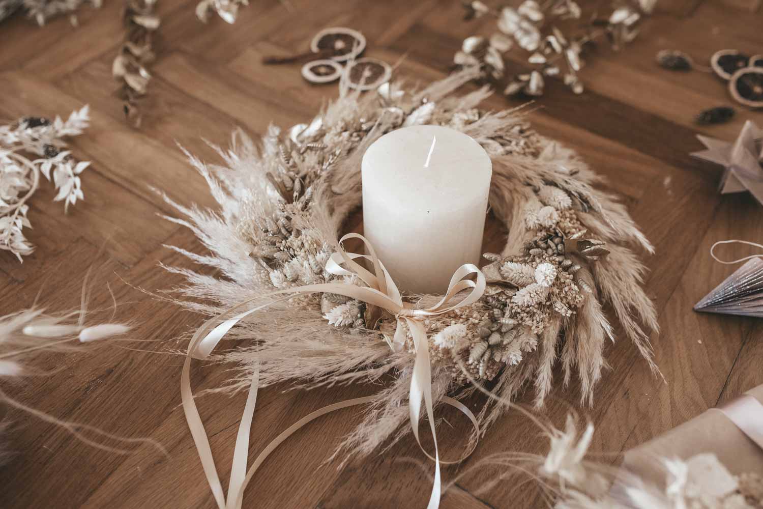- zu verwenden als Deko-Kranz um eine Kerze oder Türkranz