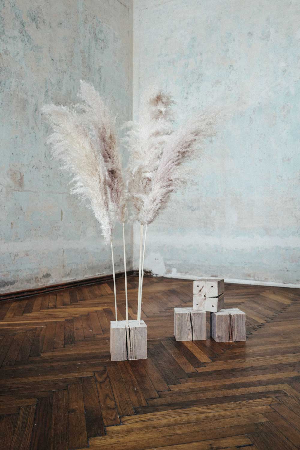 Du liebst Pampasgras und möchtest deine eigene Hochzeit mit dem eleganten Gras für die Ewigkeit schmücken? Dann ist unser Wooden Block genau das Richtige für dich. Du kannst die Pampasgars-Blöcke sowohl im Empfangsbereich, beim Altar, im Festssaal oder Outdoor im Garten wunderschön in Szene setzen. Und das beste daran: Deine Helferleins können die Deko im nu von einem Ort bei der Hochzeit zum nächsten bringen. Und nach dem großen Tag, stellst du deinen Wooden Pampas Block zu Hause oder im Büro als Erinnerung an die Hochzeit auf. Kein Wegwerfen von Deko oder Blumen und keine Hochzeits-Ausgaben, die nachher nicht weiter verwendet werden können.