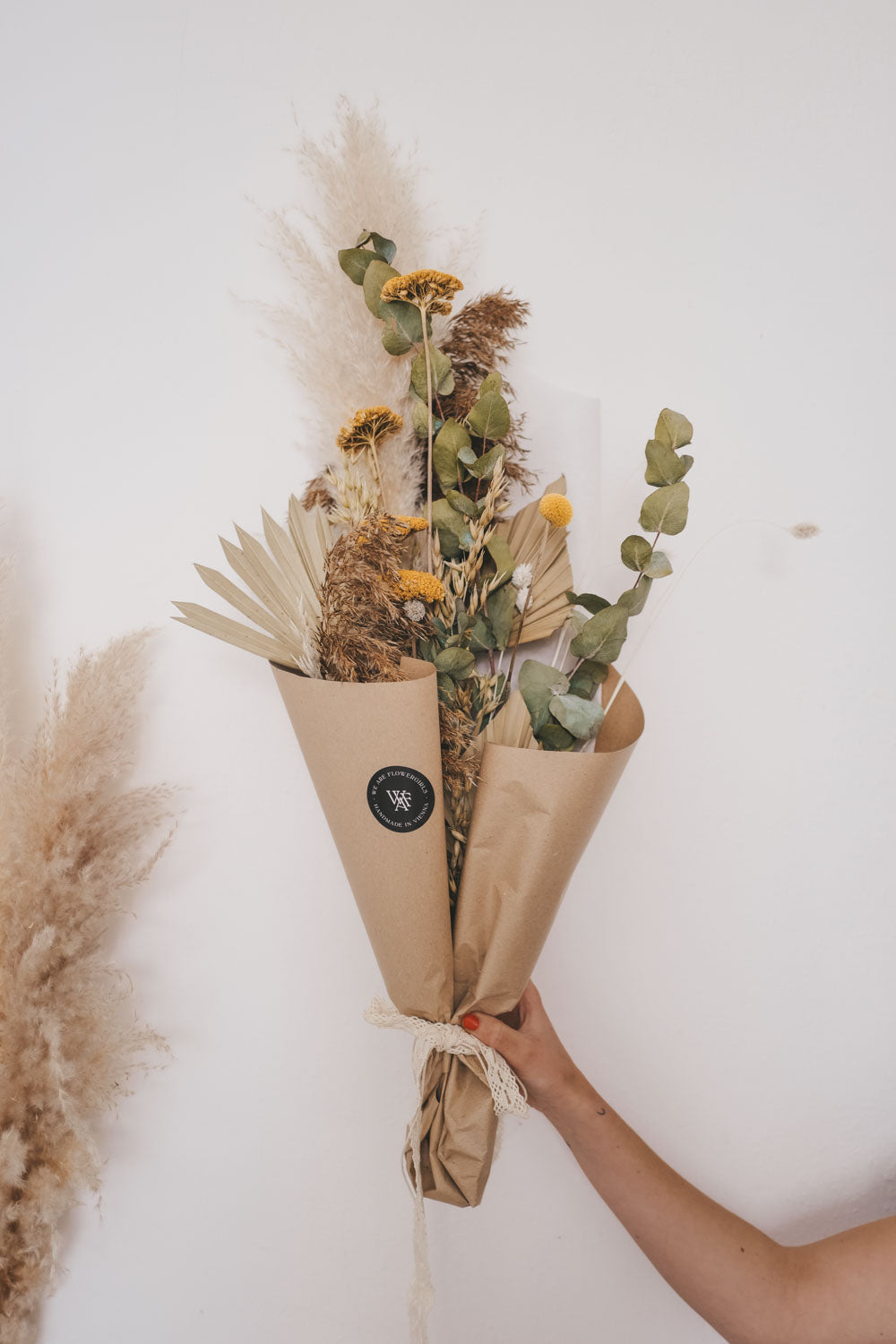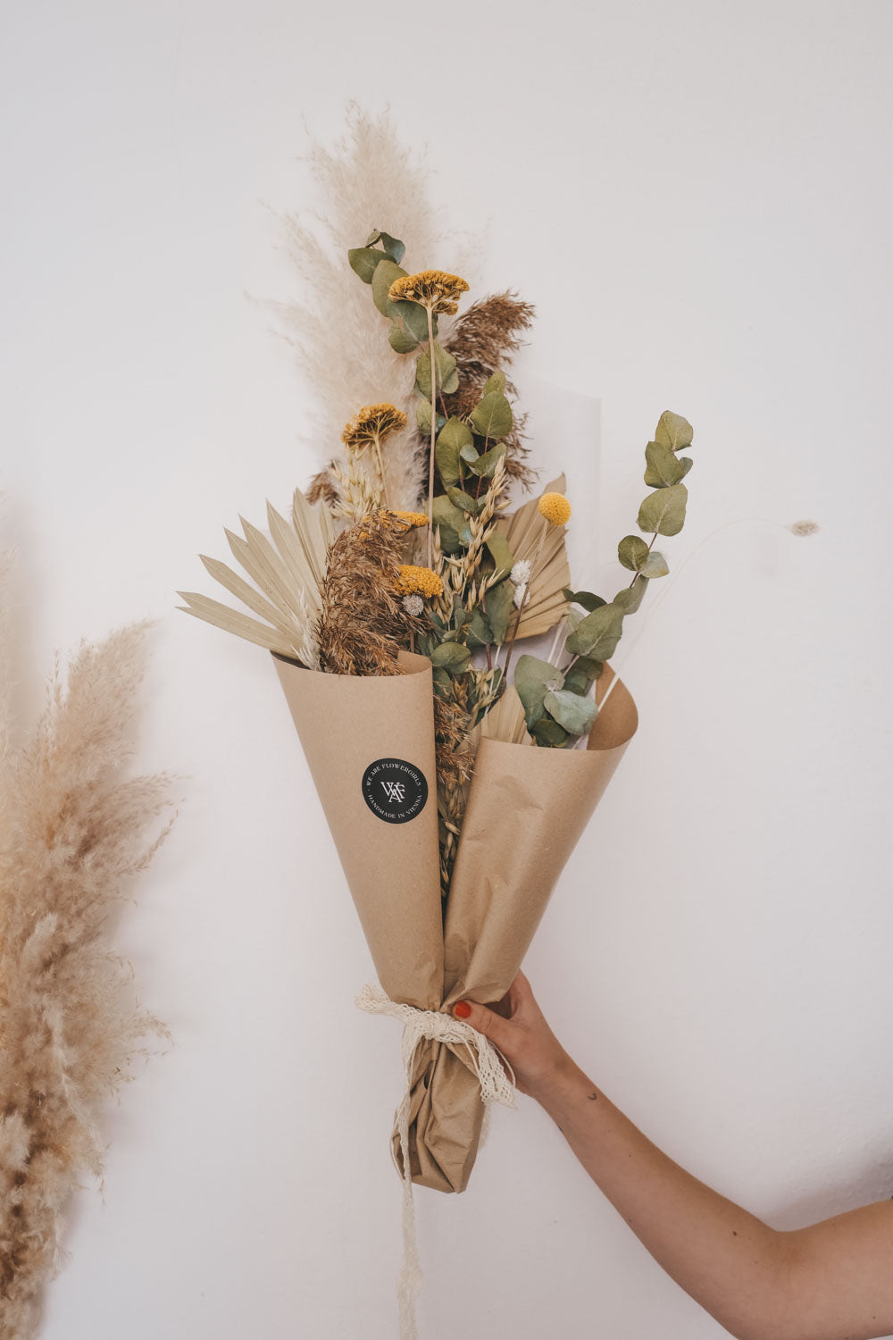 Unsere Trockenblumensträuße werden von uns aus hochwertig getrockneten und konservierten Dried Flowers gebunden und halten ein Leben lang. Sie sind die pflegeleichteste Dekoration für Zuhause und ein traumhaftes Geschenk wenn es mal einen Tick anders sein soll als ein klassischer Blumenstrauss.