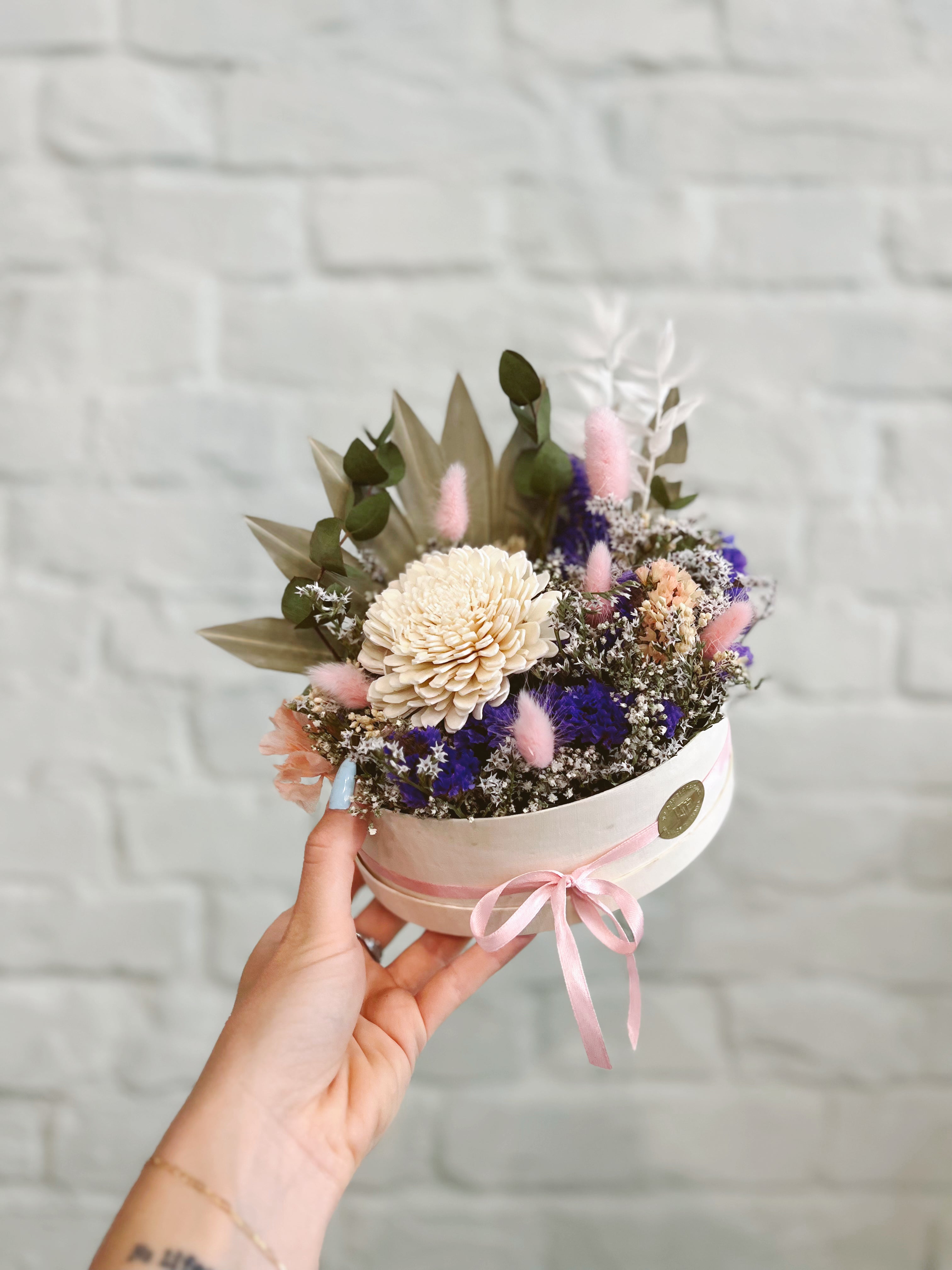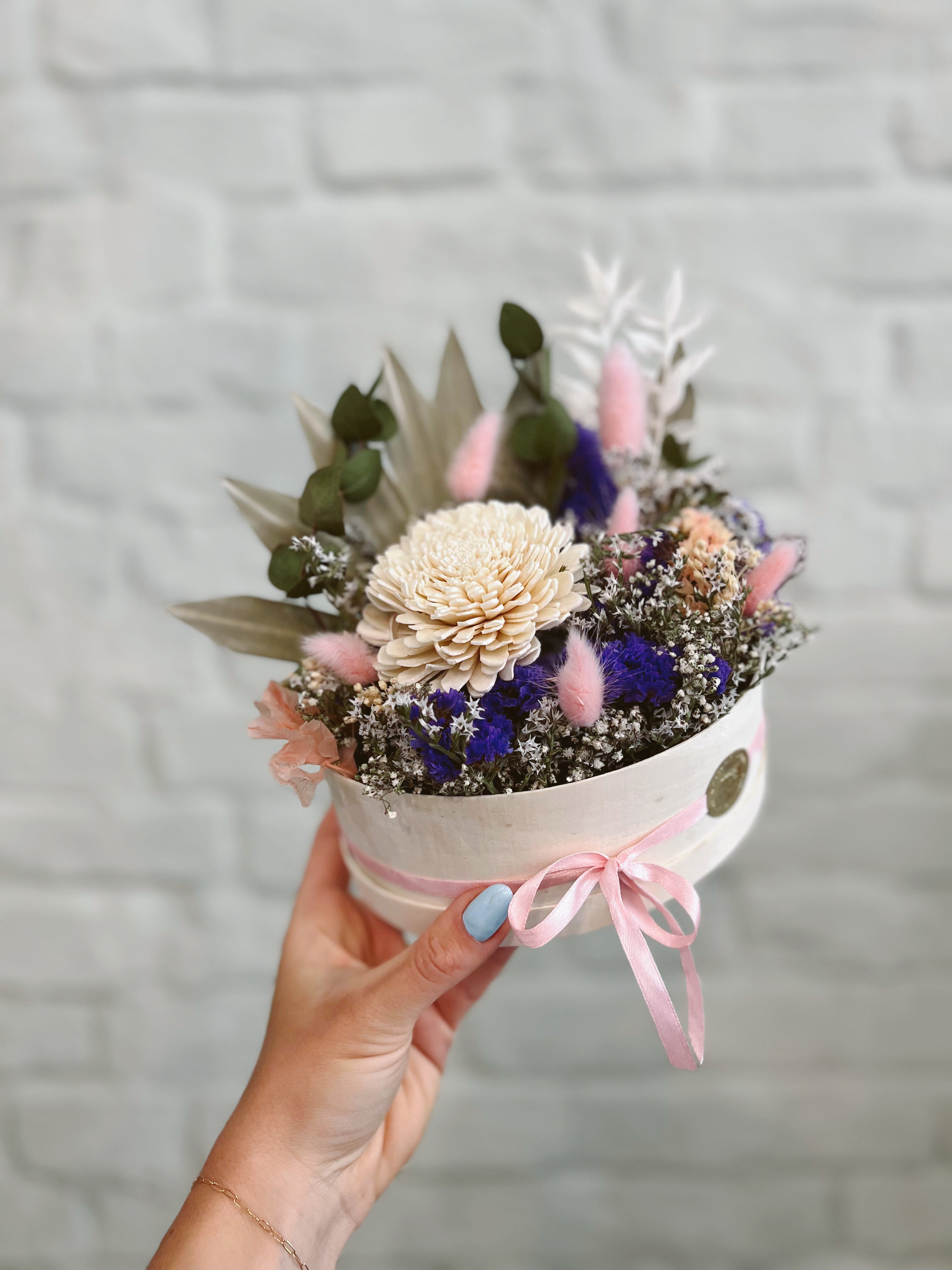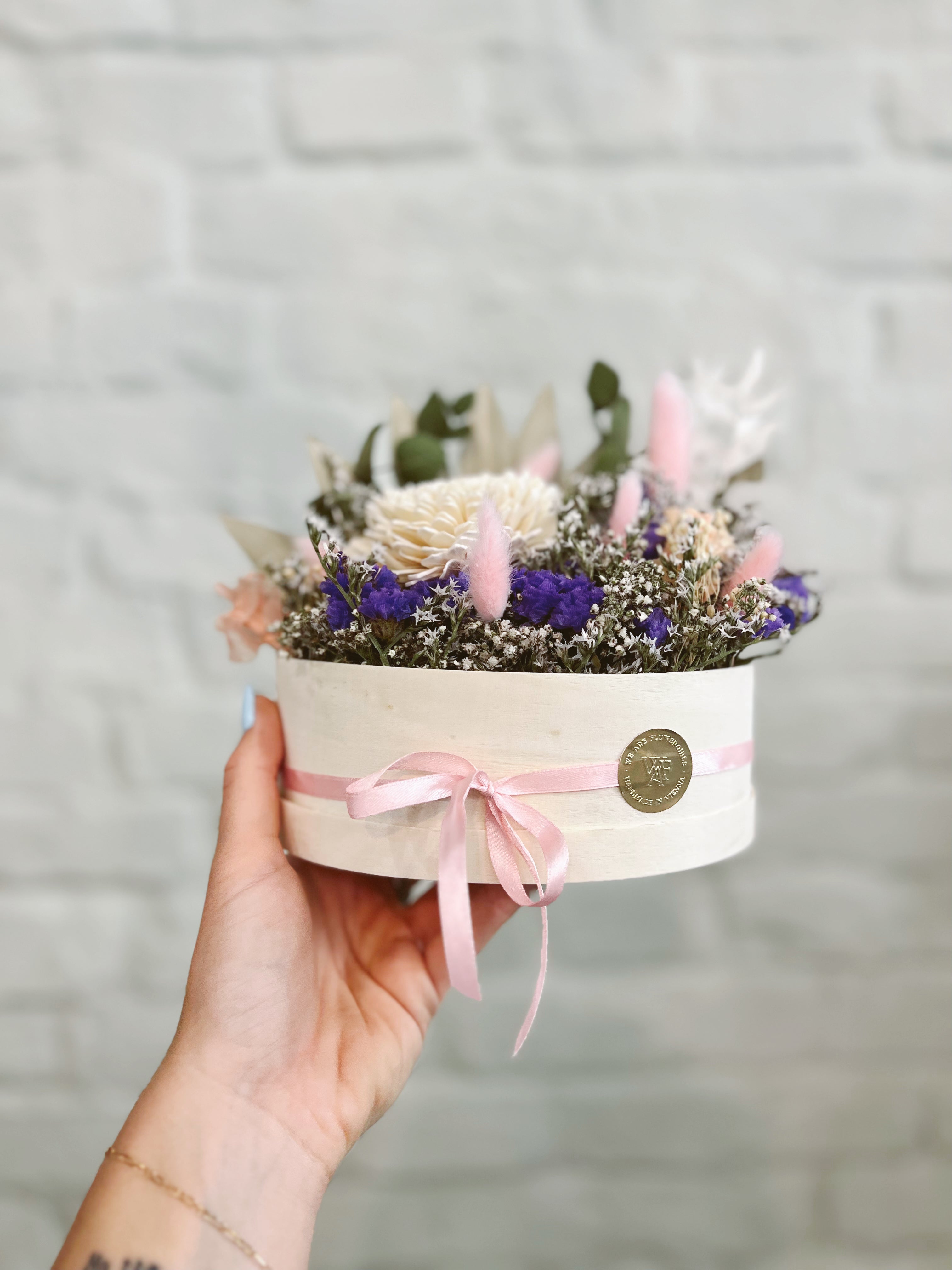 Unsere Blumenboxen werden im Wiener Flower-Atelier aus hochwertig getrockneten und konservierten Dried Flowers gefertigt und halten ein Leben lang. Sie sind die pflegeleichteste Dekoration für Zuhause und ein traumhaftes Geschenk wenn es mal einen Tick anders sein soll als ein klassischer Blumenstrauss.