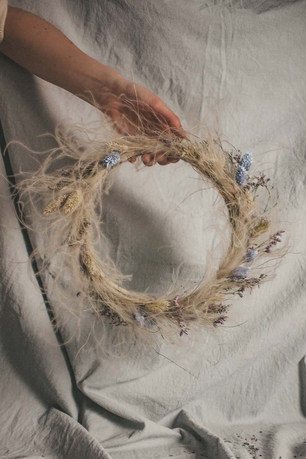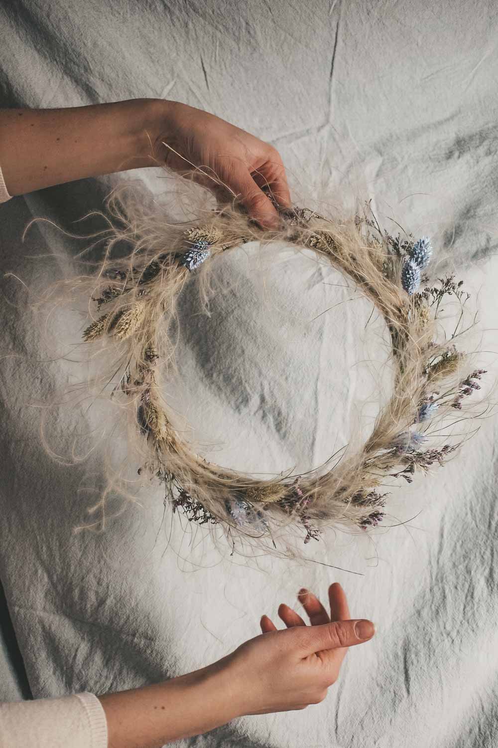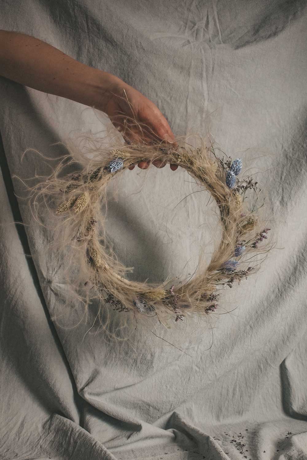 Hochwertig getrockneten und konservierten Blüten, Gräser und Blätter lassen unsere Wreaths für die Ewigkeit erblühen. Und das ganz ohne Gießen und Pflegen. Unsere Dried Flower Wreaths und Hoops werden in unserem Wiener Atelier mit viel Liebe und Zeit per Hand gefertigt. Die Designs werden wie am Foto abgebildet mit Satinbändern und Bastbändern geliefert und so kannst du die Kränze entweder an die Türe oder an die Wand als Dekoration hängen. Oder aber du lässt deinen Coffee-Table erblühen und verwandelst deinen Dried Flower Wreath in einen Tischkranz.