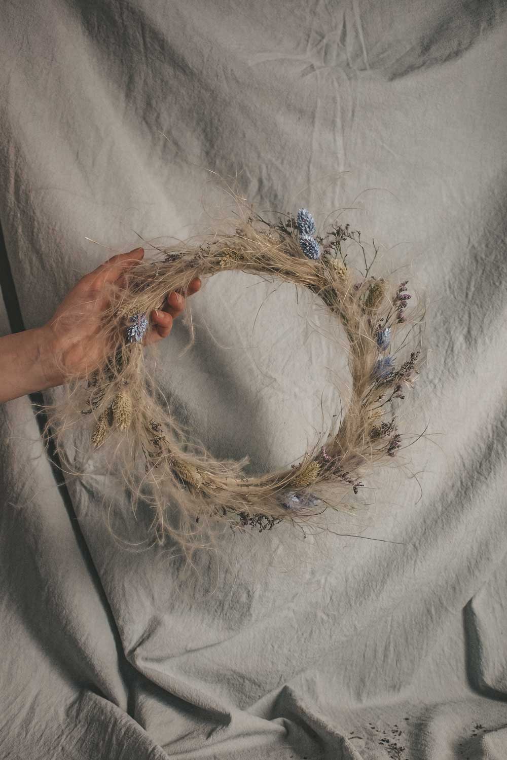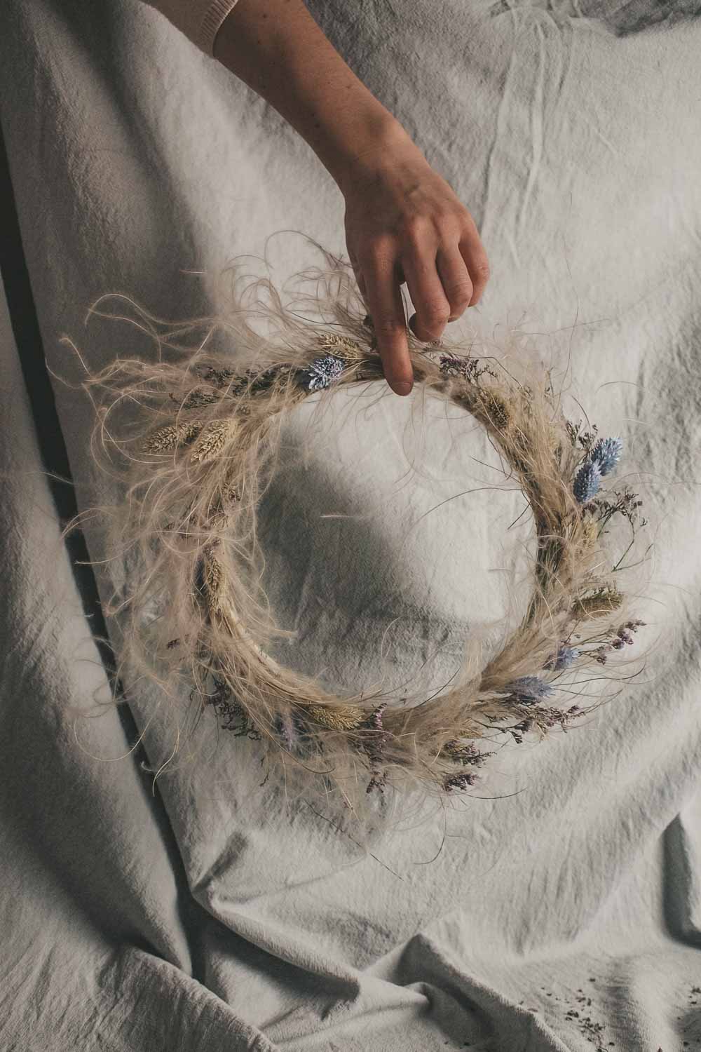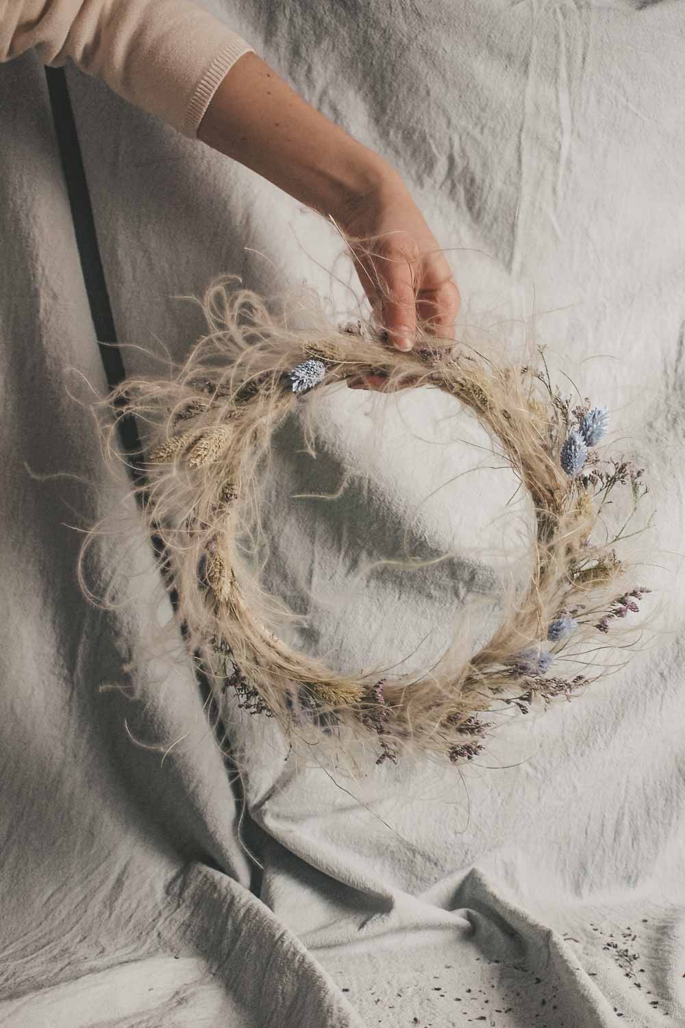 Hochwertig getrockneten und konservierten Blüten, Gräser und Blätter lassen unsere Wreaths für die Ewigkeit erblühen. Und das ganz ohne Gießen und Pflegen. Unsere Dried Flower Wreaths und Hoops werden in unserem Wiener Atelier mit viel Liebe und Zeit per Hand gefertigt. Die Designs werden wie am Foto abgebildet mit Satinbändern und Bastbändern geliefert und so kannst du die Kränze entweder an die Türe oder an die Wand als Dekoration hängen. Oder aber du lässt deinen Coffee-Table erblühen und verwandelst deinen Dried Flower Wreath in einen Tischkranz.