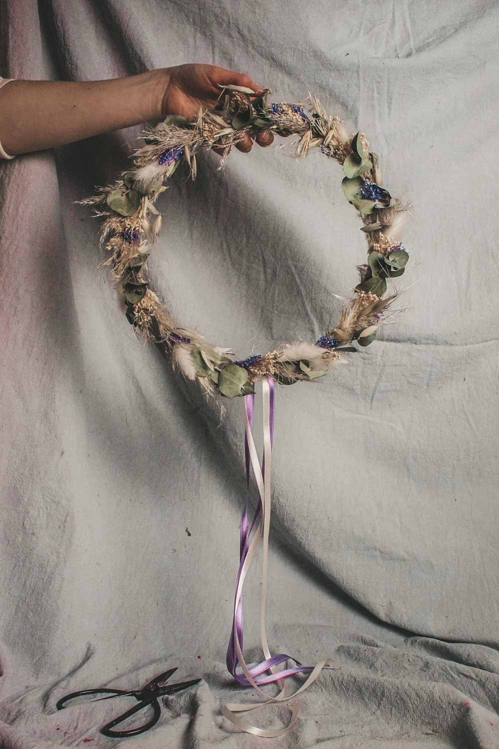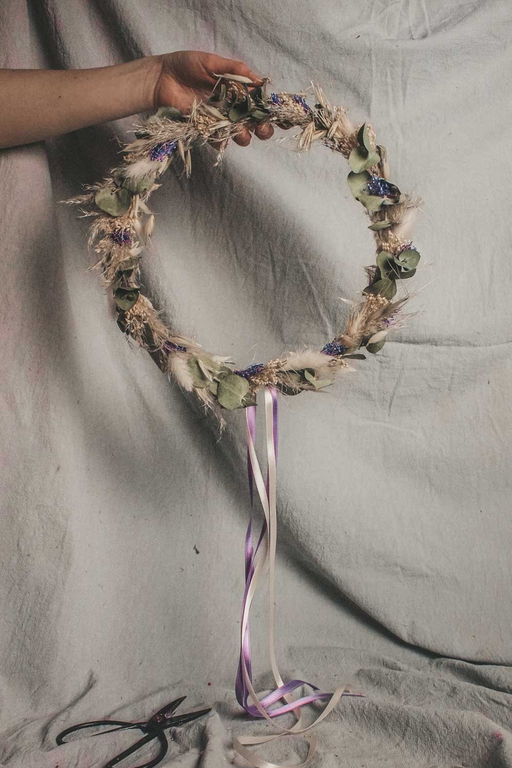 Hochwertig getrockneten und konservierten Blüten, Gräser und Blätter lassen unsere Wreaths für die Ewigkeit erblühen. Und das ganz ohne Gießen und Pflegen. Unsere Dried Flower Wreaths und Hoops werden in unserem Wiener Atelier mit viel Liebe und Zeit per Hand gefertigt. Die Designs werden wie am Foto abgebildet mit Satinbändern und Bastbändern geliefert und so kannst du die Kränze entweder an die Türe oder an die Wand als Dekoration hängen. Oder aber du lässt deinen Coffee-Table erblühen und verwandelst deinen Dried Flower Wreath in einen Tischkranz.