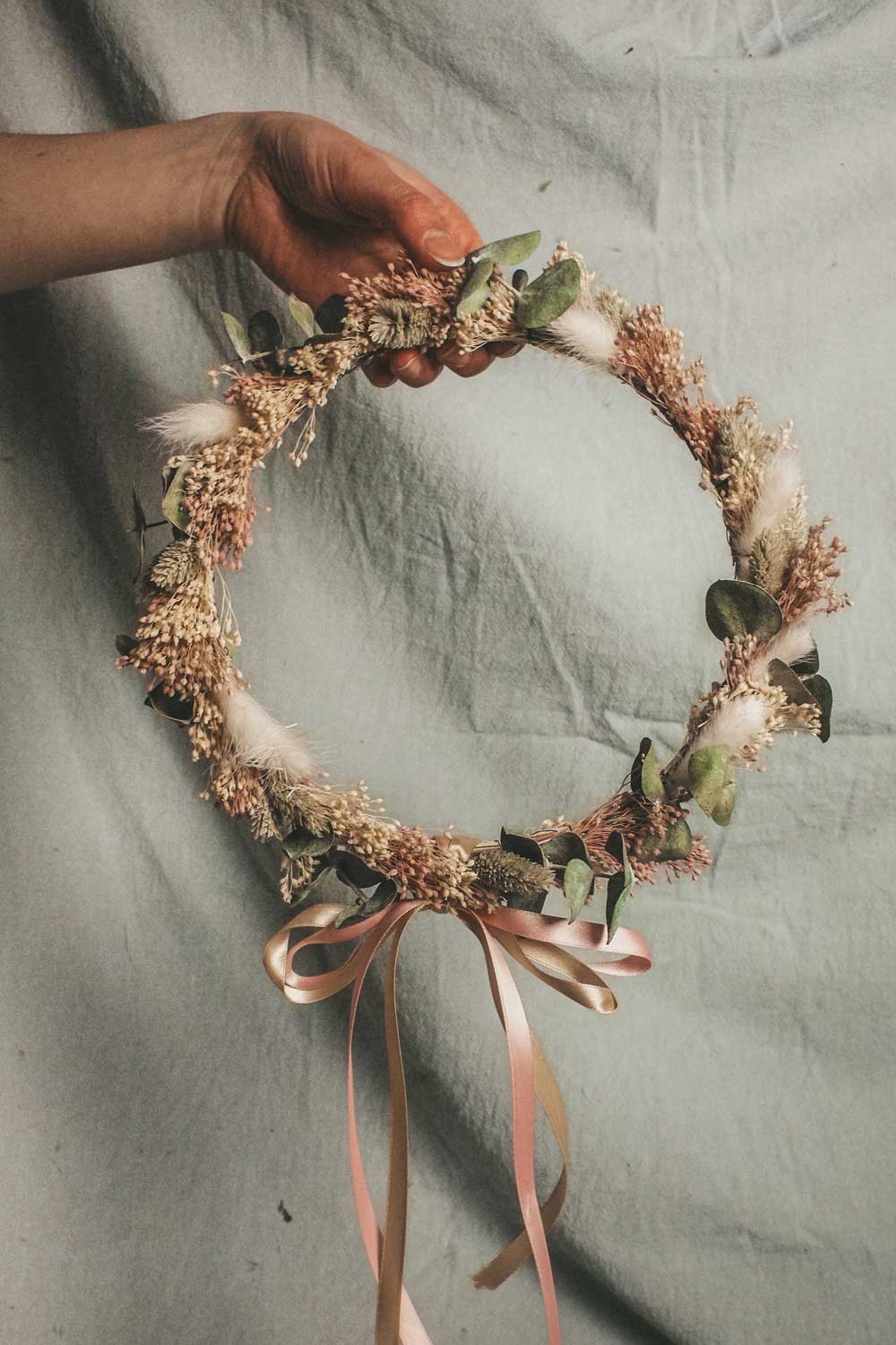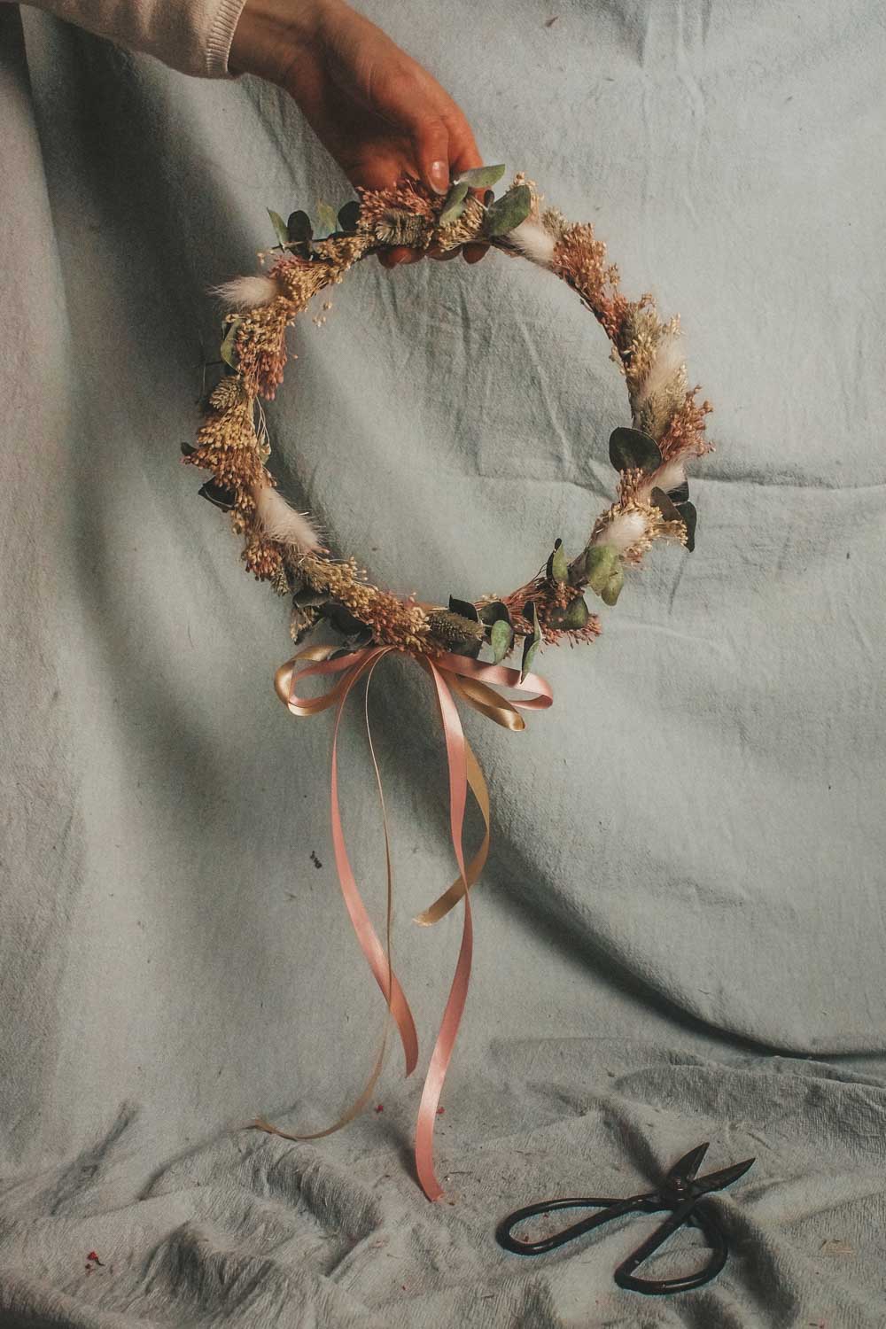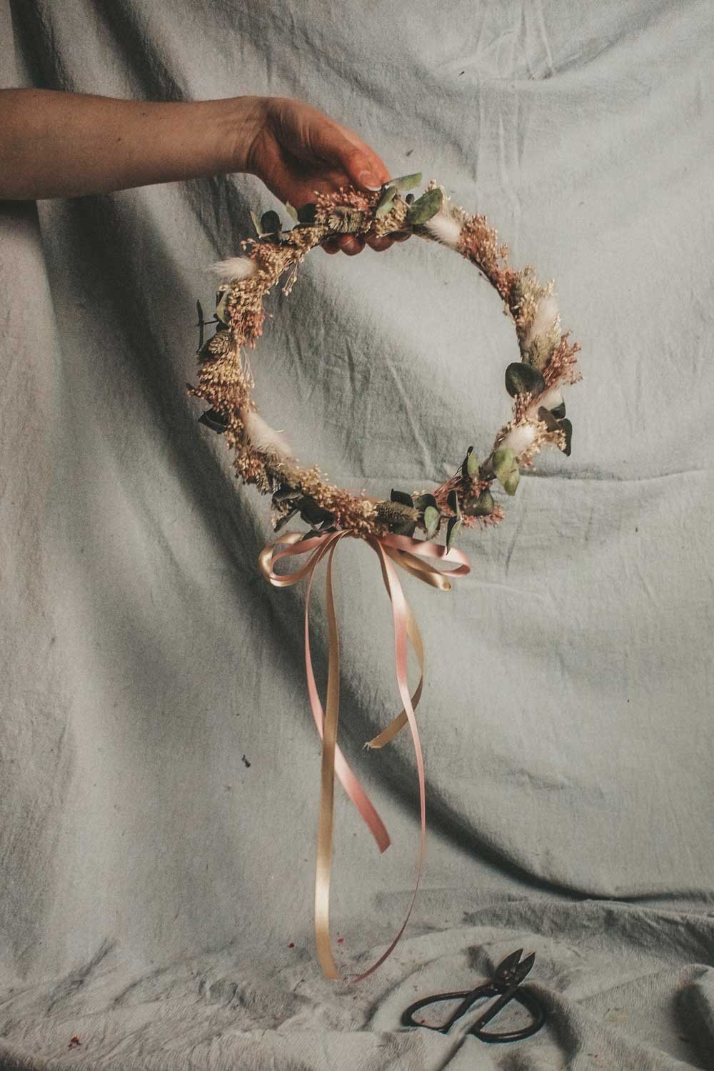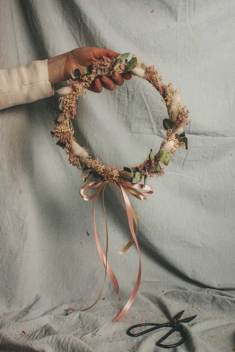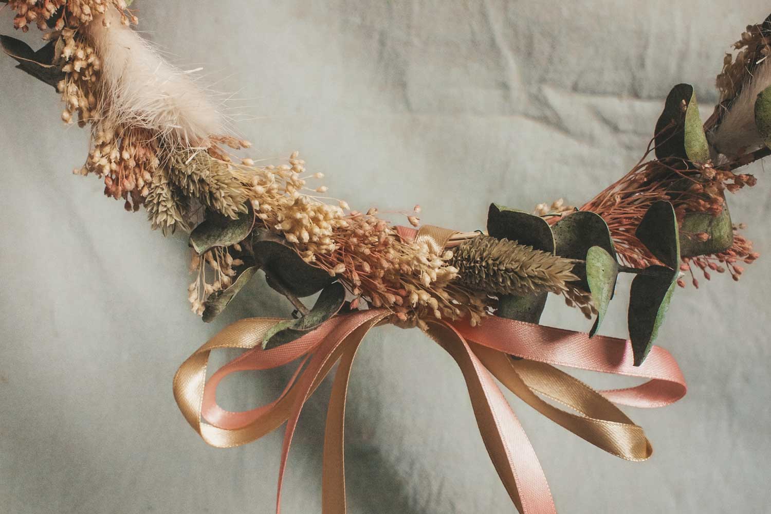 Hochwertig getrockneten und konservierten Blüten, Gräser und Blätter lassen unsere Wreaths für die Ewigkeit erblühen. Und das ganz ohne Gießen und Pflegen. Unsere Dried Flower Wreaths und Hoops werden in unserem Wiener Atelier mit viel Liebe und Zeit per Hand gefertigt. Die Designs werden wie am Foto abgebildet mit Satinbändern und Bastbändern geliefert und so kannst du die Kränze entweder an die Türe oder an die Wand als Dekoration hängen. Oder aber du lässt deinen Coffee-Table erblühen und verwandelst deinen Dried Flower Wreath in einen Tischkranz.