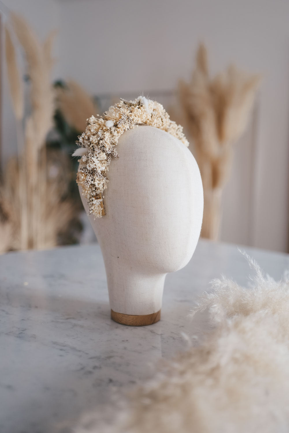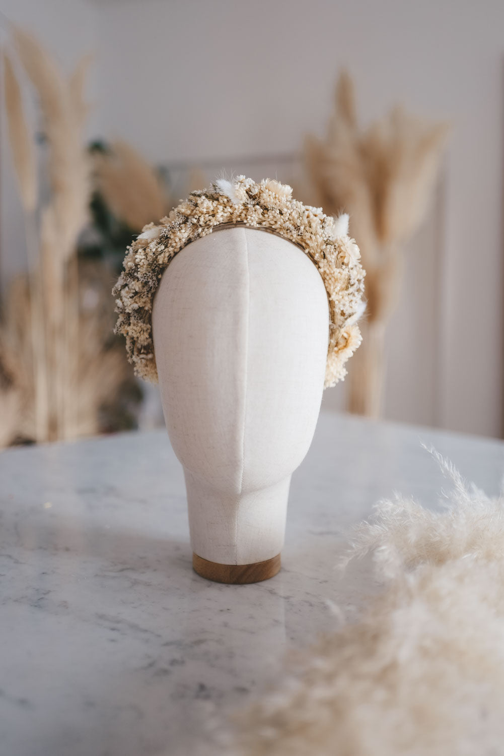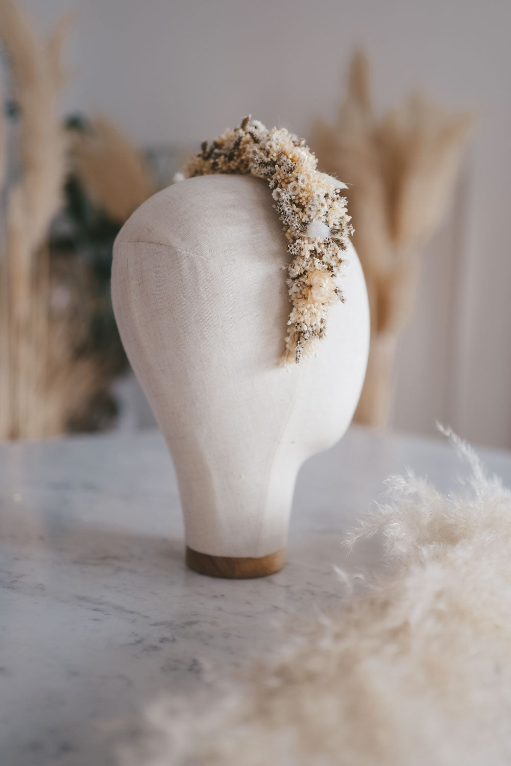 Anja ist das perfekte bohemian bridale Headpiece für den romantischen Hochzeits-Auftritt. Handgemacht in Wien aus hochwertig getrockneten und konservierten Blüten und Gräser. So hält die Krone ein Leben lang. Blühender Luxus der nie verwelkt.