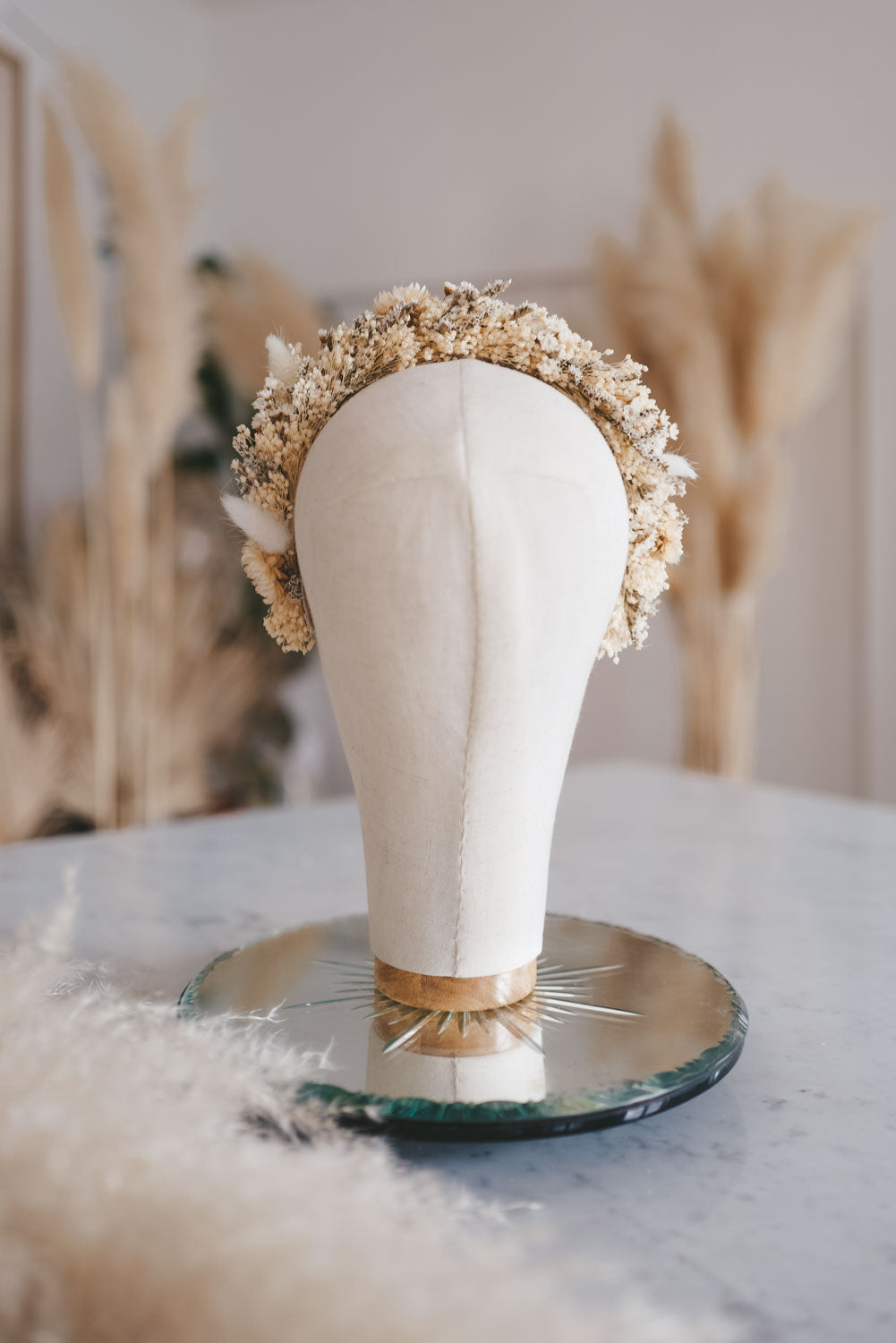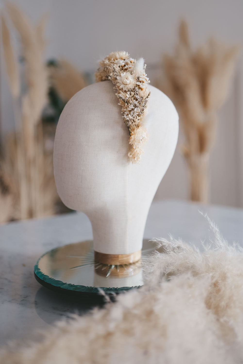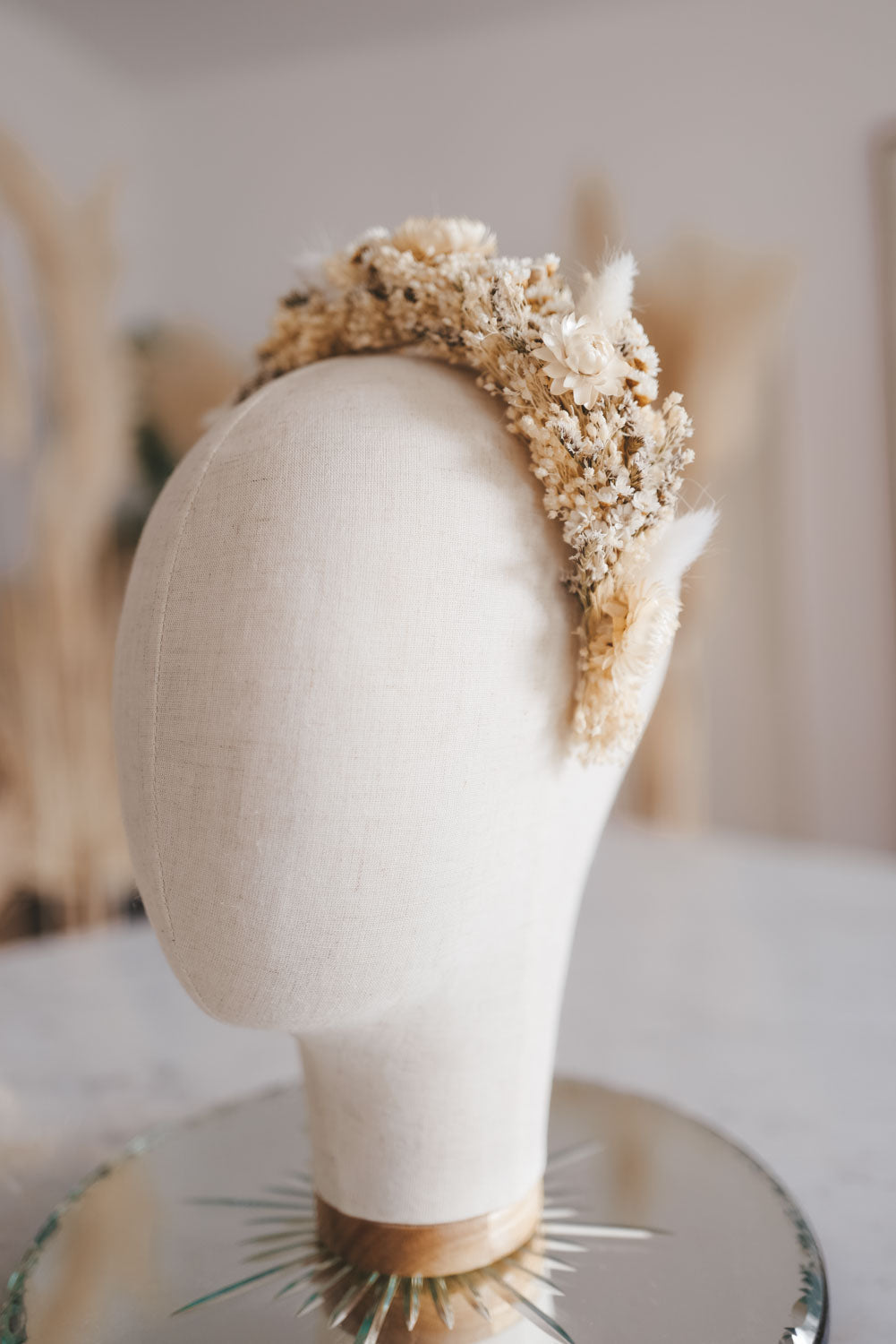 Anja ist das perfekte bohemian bridale Headpiece für den romantischen Hochzeits-Auftritt. Handgemacht in Wien aus hochwertig getrockneten und konservierten Blüten und Gräser. So hält die Krone ein Leben lang. Blühender Luxus der nie verwelkt.