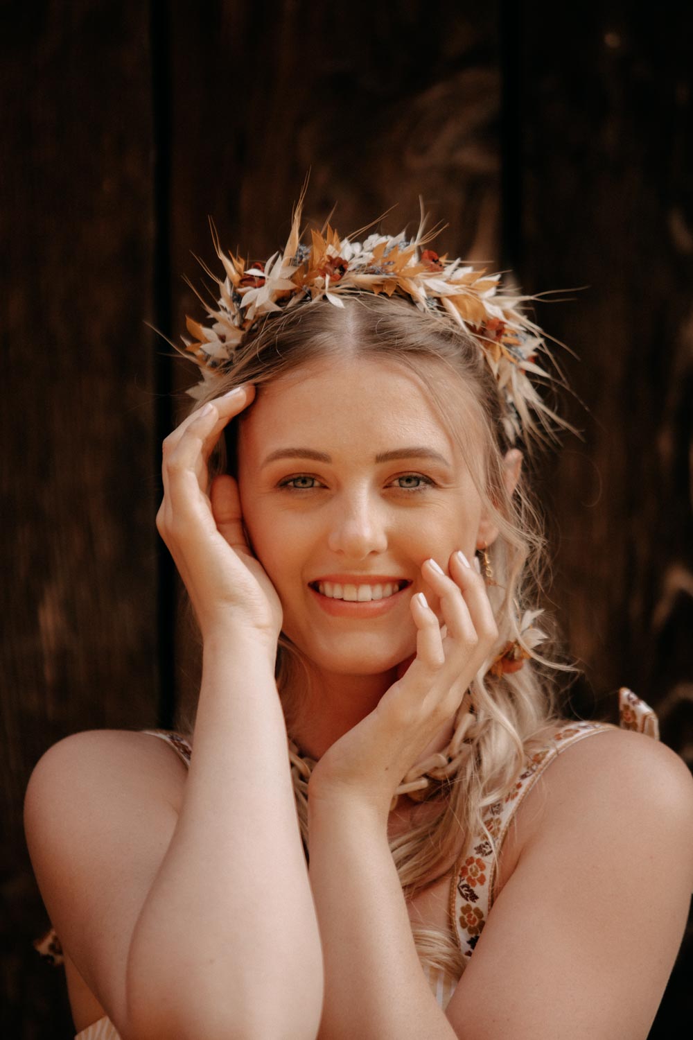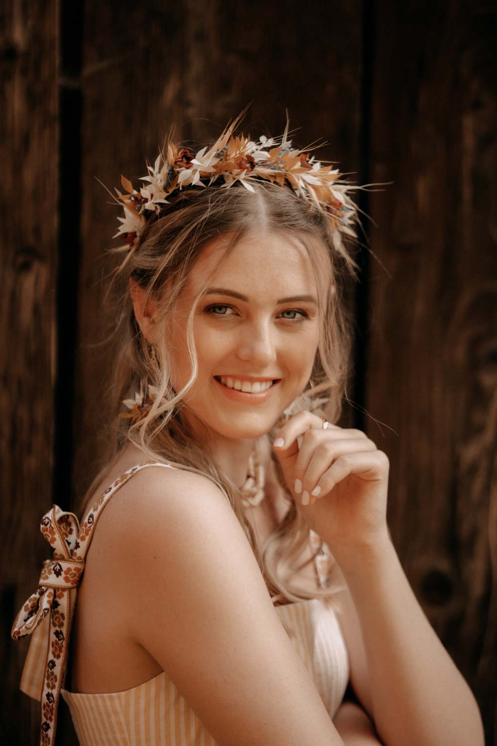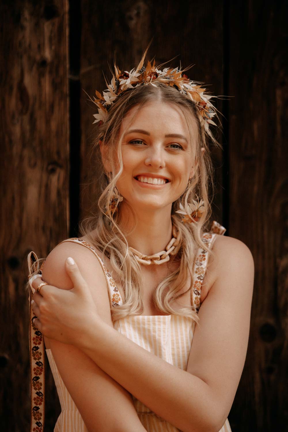 Anna ist Teil unserer Bohemian Trachten Collection und die perfekte Flowercrown für ausgelassene Sommernächte. Sie passt wunderbar zum Dirndl und rundet jeden Trachten-Look ab. Sie ist aber auch das ideale Statement-Piece für alle Bohemian Girls und der Hingucker am Oktoberfest. Handgemacht in Wien aus hochwertig getrockneten und konservierten Blüten und Gräser. So hält die Krone ein Leben lang. Blühender Luxus der nie verwelkt.