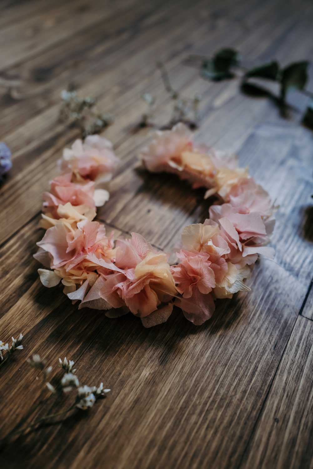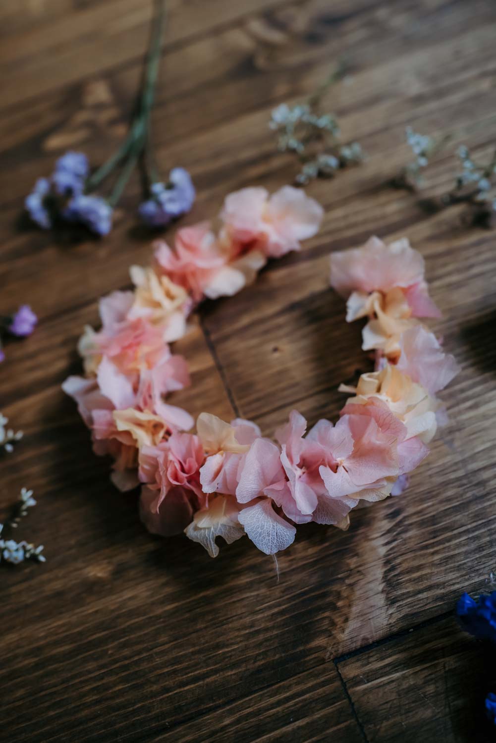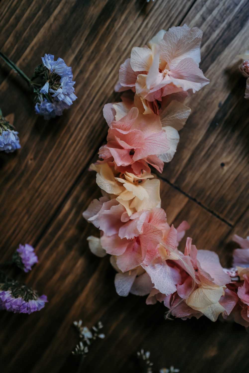 Flowercrown Aurora ist eine romantische Blumenkrone für die Ewigkeit die niemals verblüht. Handgemacht in Wien aus konservierten Hortensien im Wiener Atelier von We Are Flowergirls.