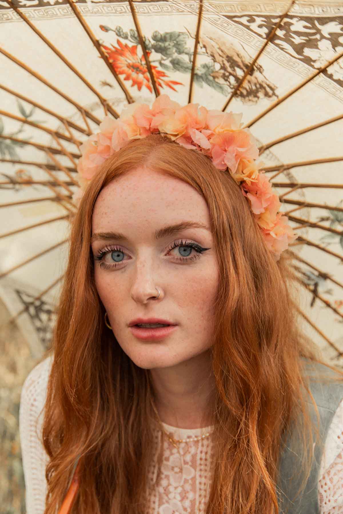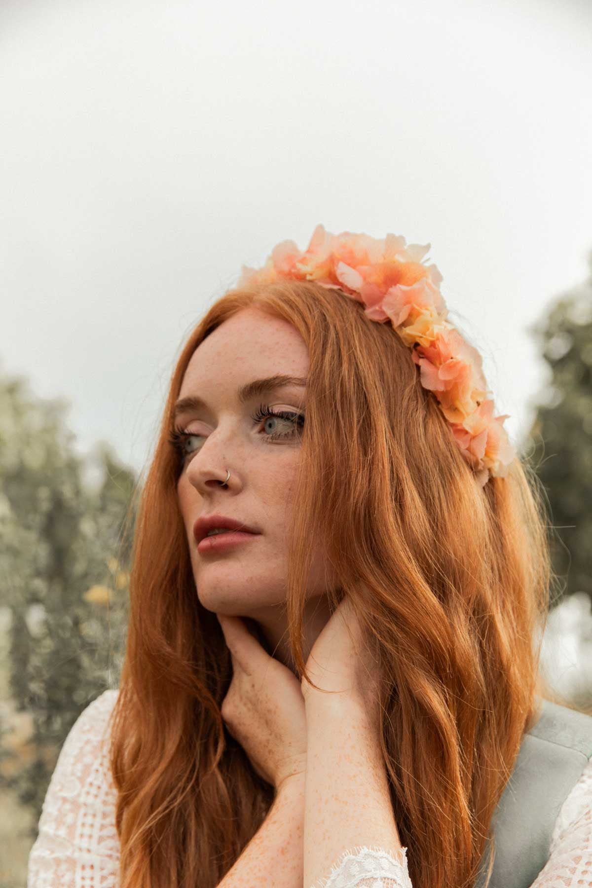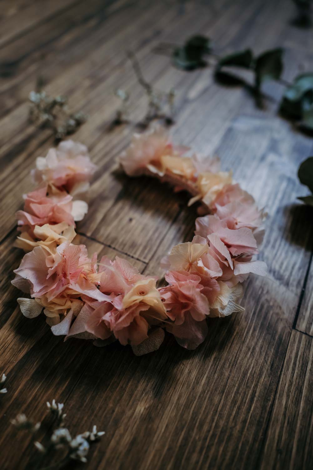 Flowercrown Aurora ist eine romantische Blumenkrone für die Ewigkeit die niemals verblüht. Handgemacht in Wien aus konservierten Hortensien im Wiener Atelier von We Are Flowergirls.
