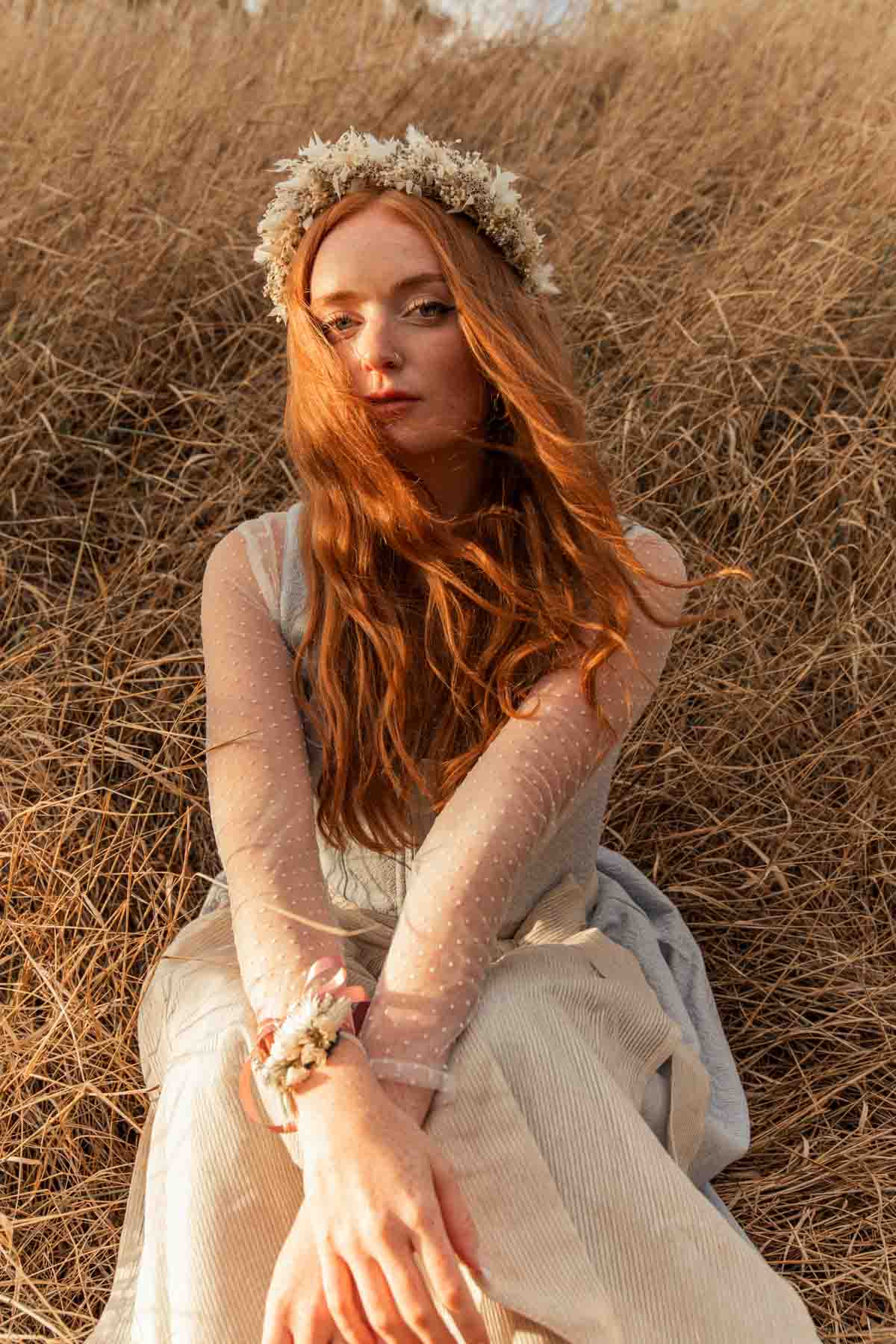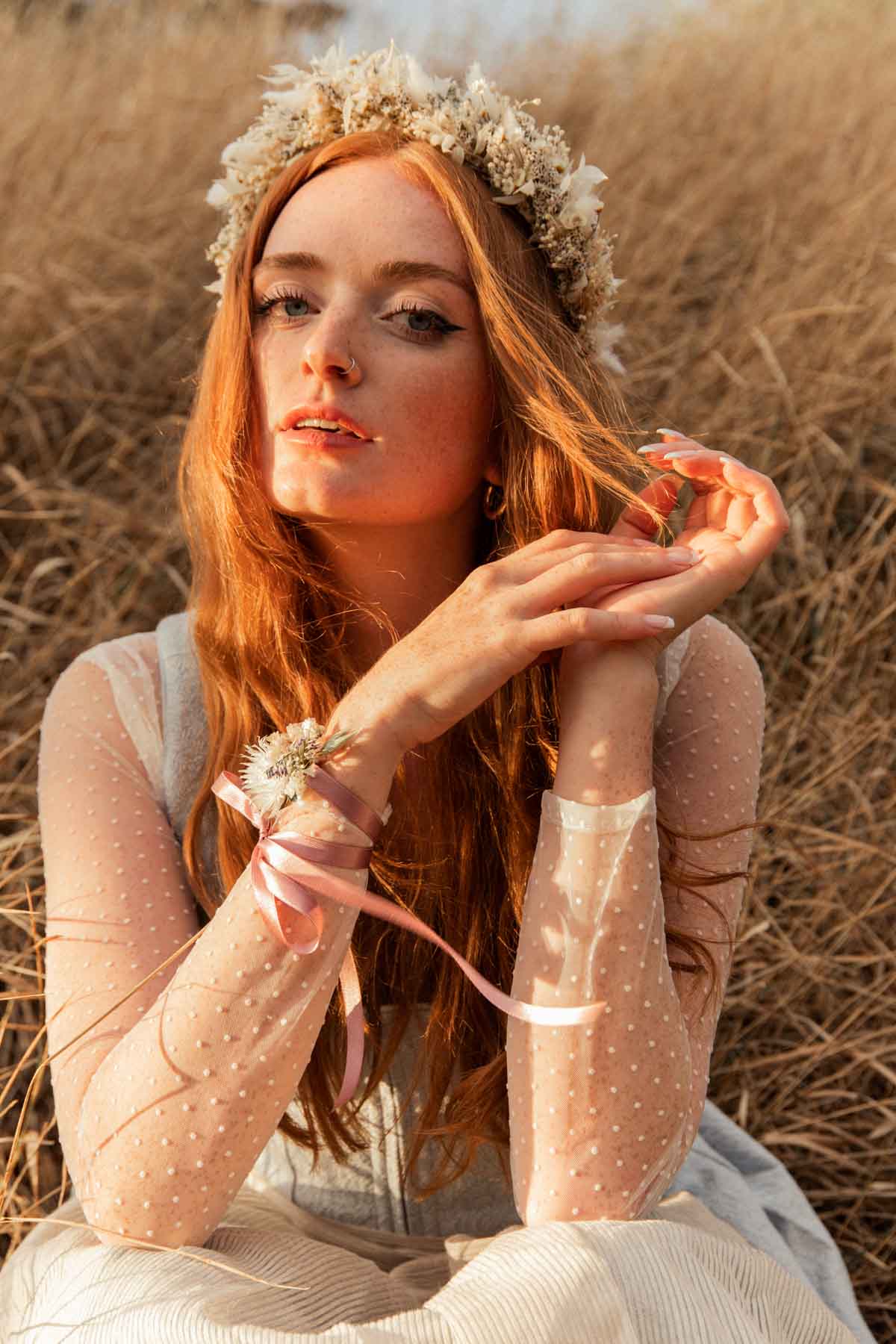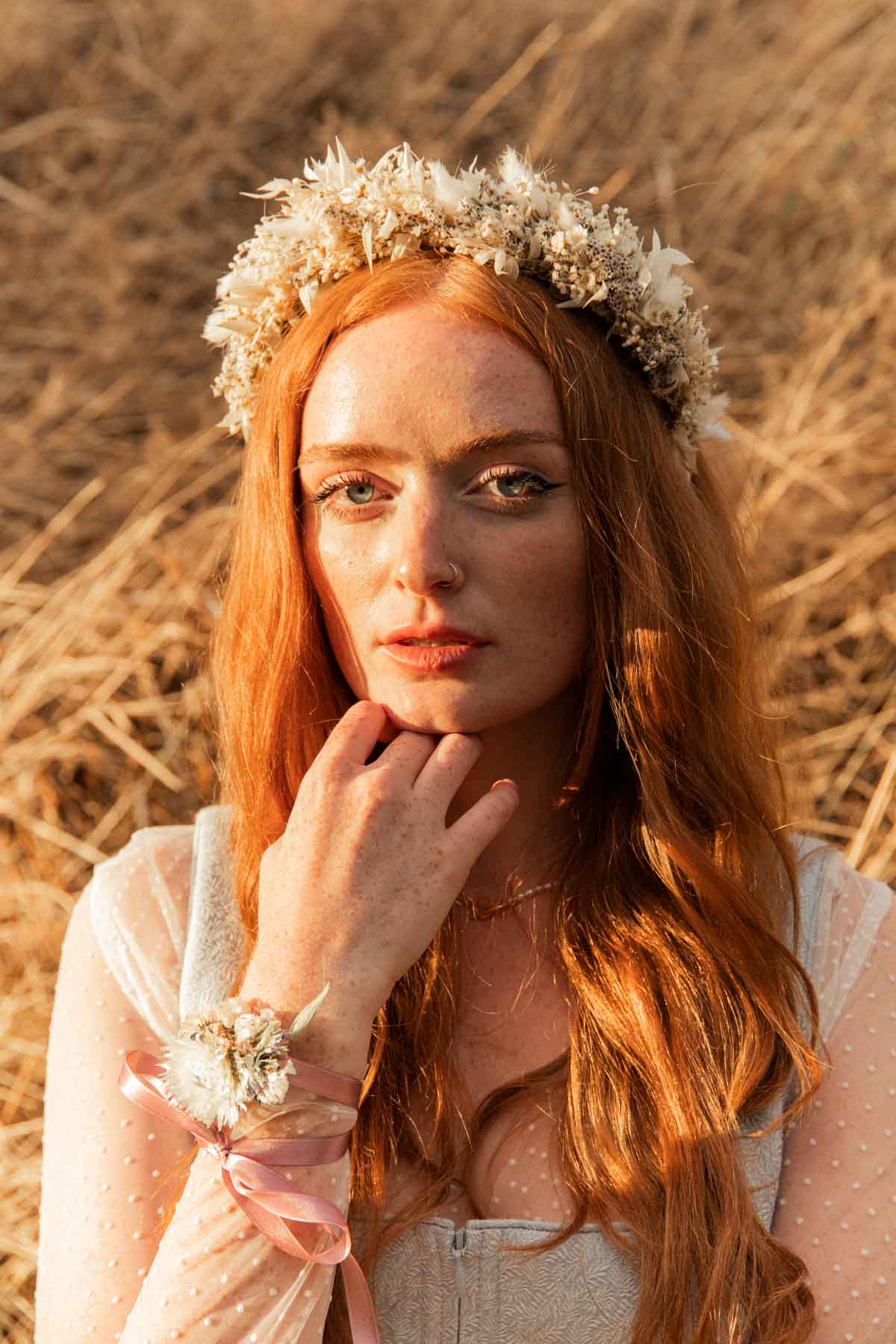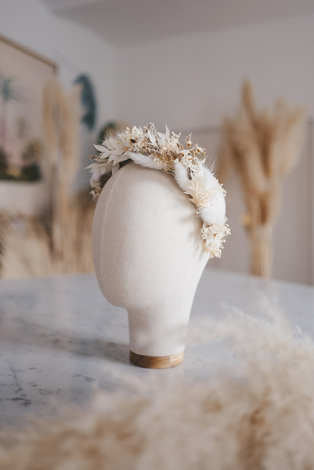 Flowercrown Carine ist eine romantische Blumenkrone für die Ewigkeit die niemals verblüht. Handgemacht in Wien aus preserved Flowers & Trockenblumen im Wiener Atelier von We Are Flowergirls.
