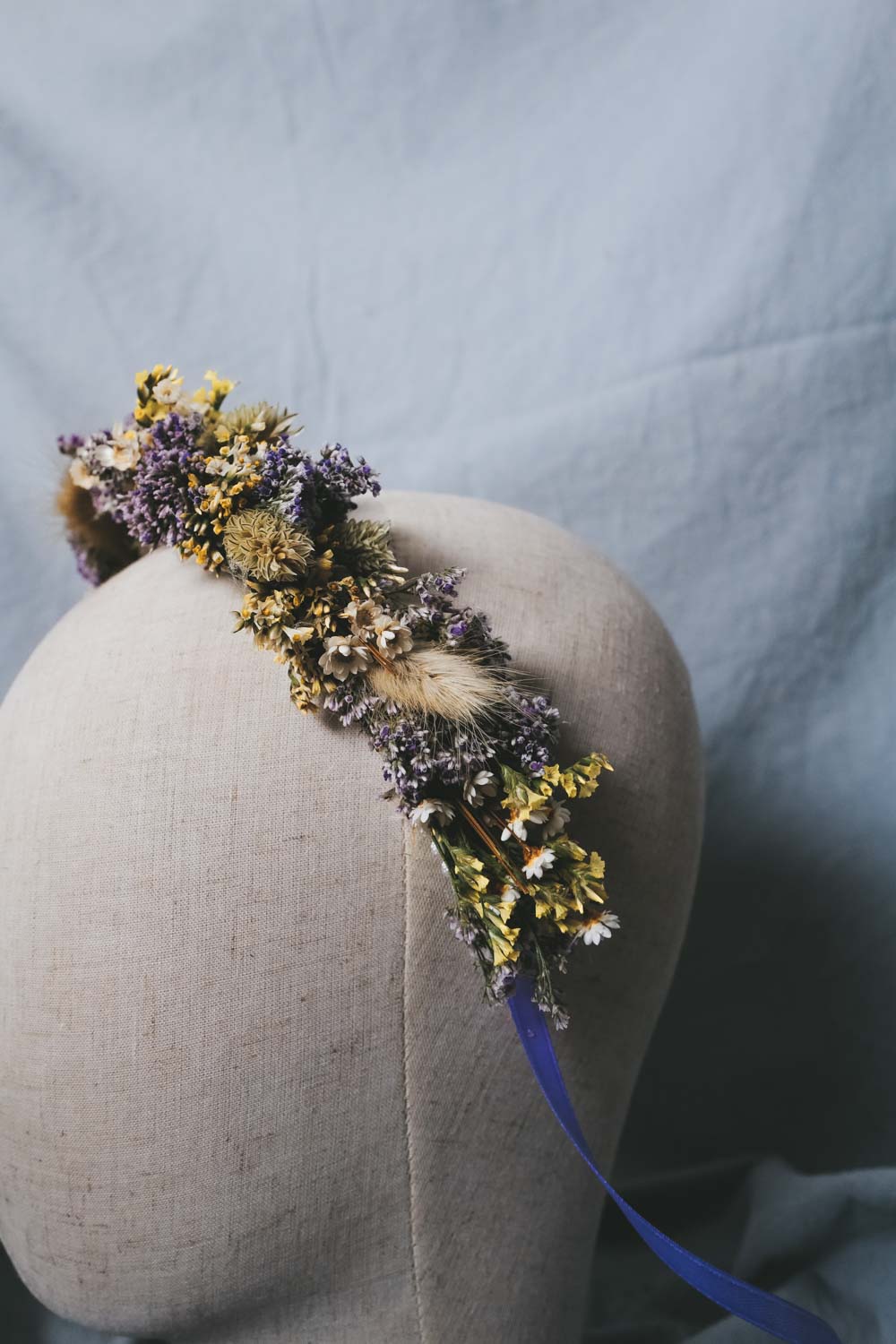 Alisa ist das perfekte Statement-Piece für den romantischen Midsommar-Auftritt. Handgemacht in Wien aus hochwertig getrockneten und konservierten Blüten und Gräser. So hält die Krone ein Leben lang. Blühender Luxus der nie verwelkt.