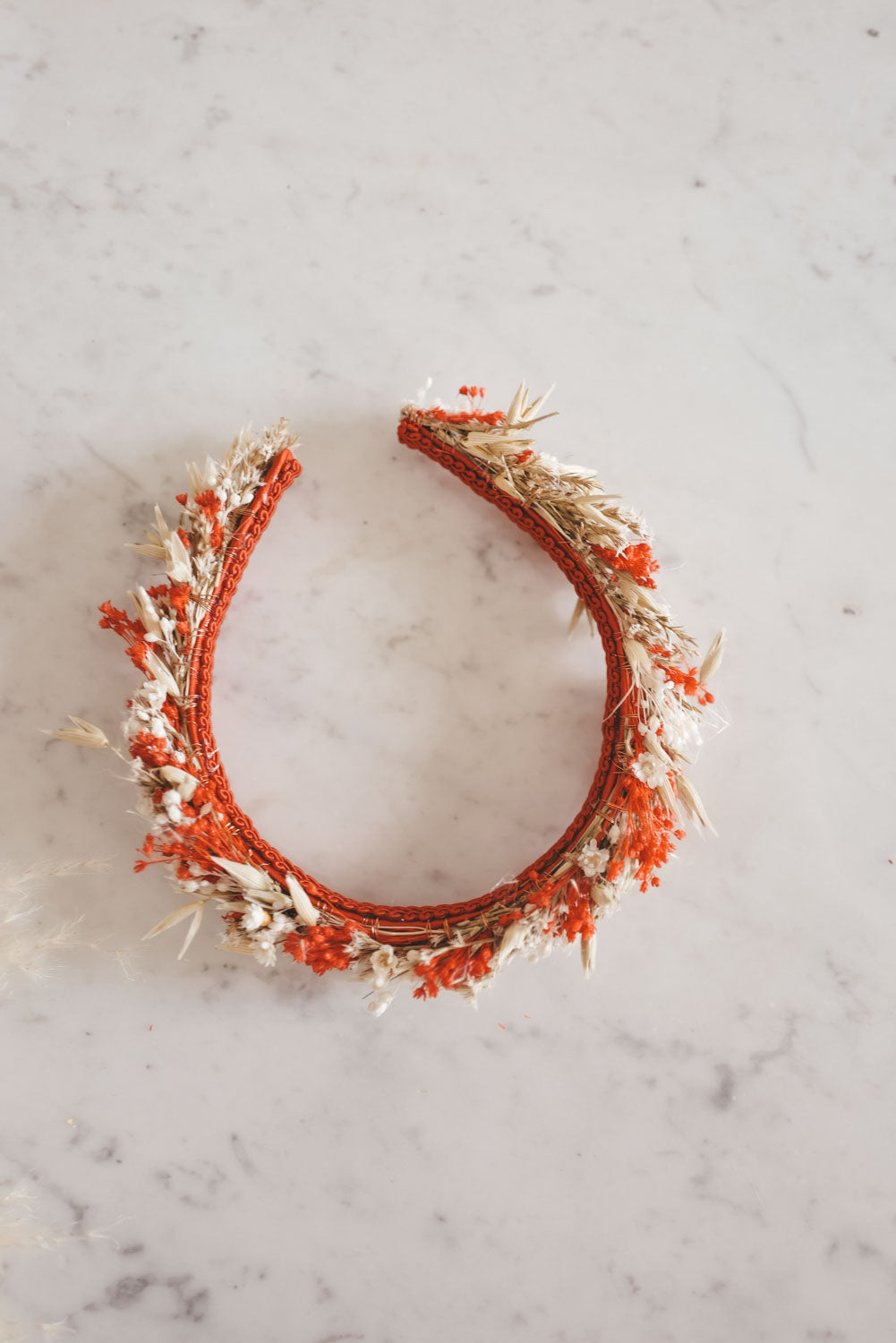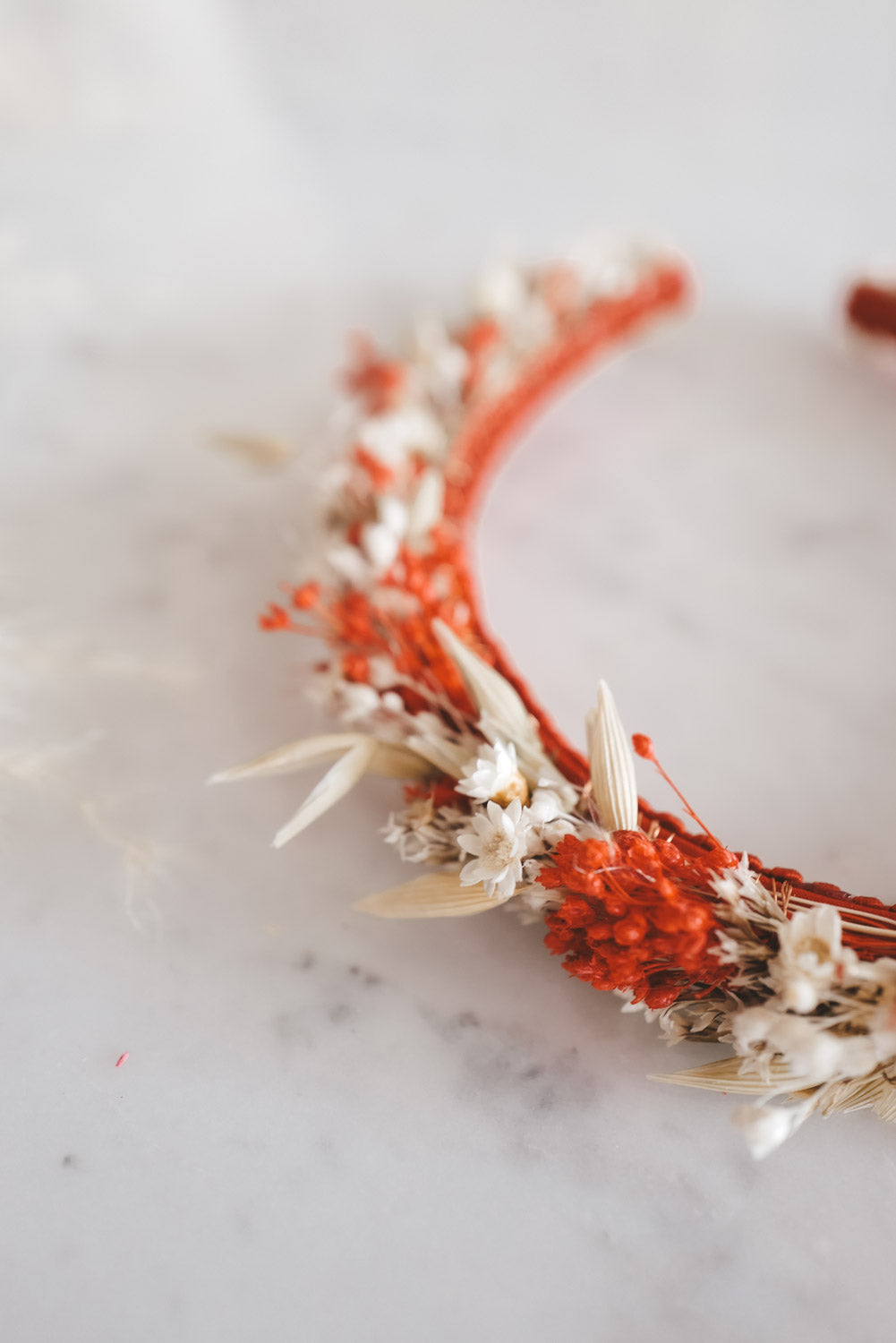 Marion ist das perfekte Statement-Piece für den schimmernden Midsommar-Auftritt. Handgemacht in Wien aus hochwertig getrockneten und konservierten Blüten und Gräser. So hält die Krone ein Leben lang. Blühender Luxus der nie verwelkt.