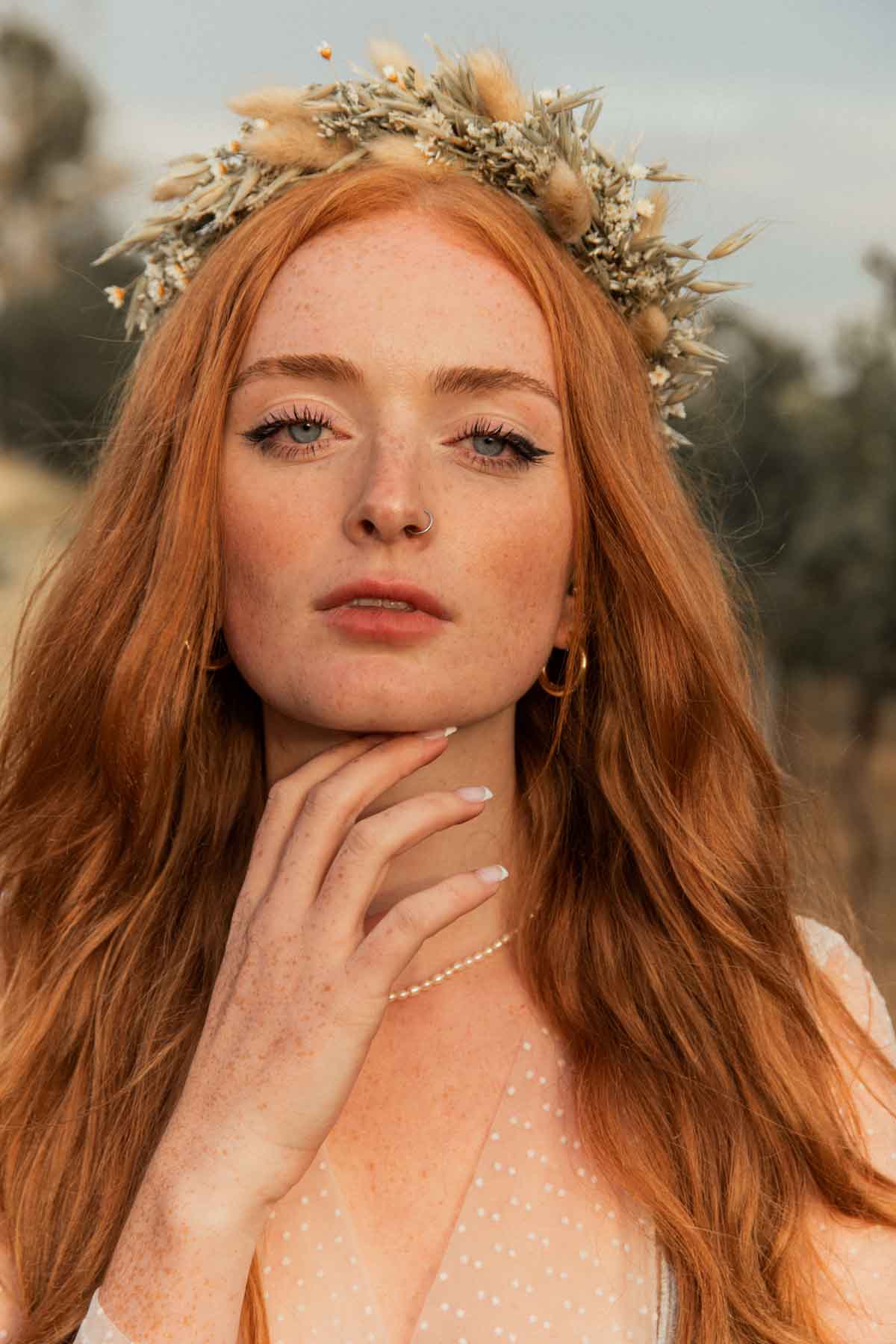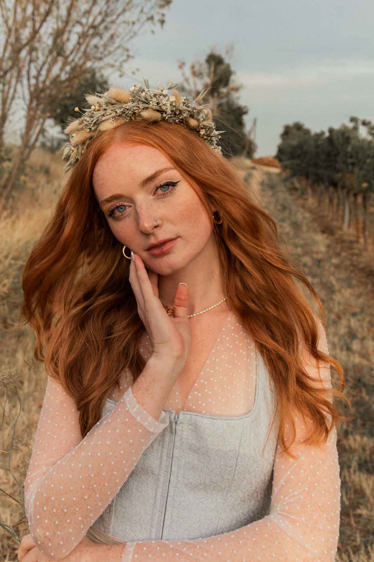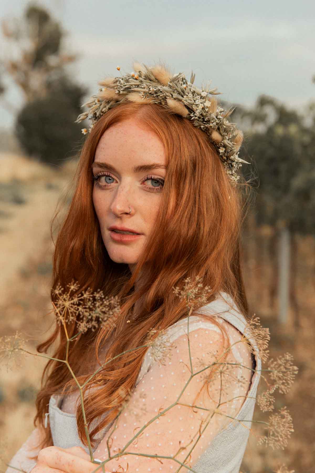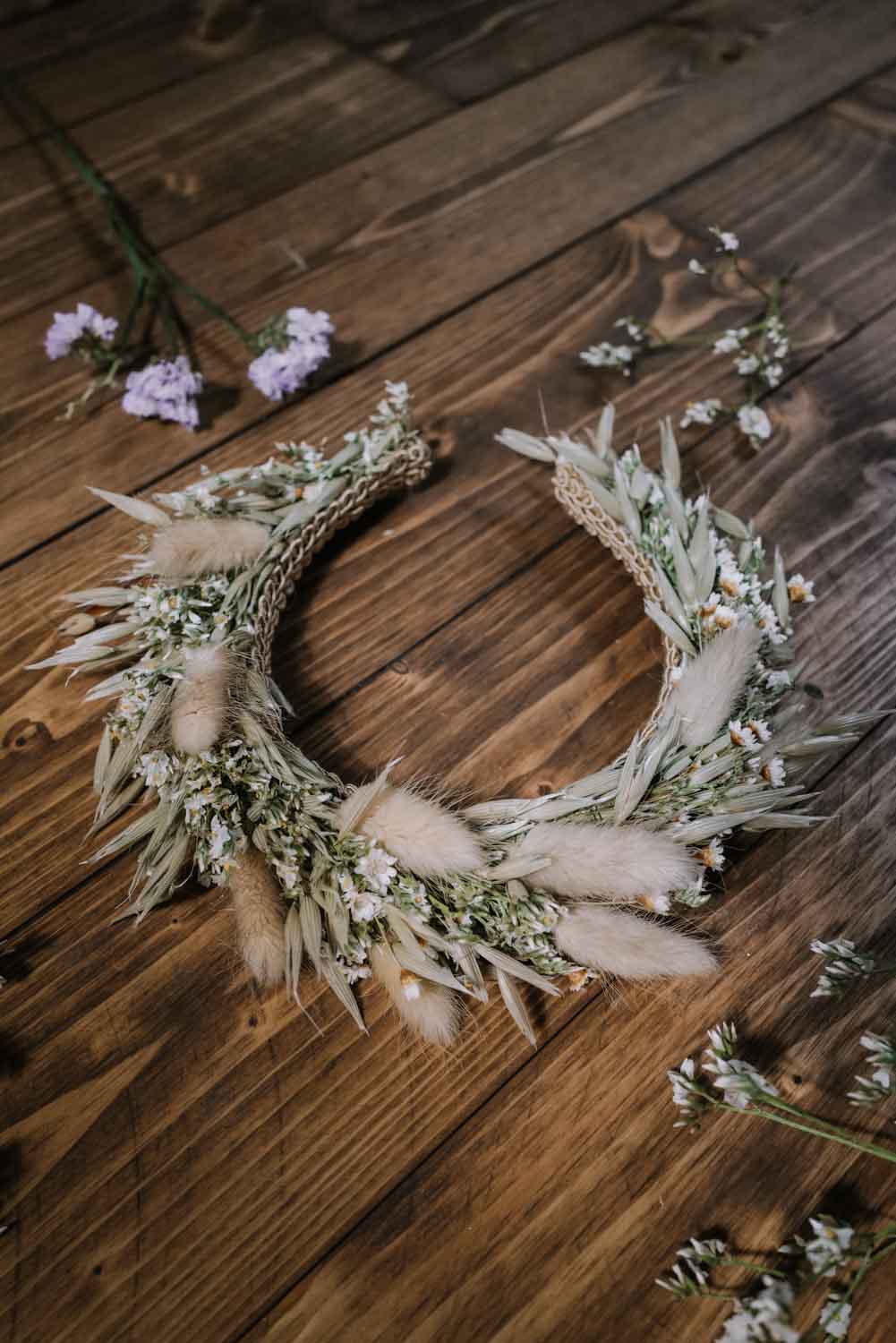 Flowercrown Nicole ist eine romantische Blumenkrone für die Ewigkeit die niemals verblüht. Handgemacht in Wien aus preserved Flowers & Trockenblumen im Wiener Atelier von We Are Flowergirls.