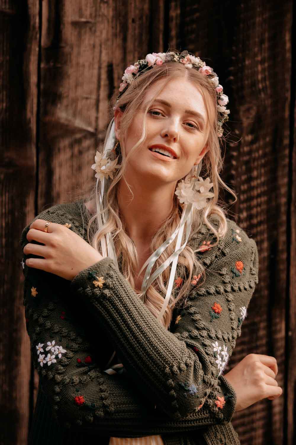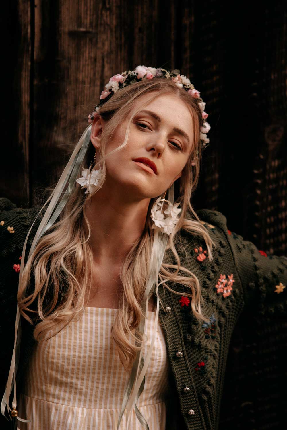 Romy Flower Earrings sind Teil unserer Bohemian Trachten Collection und sind der perfekte Schmuck für ausgelassene Sommernächte. Sie passen wunderbar zum Dirndl und runden jeden Trachten-Look ab. Sie sind aber auch das ideale Statement-Piece für alle Bohemian Girls und der Hingucker am Oktoberfest. Sie werden in unserem Wiener Atelier aus hochwertigen Dried Flowers und Vintage Seidenblumen handgemacht und halten ein Leben lang.