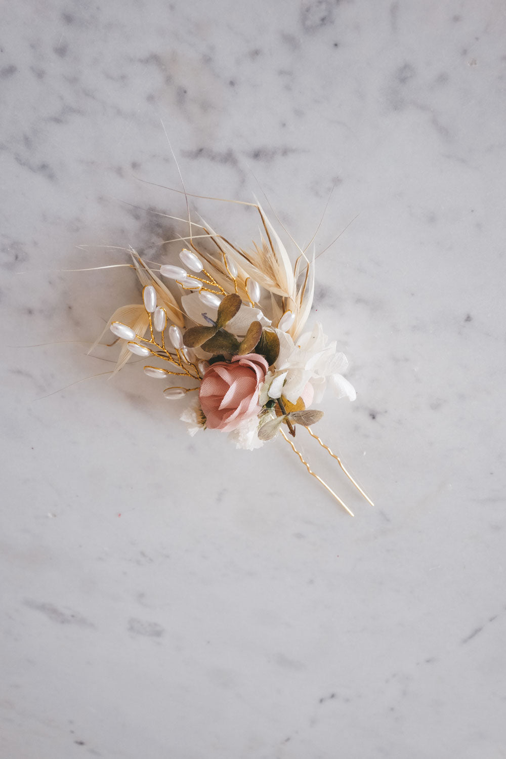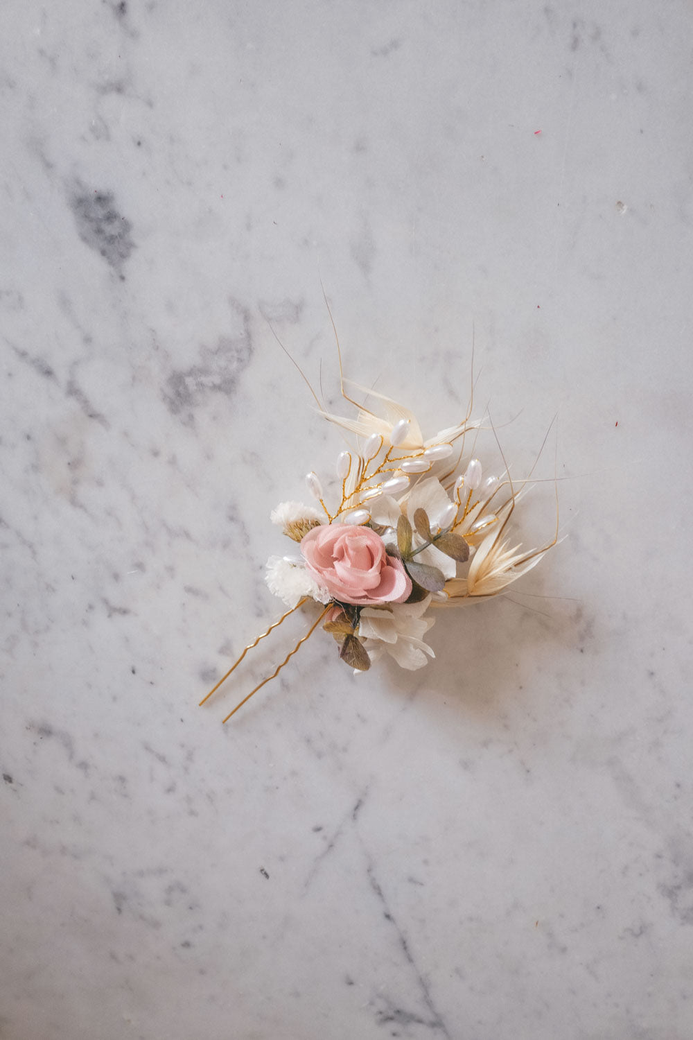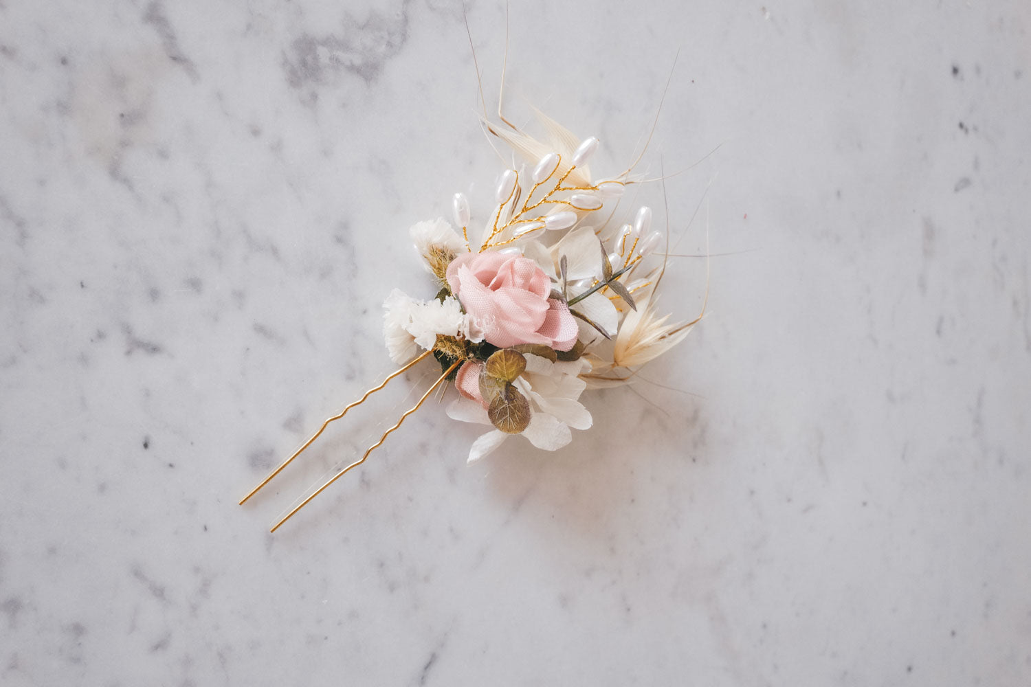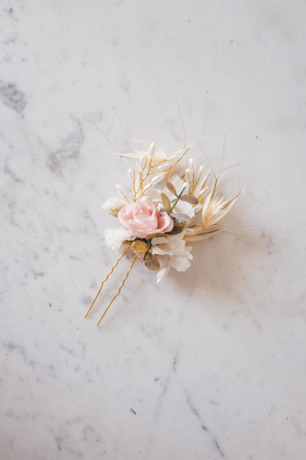 Theresia ist Teil unserer Bohemian Trachten Collection - Eine zarte Haarnadel, die wunderbar zum Dirndl passt und jeden Trachten-Look abrundet. Sie ist aber auch das ideale Statement-Piece für alle Bohemian Girls und der Hingucker am Oktoberfest. Sie wird in unserem Wiener Atelier aus hochwertigen Dried Flowers und Vintage Seidenblumen handgemacht und hält ein Leben lang.