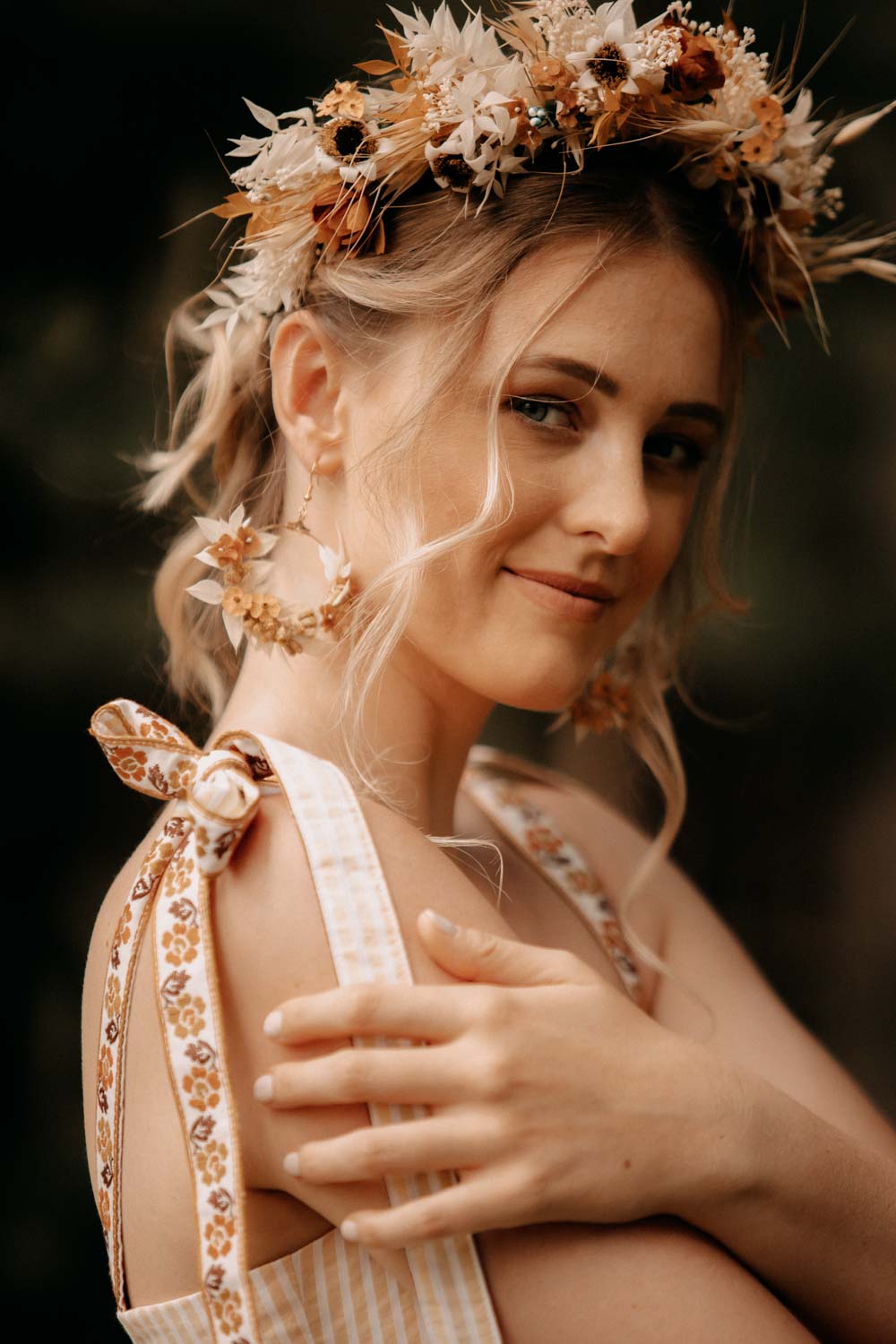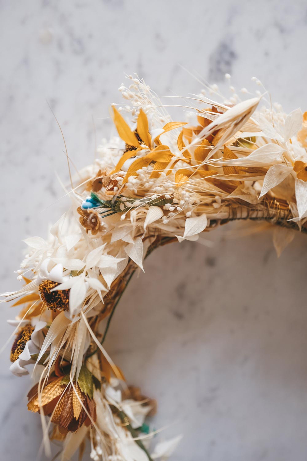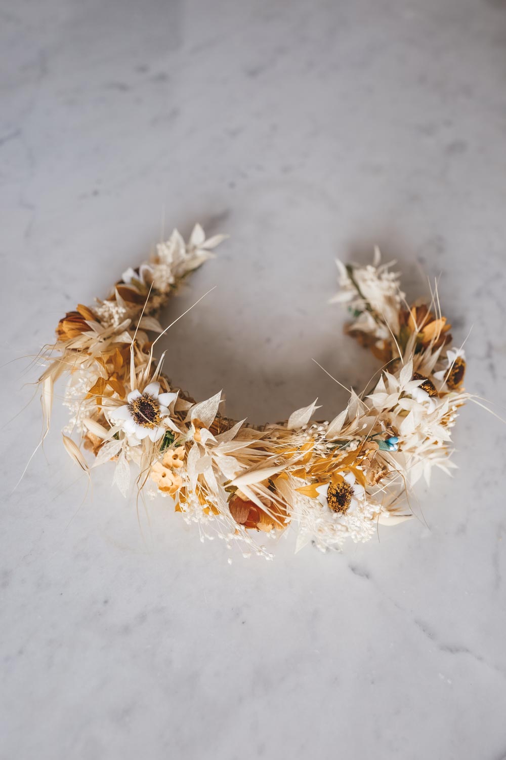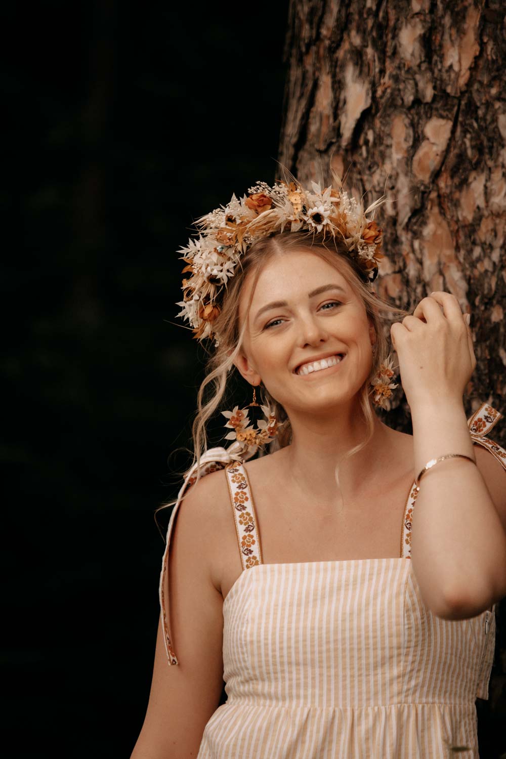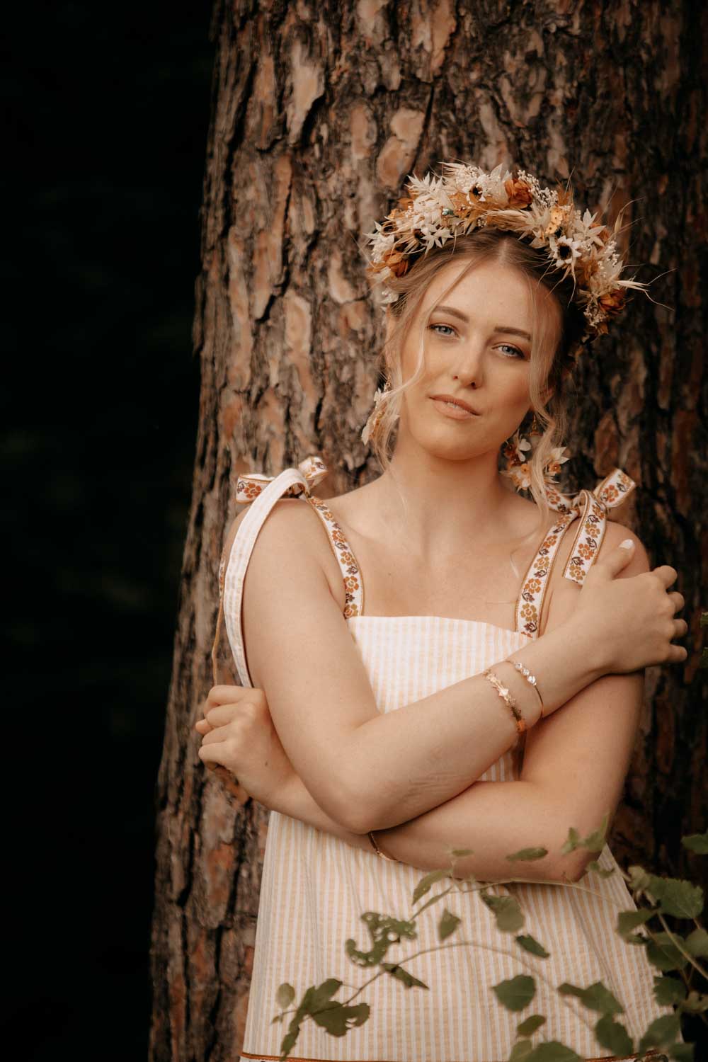 Victoria ist Teil unserer Bohemian Trachten Collection und die perfekte Flowercrown für ausgelassene Sommernächte. Sie passt wunderbar zum Dirndl und rundet jeden Trachten-Look ab. Sie ist aber auch das ideale Statement-Piece für alle Bohemian Girls und der Hingucker am Oktoberfest. Sie wird in unserem Wiener Atelier aus hochwertigen Dried Flowers und Vintage Seidenblumen handgemacht und hält ein Leben lang.