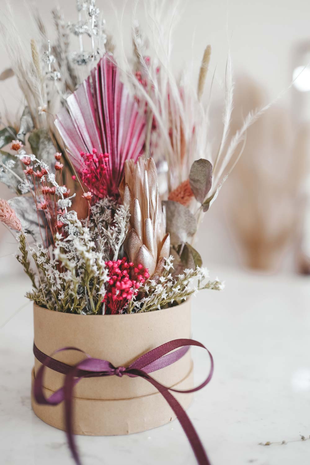 Unsere Dried Flower Boxen aus der »Flowers To Go Collection« sind das perfekte Mitbringsel zum Geburtstag, Geschenk zum Valentinstag oder Home-Deko für dein eigenes Zuhause. Unsere Blumenboxen werden von uns aus hochwertig getrockneten und konservierten Dried Flowers gefertigt und halten ein Leben lang. Sie sind die pflegeleichteste Dekoration für Zuhause und ein traumhaftes Geschenk wenn es mal einen Tick anders sein soll als ein klassischer Blumenstrauss.