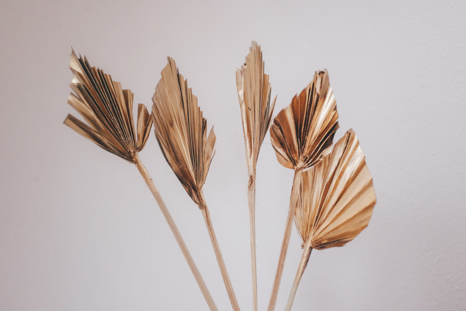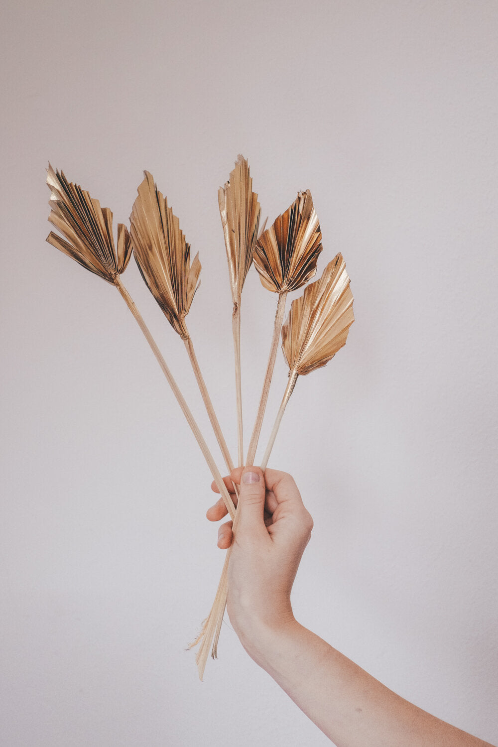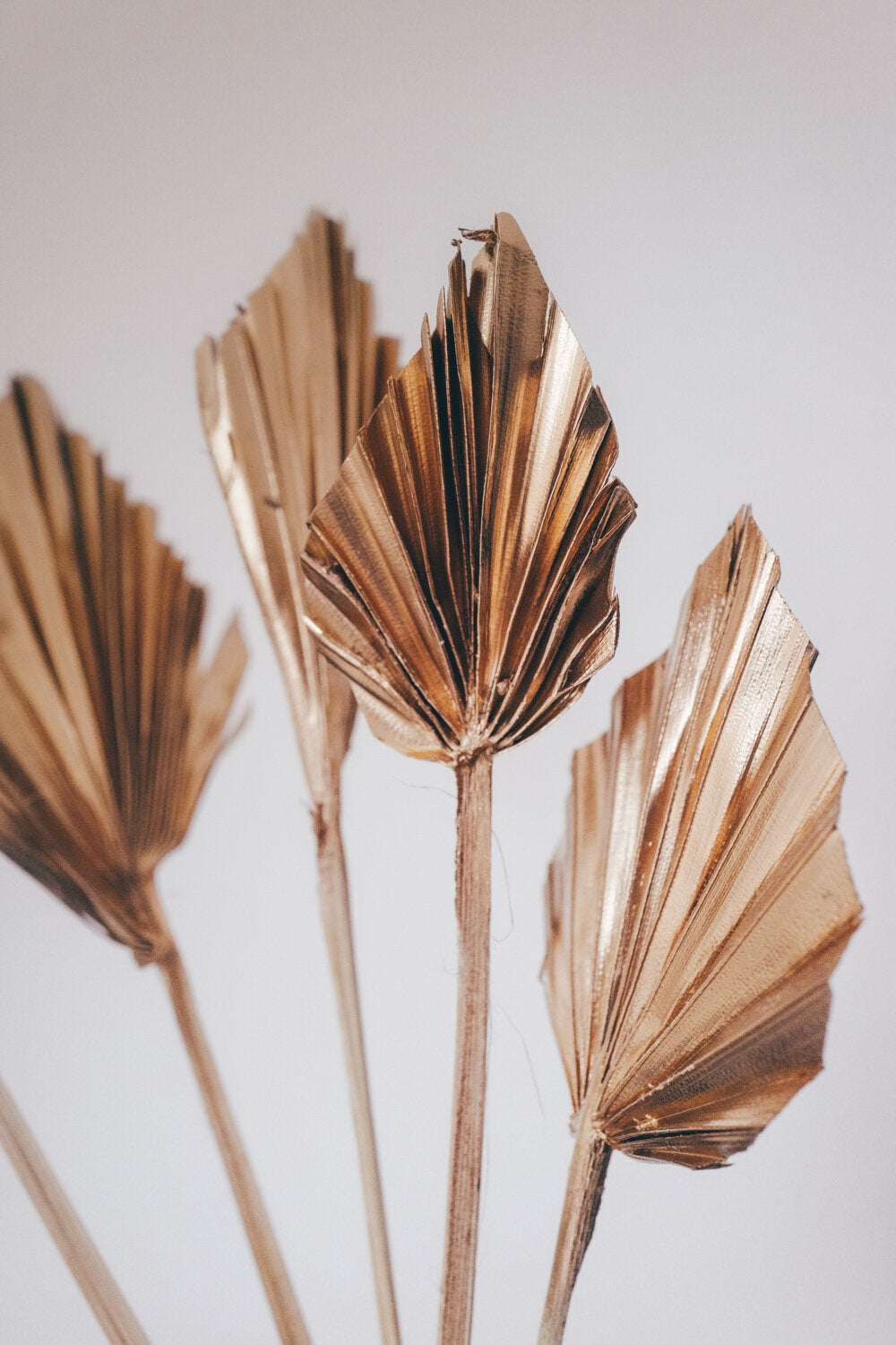 5 Stück goldene getrocknete Palm Spears für die Dekoration in der Vase.