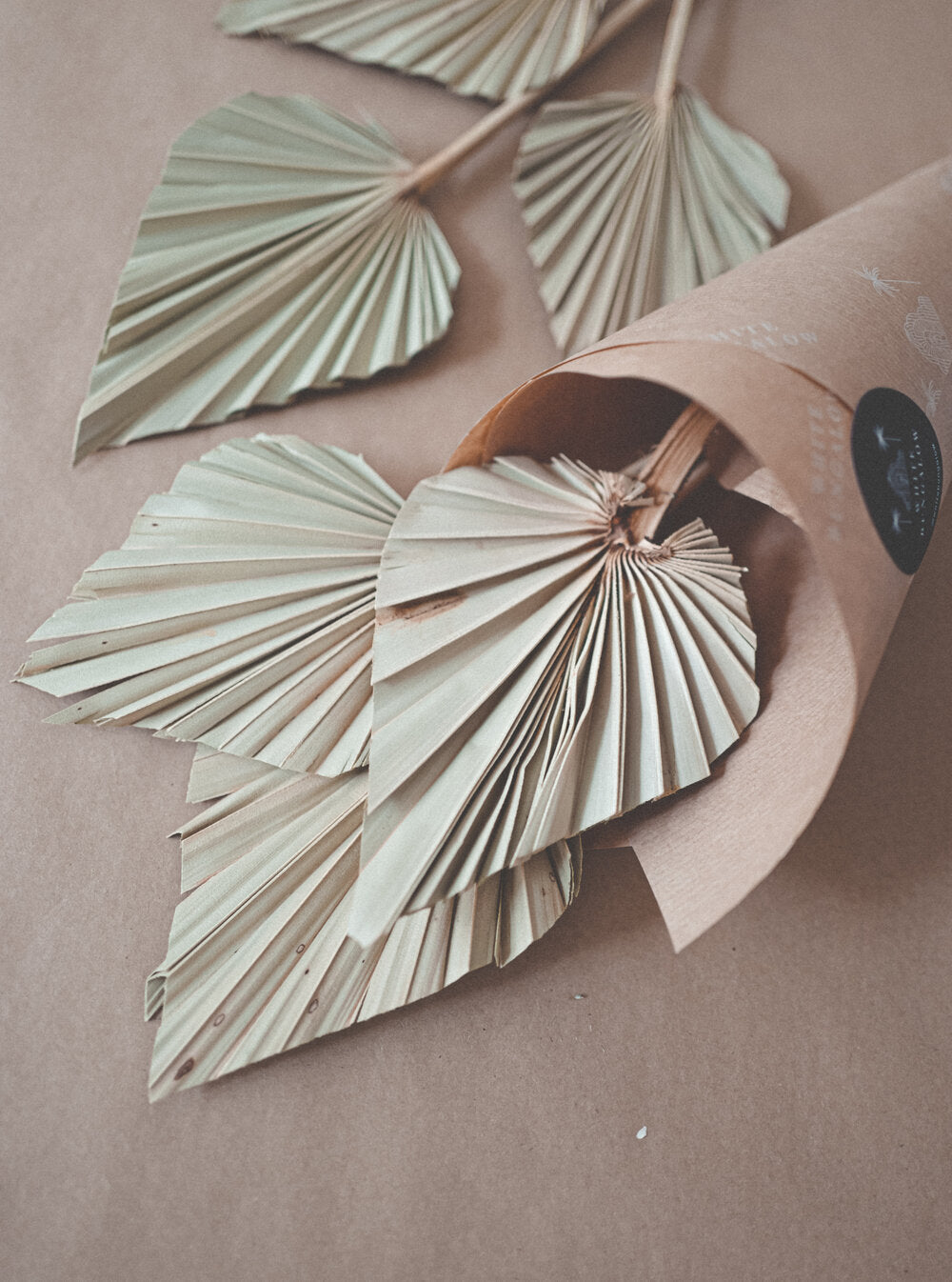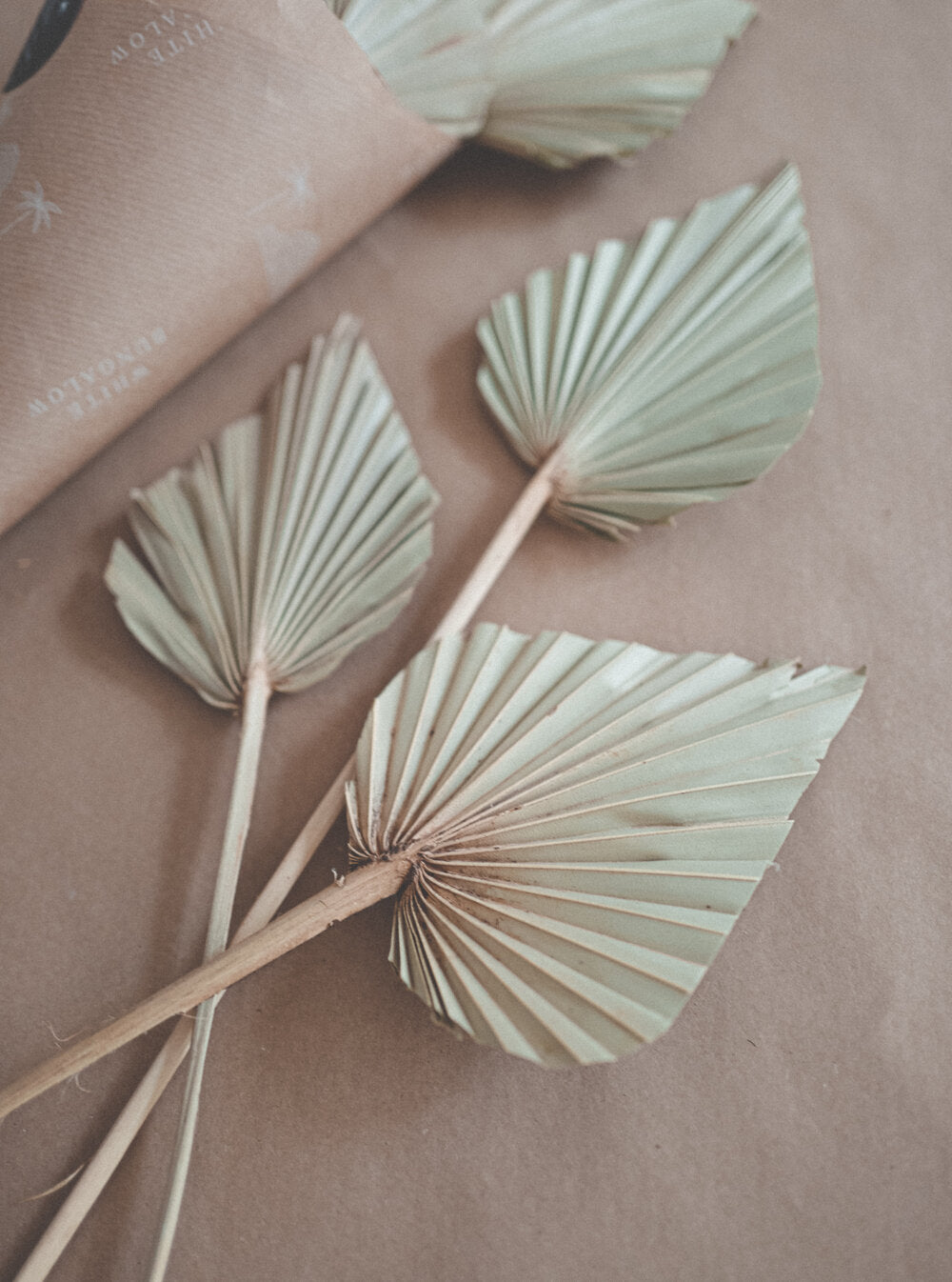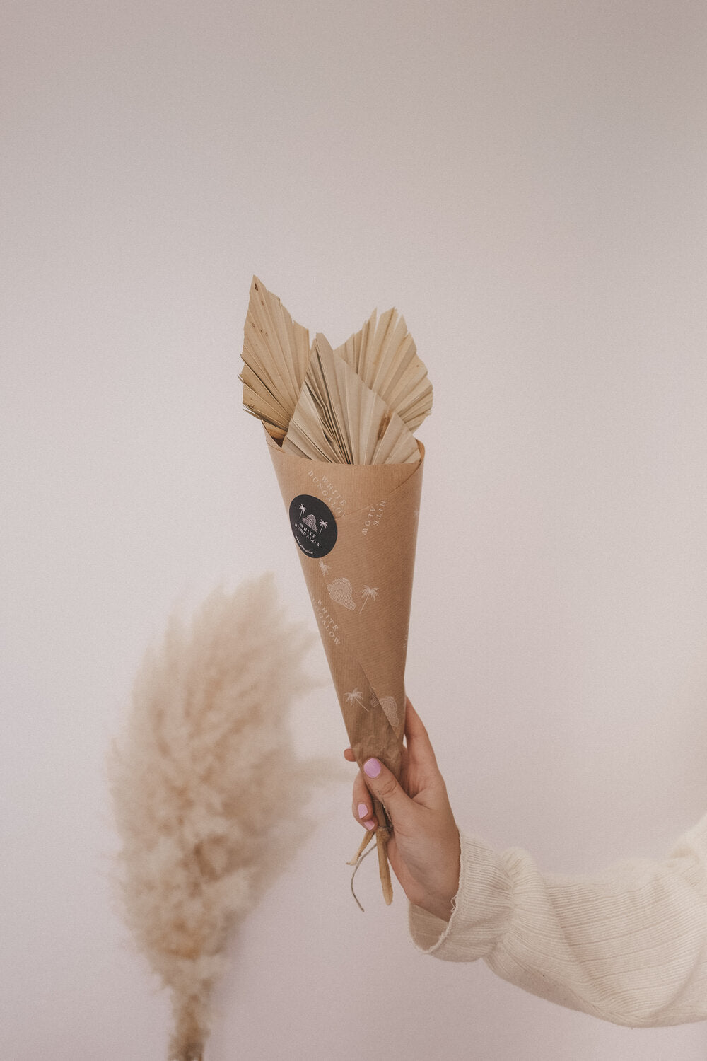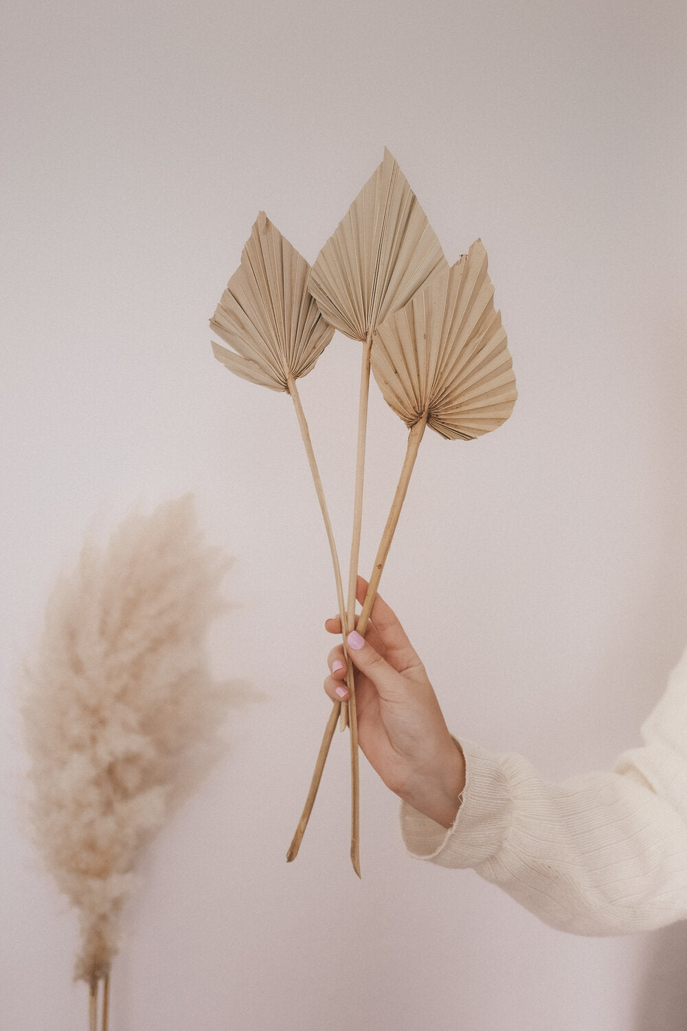 Bund getrocknete Palm Spears in zartem Grün-Braun für die perfekte Dekoration in der Vase. 3 gefärbte Stiele. Verwandle dein Zuhause in ein Wunderland mit edlen Dried Flowers